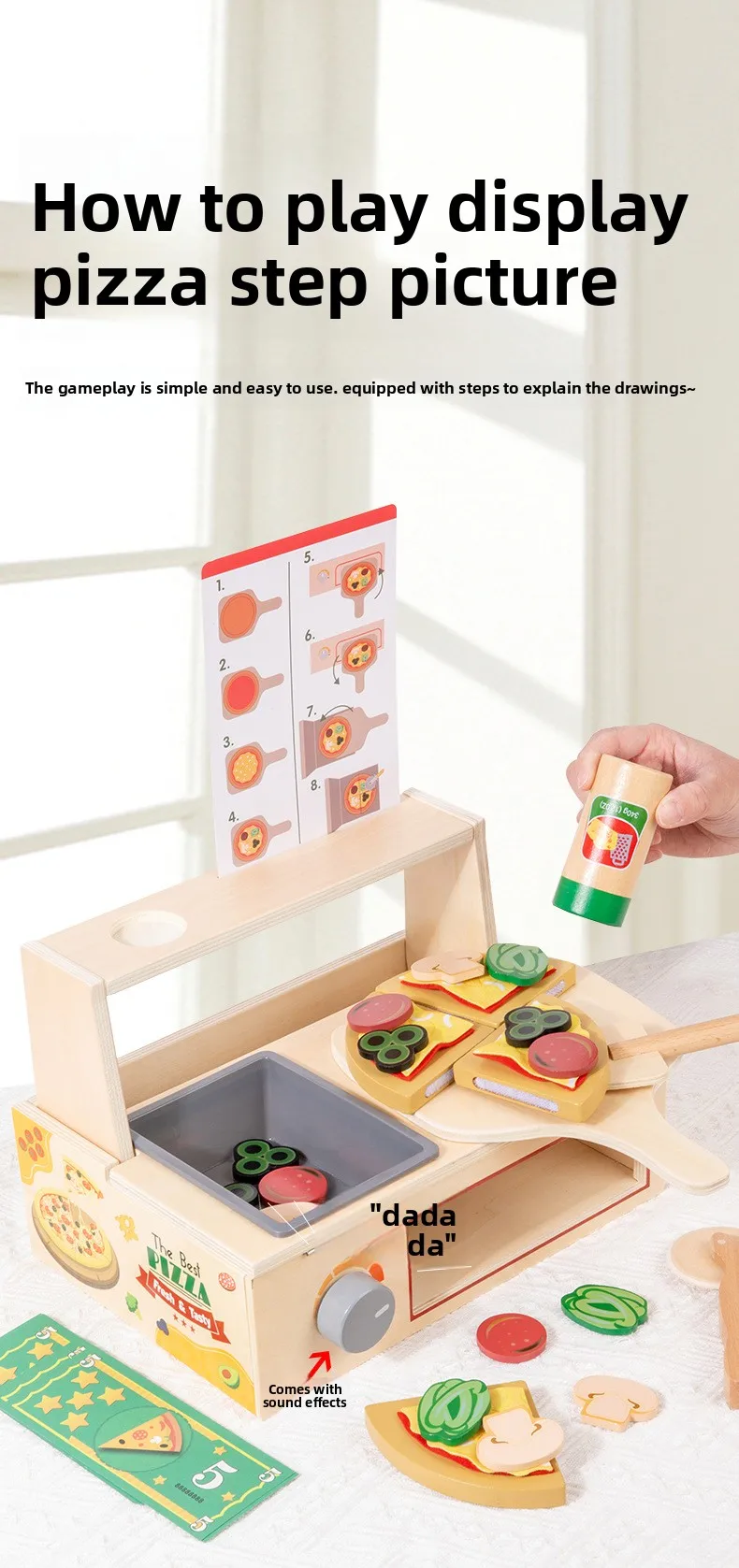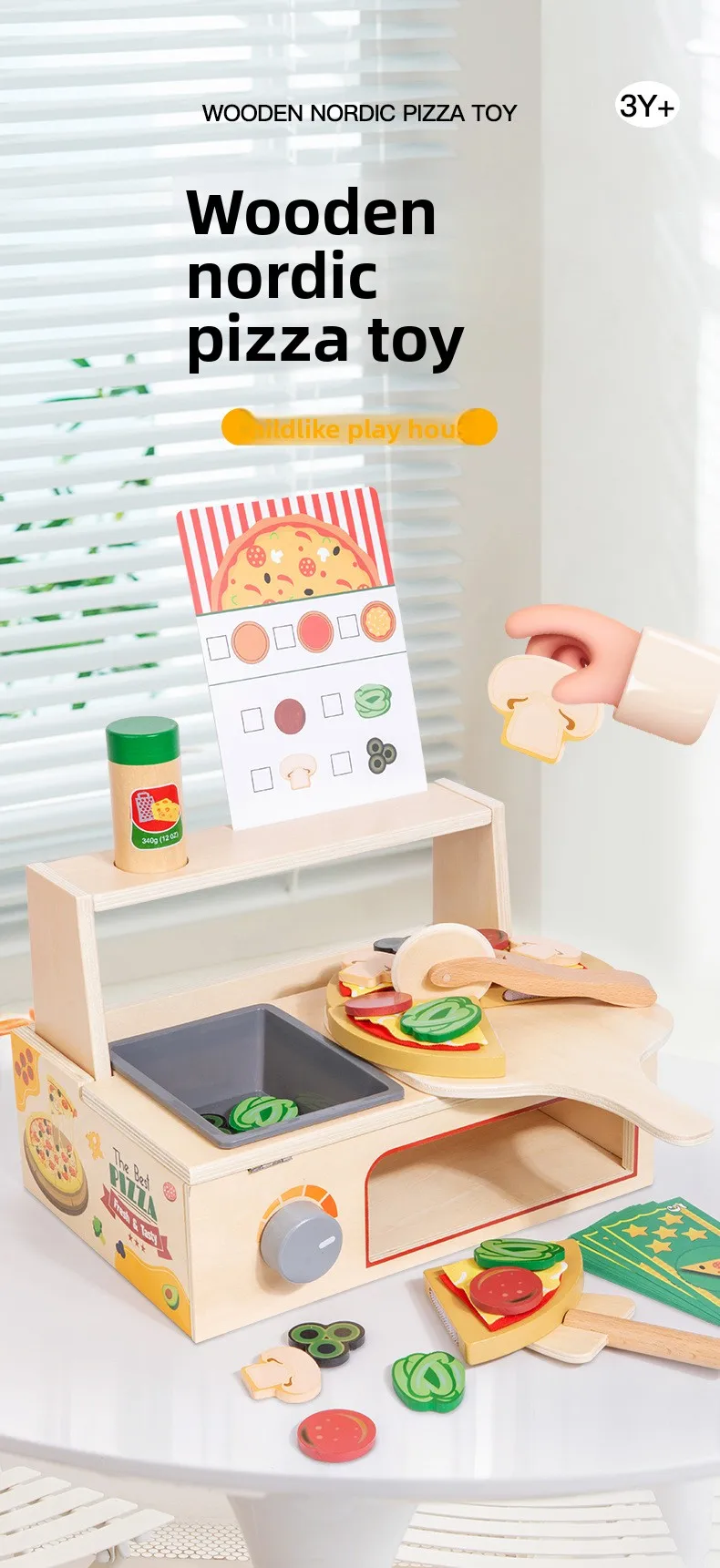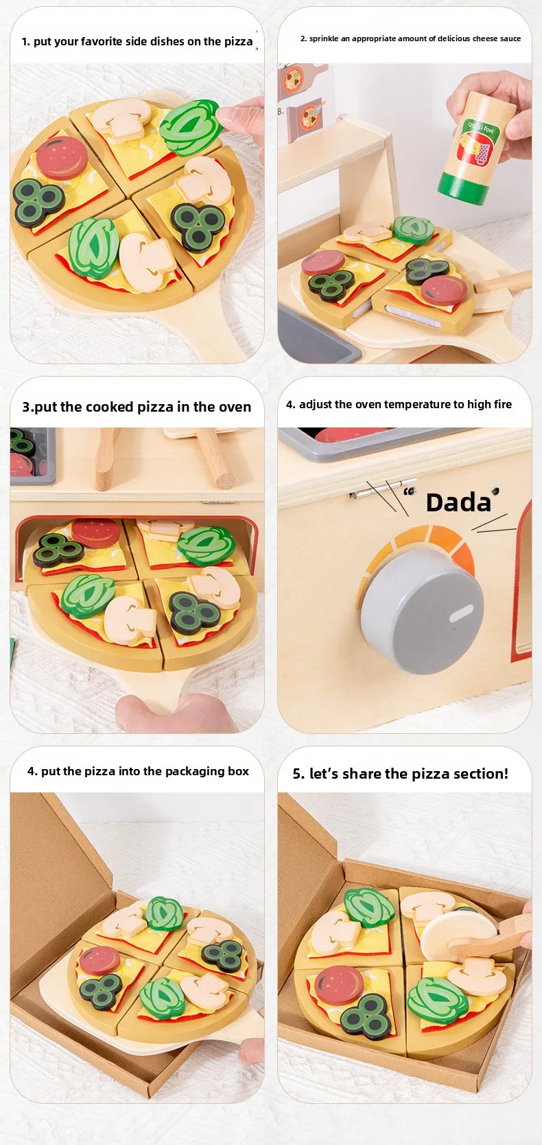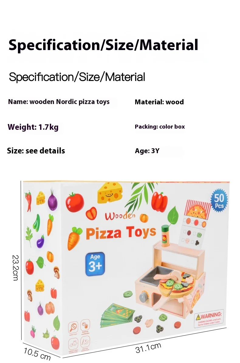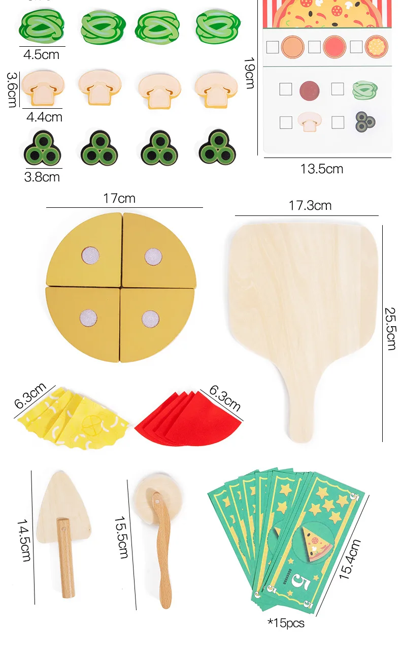Children’s Interactive Wooden Play Kitchen Toy for Early Education Pizza Cutting & Cooking Simulation Toy