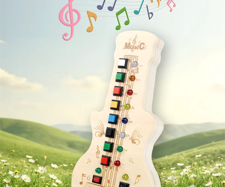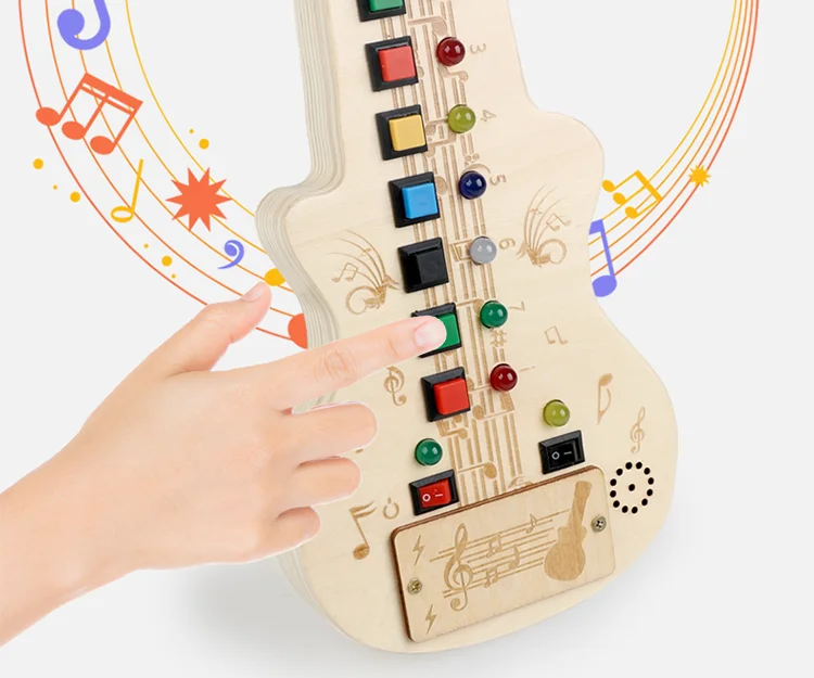 Children’s LED Light Educational Wooden Toys Early Learning Intelligence Music Guitar Creative Wooden Toys