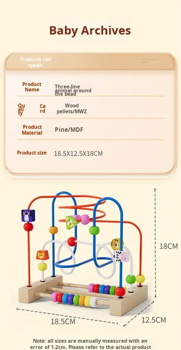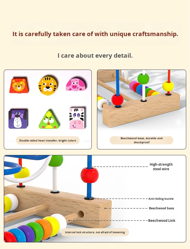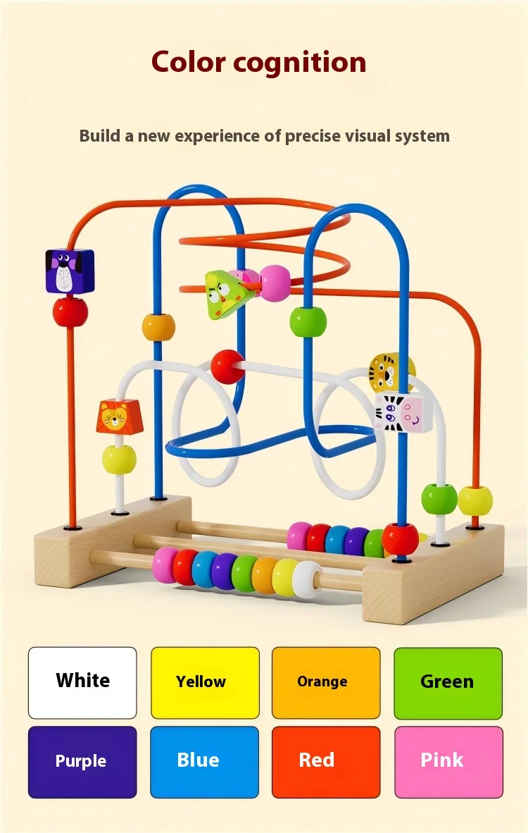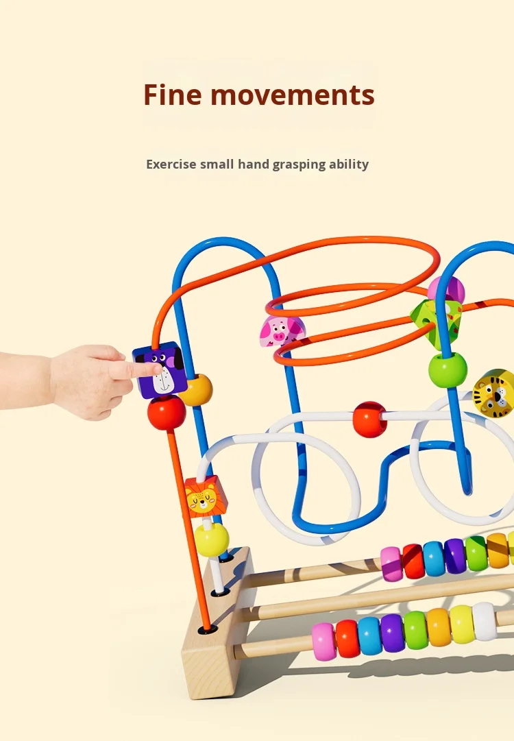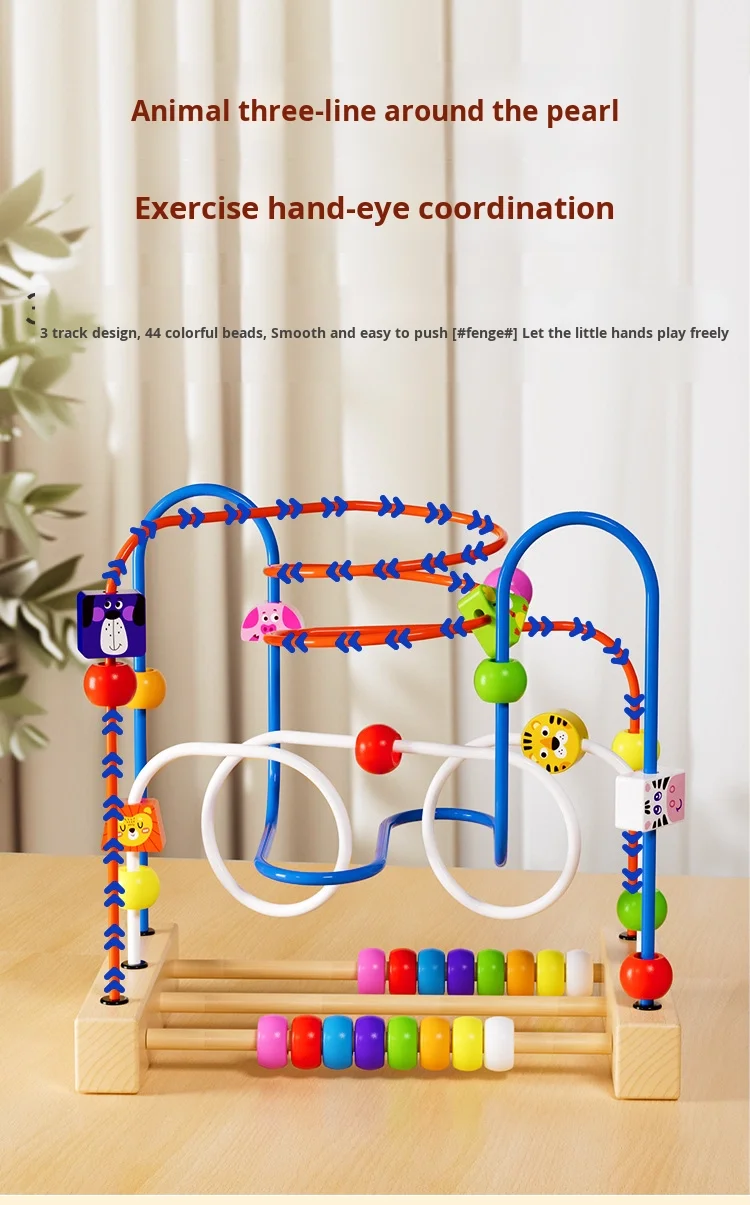 Children’s Montessori Early Education Building Blocks Colorful Animal Beads Educational Wooden Toys for Babies
