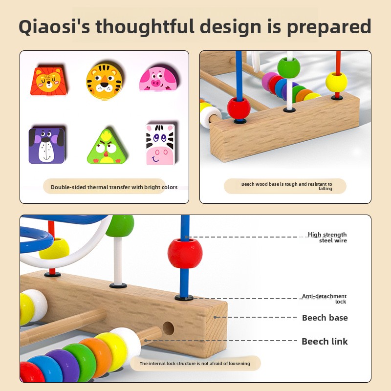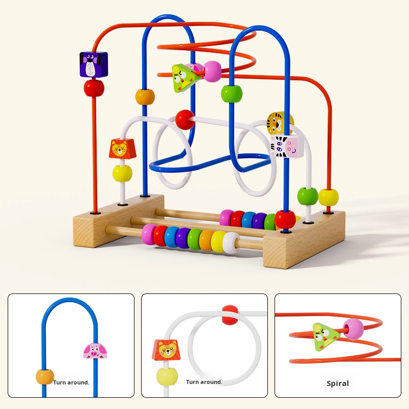 Children’s Montessori Early Education Building Blocks Colorful Animal Beads Educational Wooden Toys for Babies