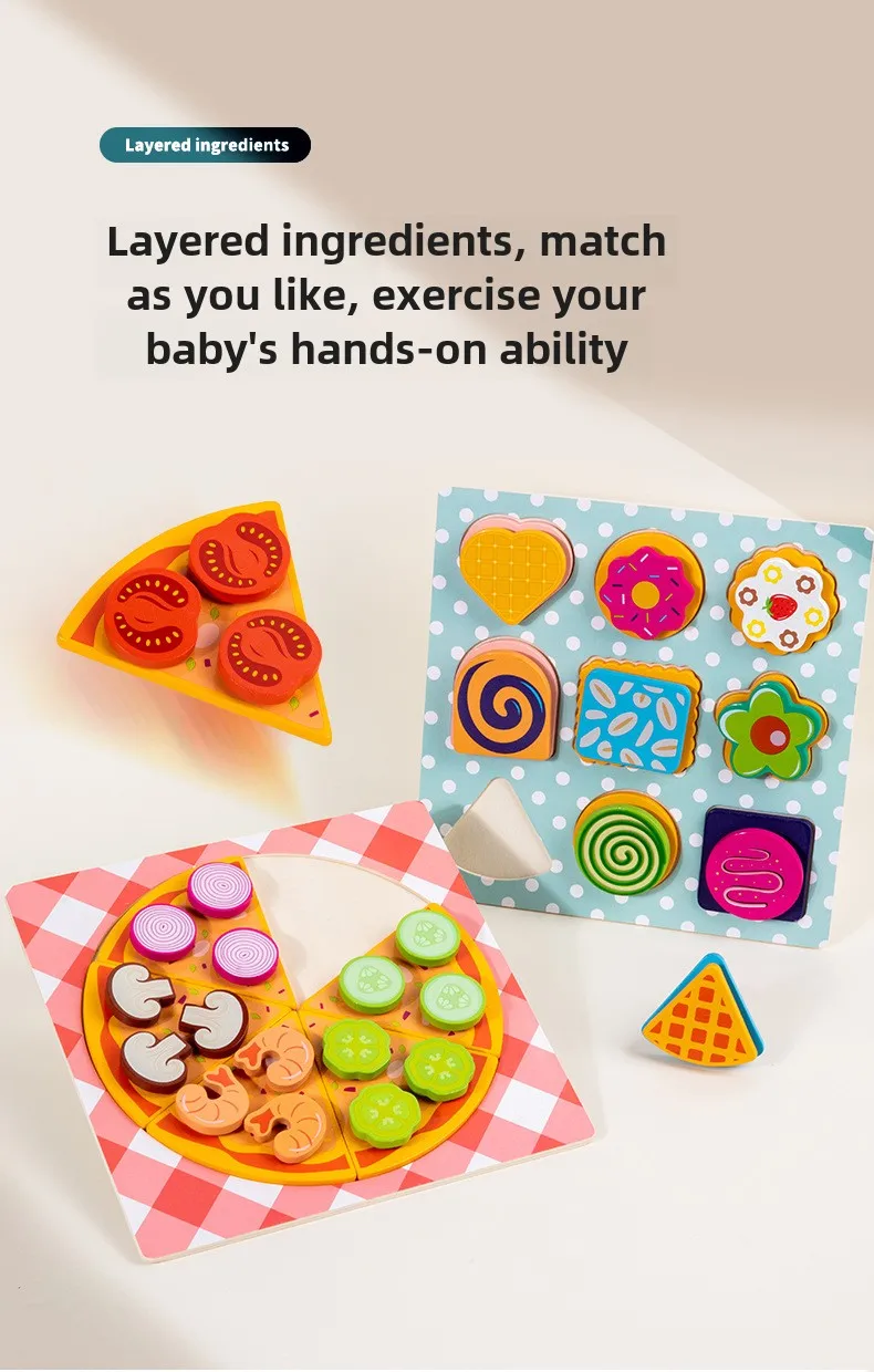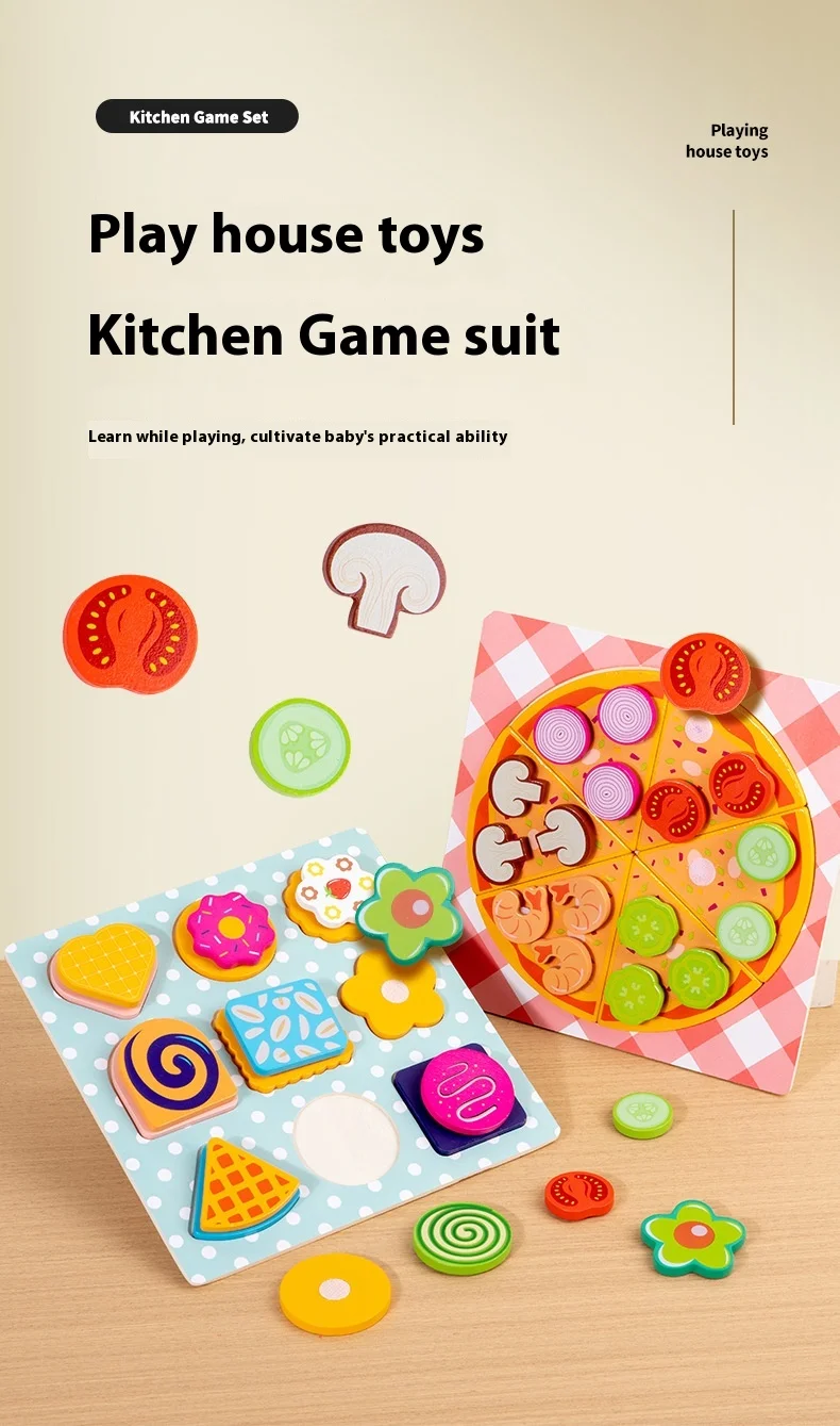 Children’s Pizza and Cookies Set Shape Cognitive Kitchen Games Elementary Early Education Simulation Home Wooden Toys