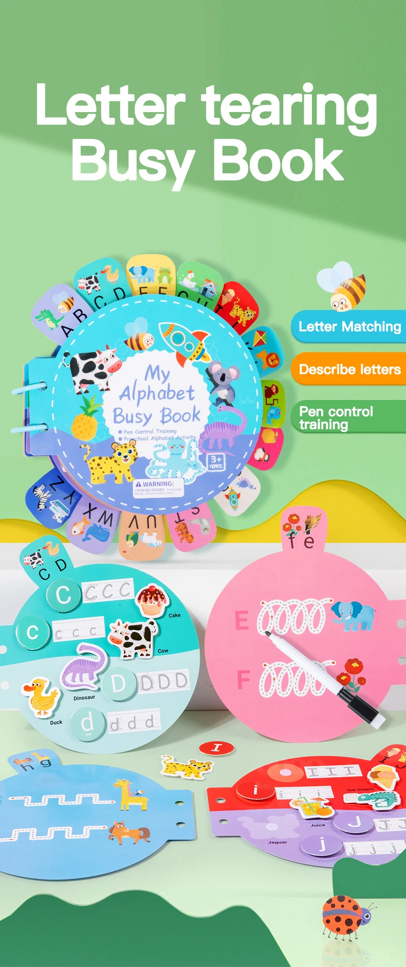 Children’s Quiet Book Letter Cognition Early Education Puzzle Letters Quiet 26 English Letters Tracing Words Cognitive Card