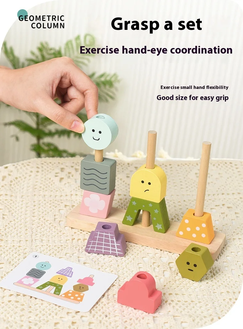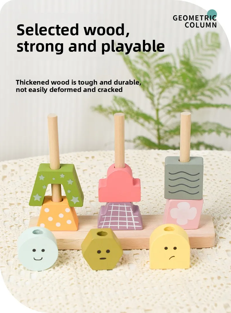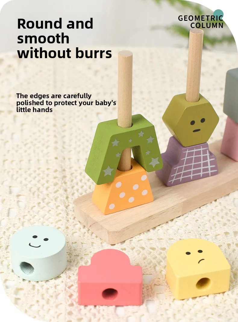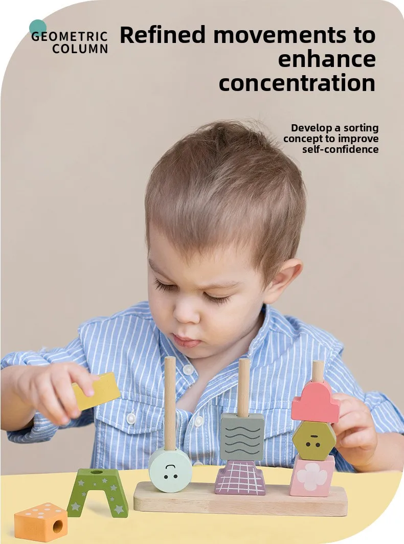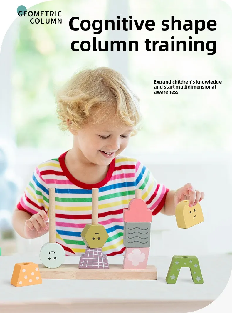 Children’s Toys Geometric Shapes Color Perception Enlightenment Puzzle Block Wooden Puzzle Sets of Columns Matching Game Toys