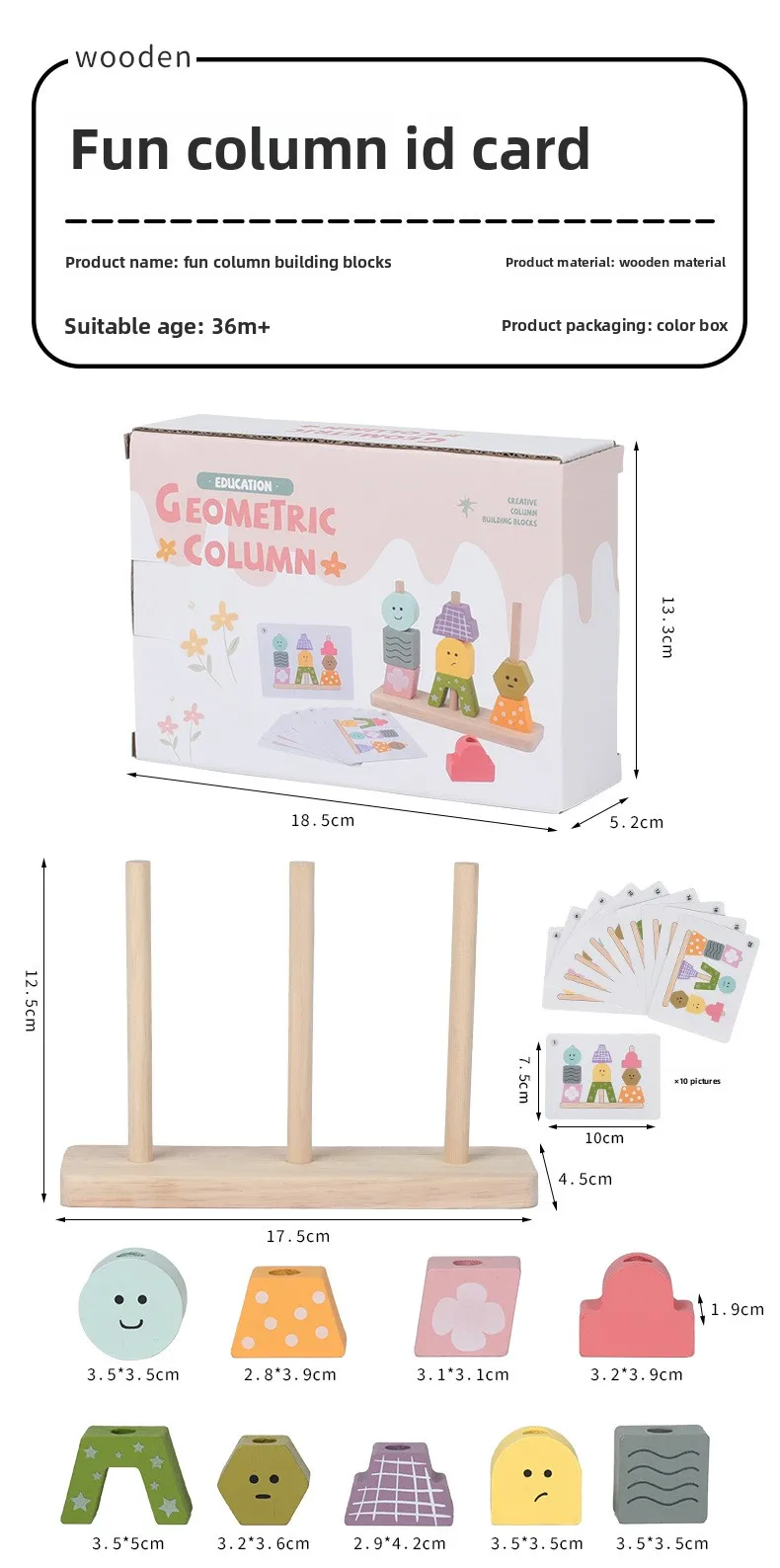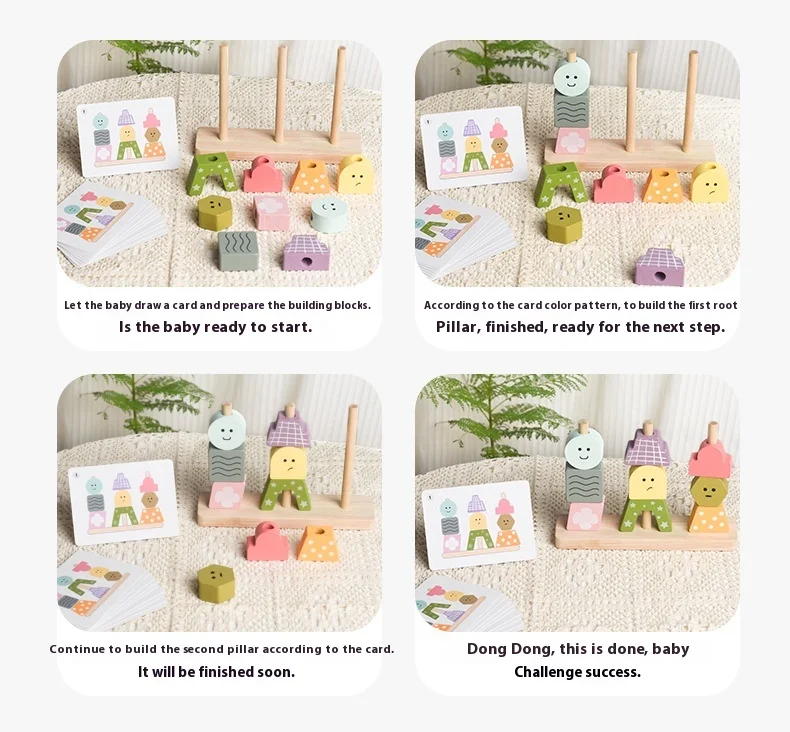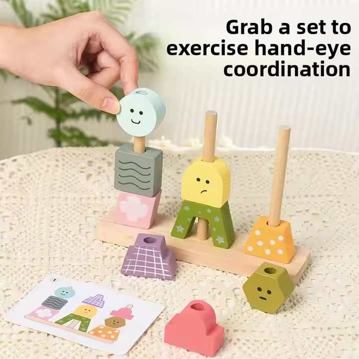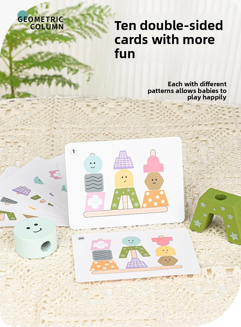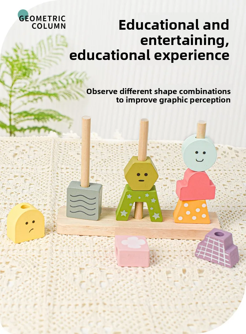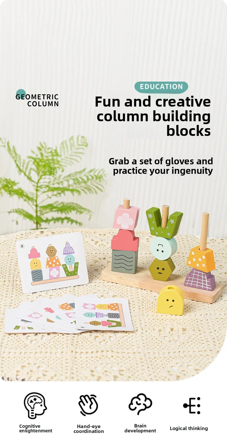 Children’s Toys Geometric Shapes Color Perception Enlightenment Puzzle Block Wooden Puzzle Sets of Columns Matching Game Toys