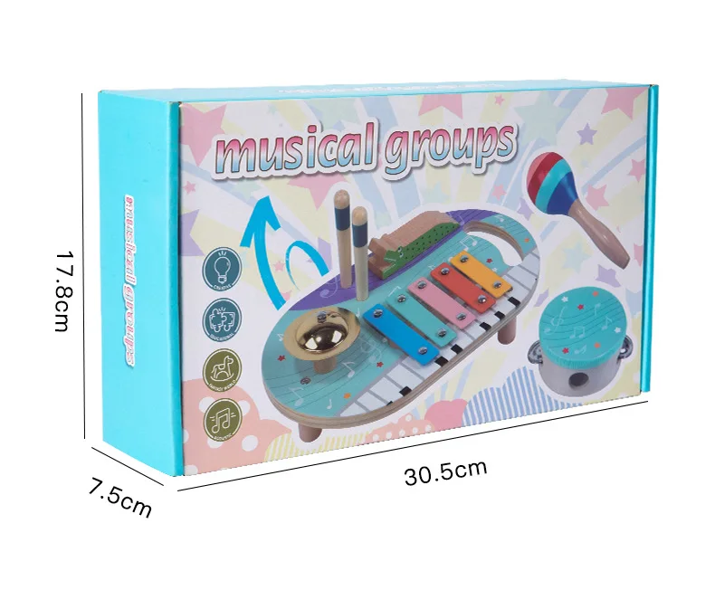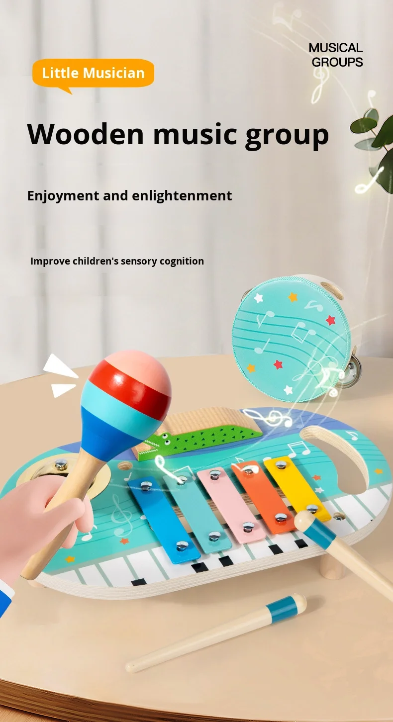 Children’s Wood Hand Drum Percussion Instrument for Orff Kindergarten Instrument Combination Music Toy