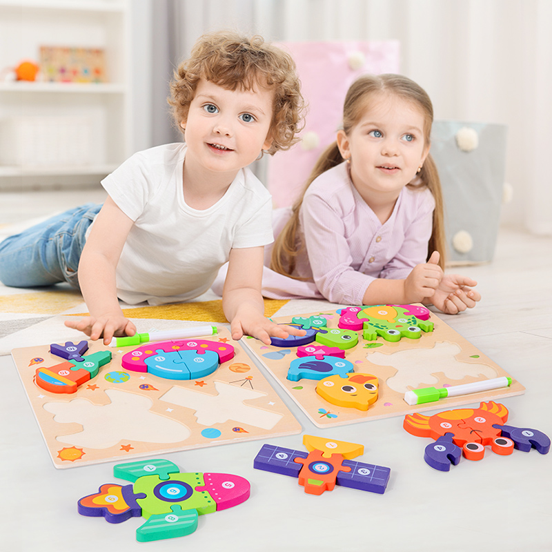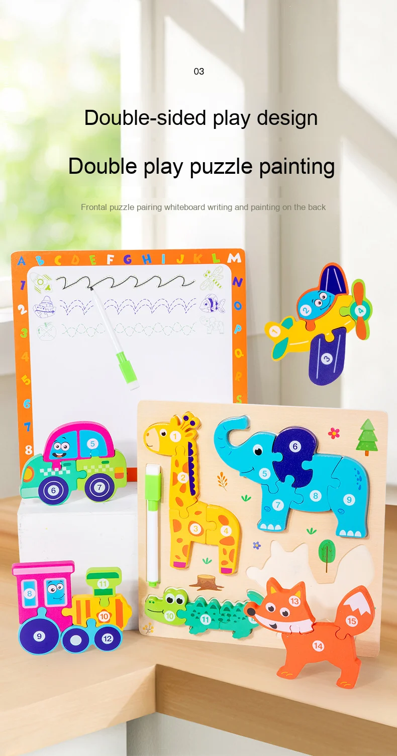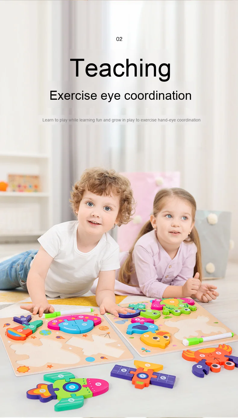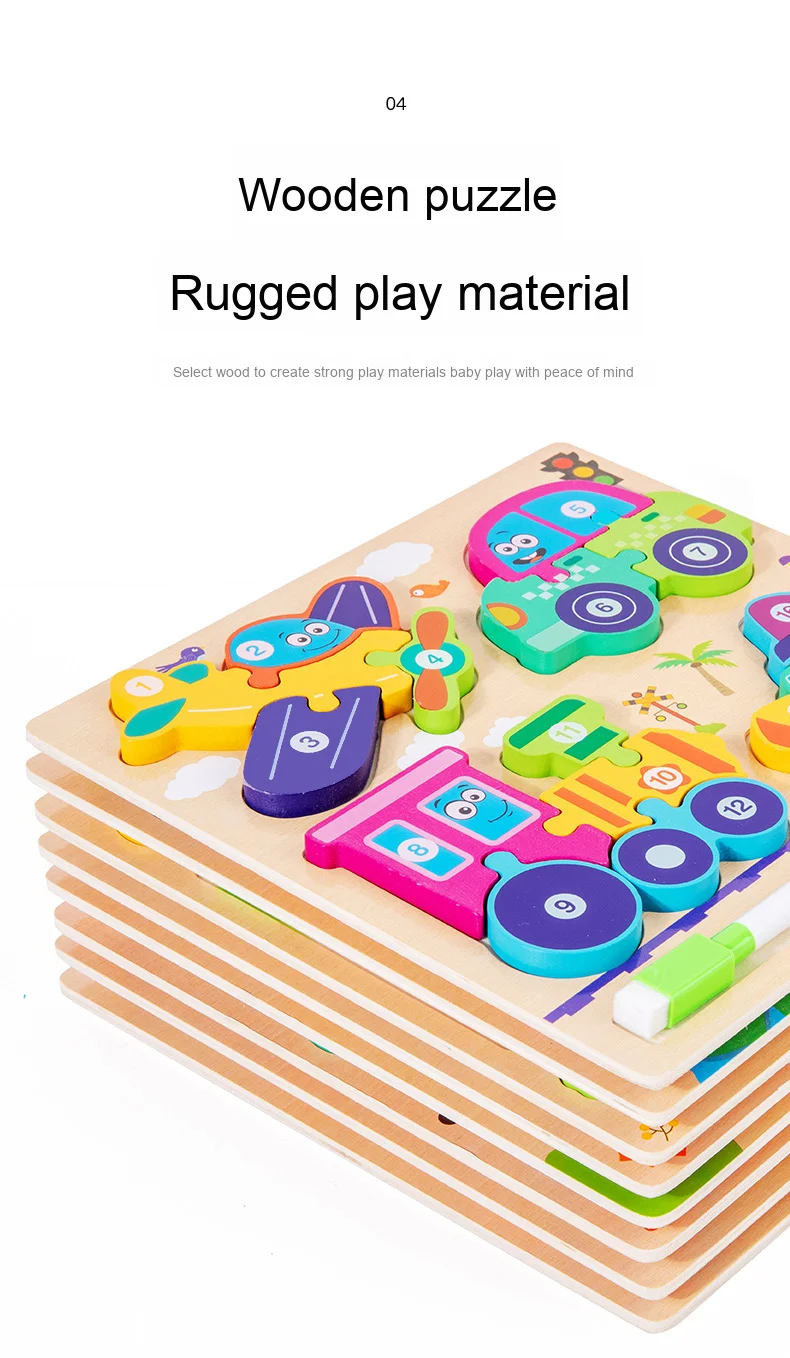 Children’s Wooden Educational Early 4-in-1 Stereo Matching Drawing Board Cognitive Cartoon Toy Puzzle for Baby Learning