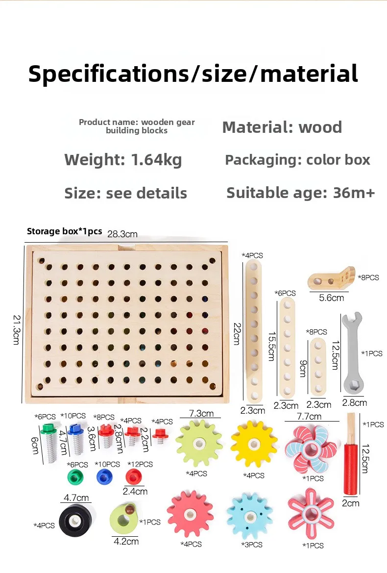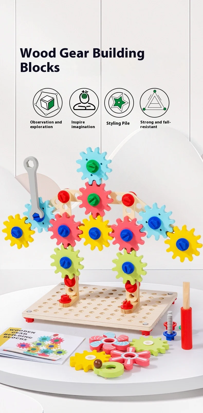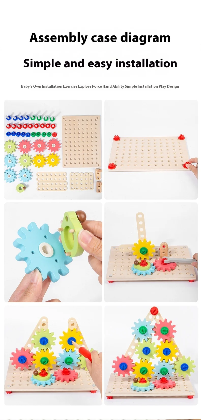 Children’s Wooden Nut Gear Mushroom Nail Assembly Educational Toys for Early Kindergarten Recognition Wooden Toy