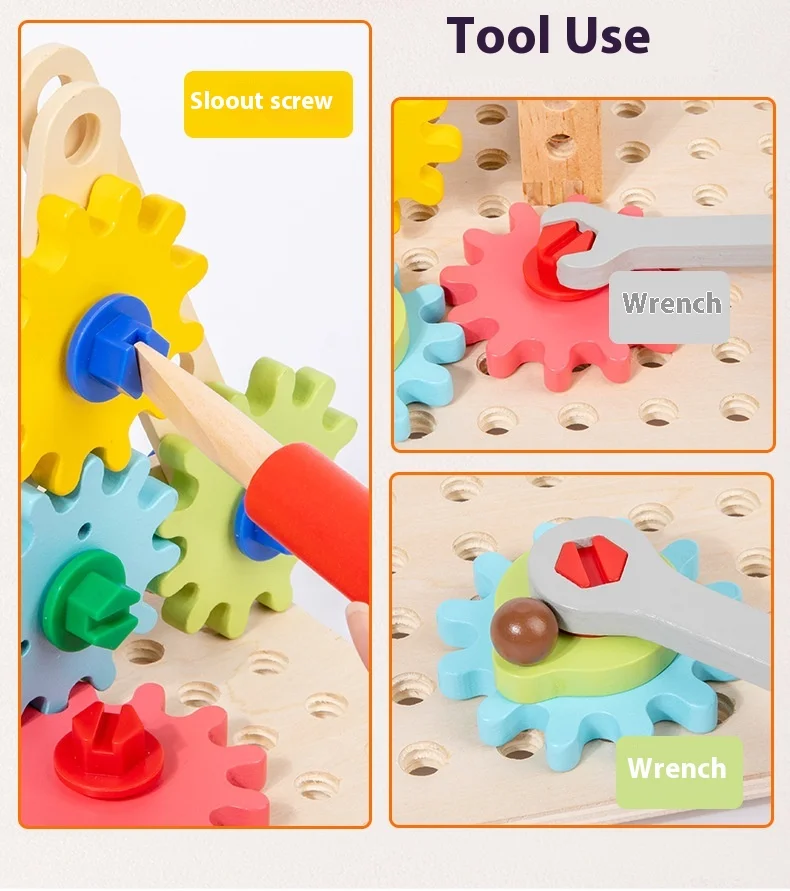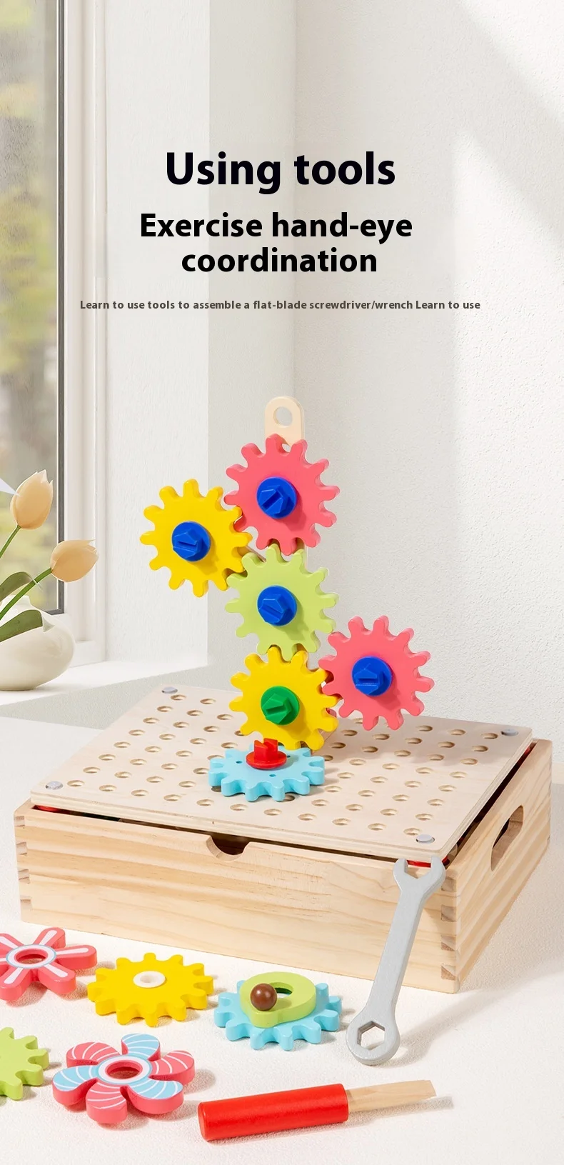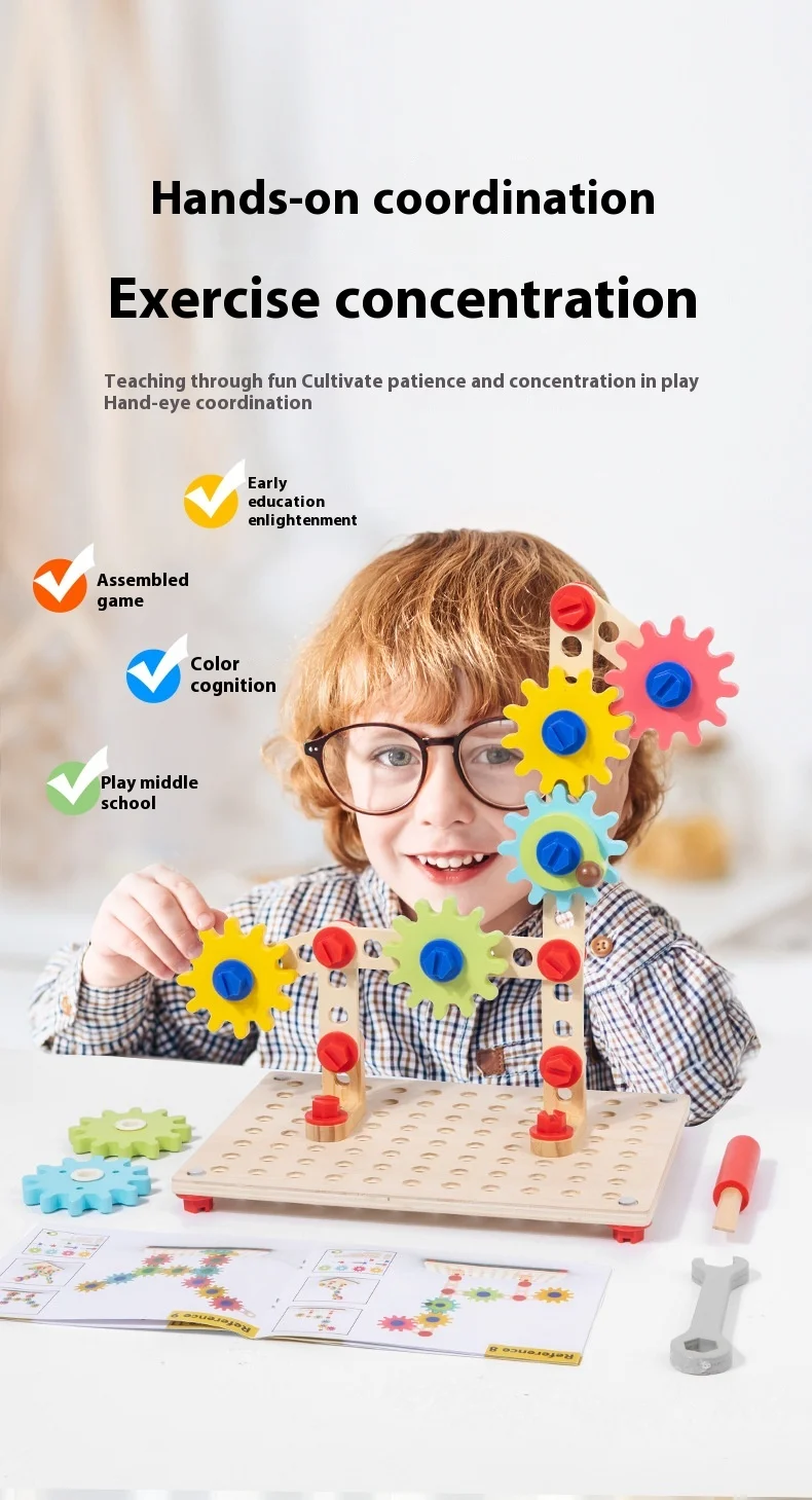 Children’s Wooden Nut Gear Mushroom Nail Assembly Educational Toys for Early Kindergarten Recognition Wooden Toy