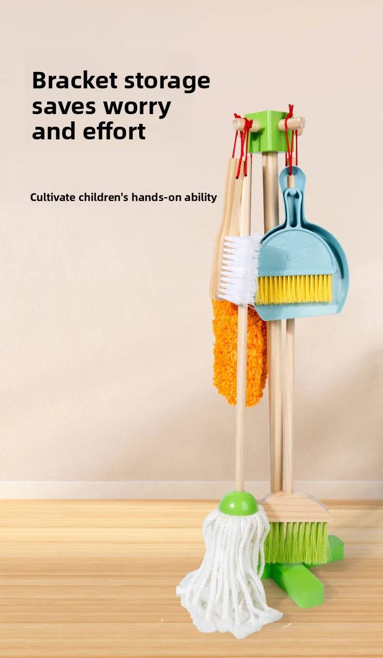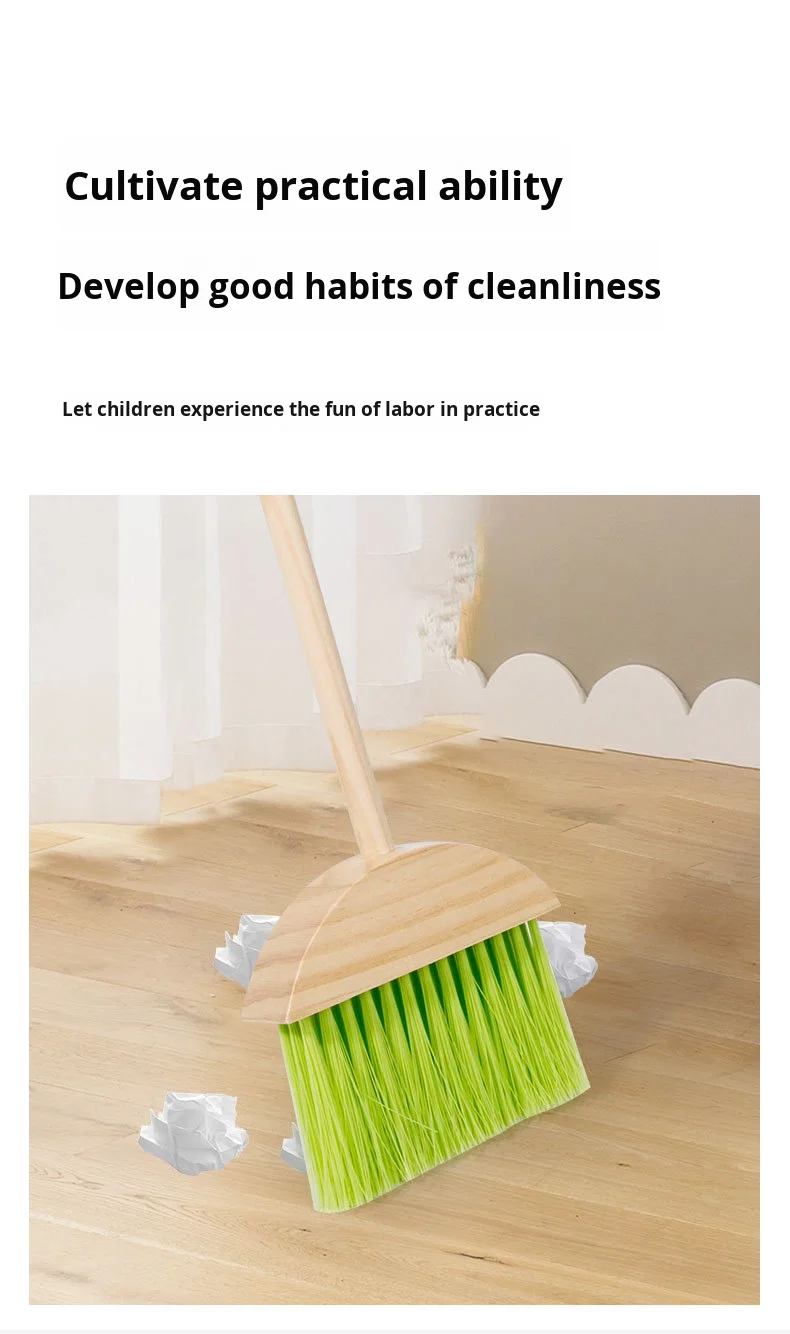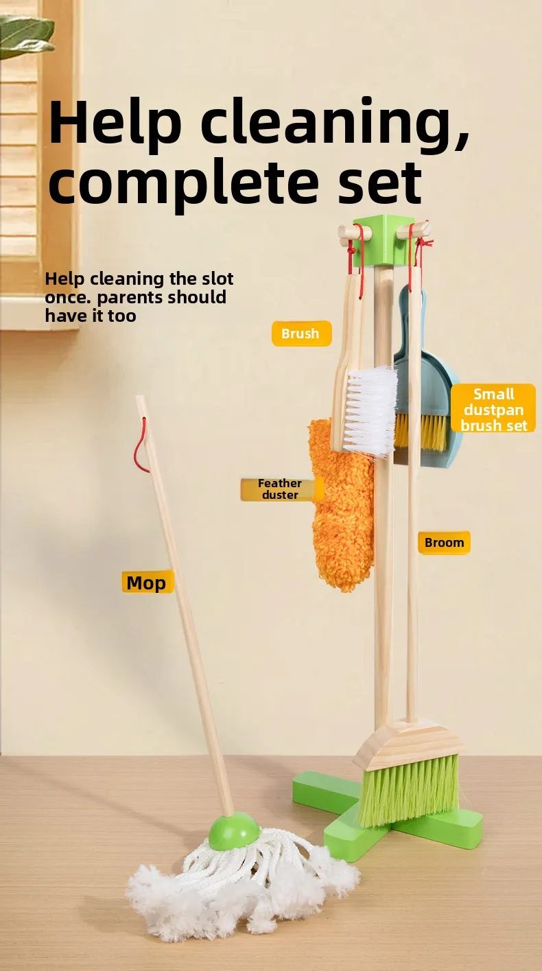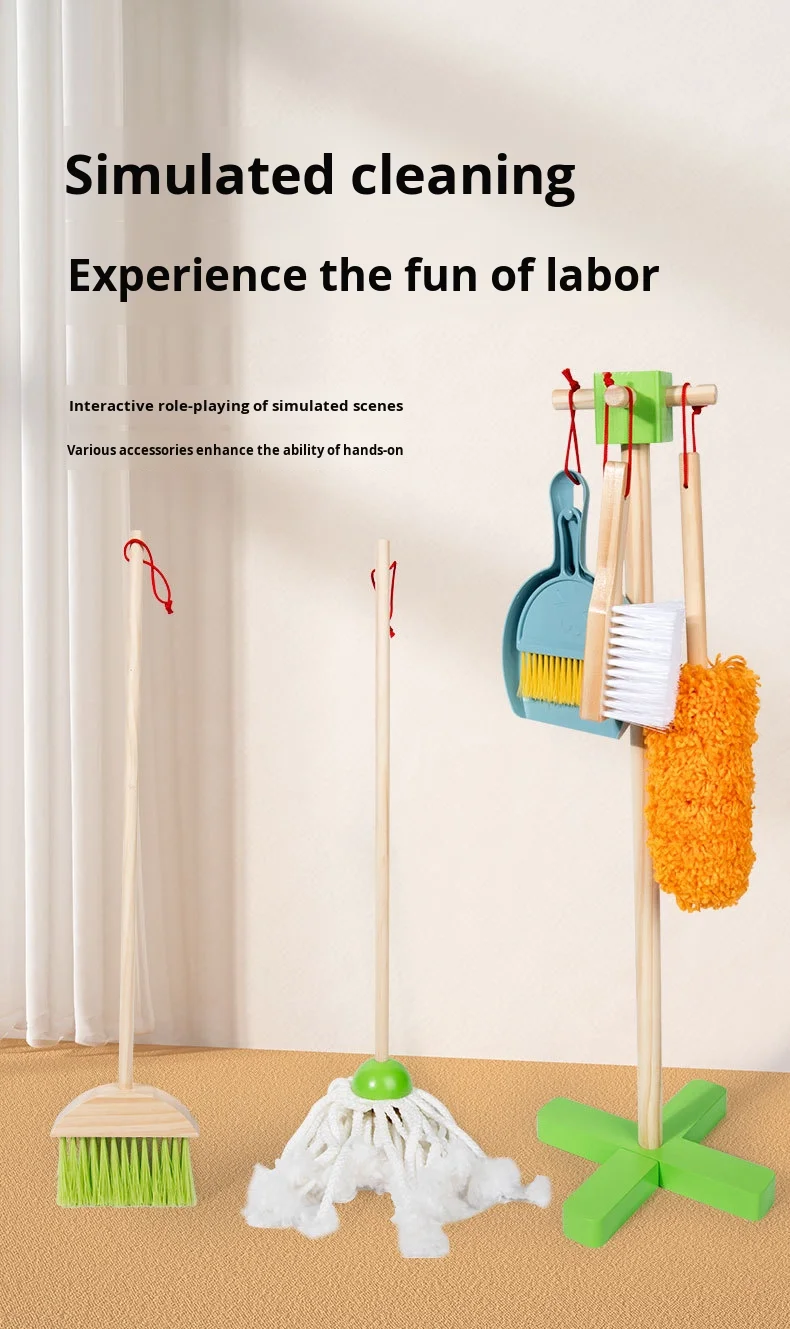 Children’s Wooden Sweeping Toy Broom Set Boys and Girls Pretend Play Cleaning Housekeeping Tools