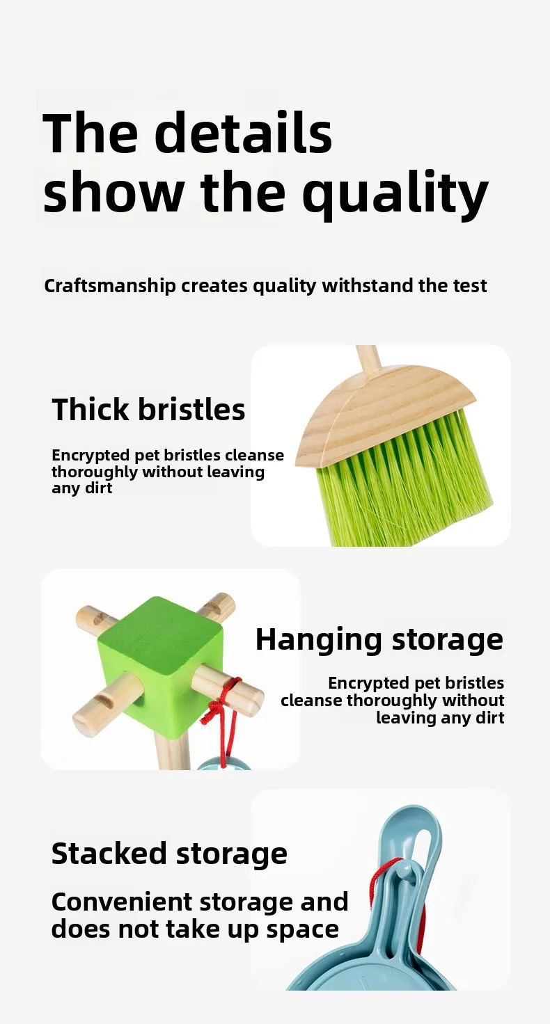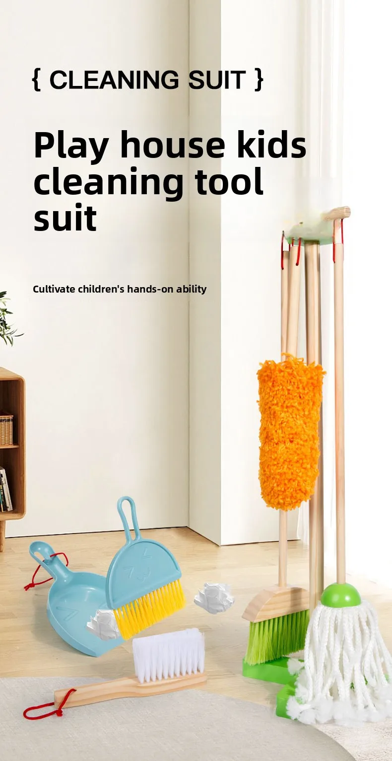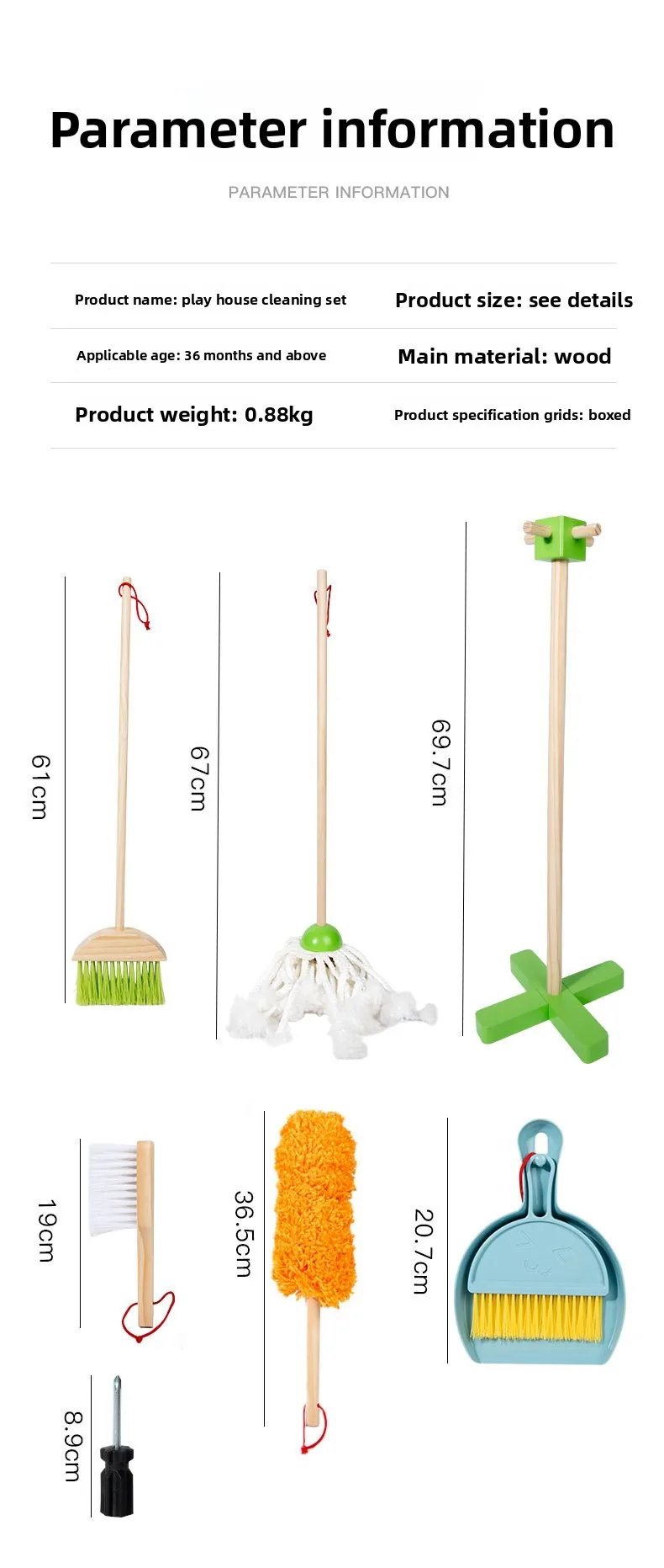 Children’s Wooden Sweeping Toy Broom Set Boys and Girls Pretend Play Cleaning Housekeeping Tools