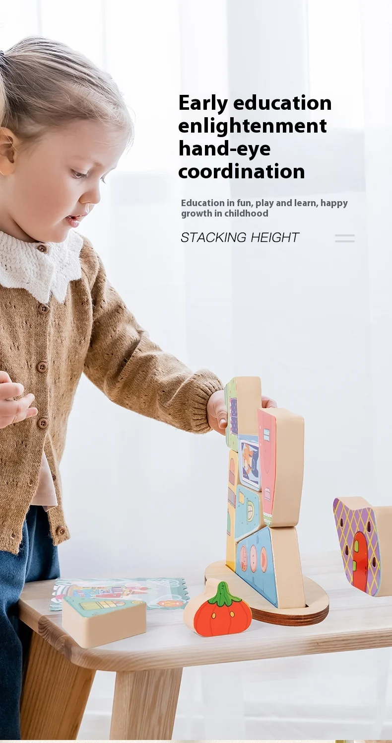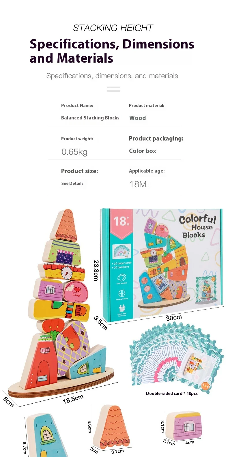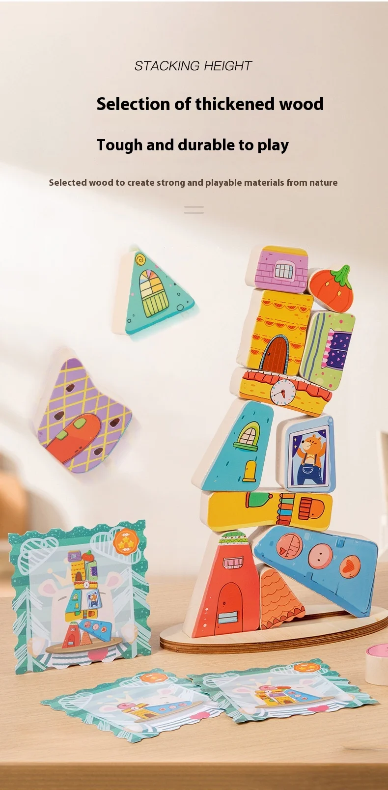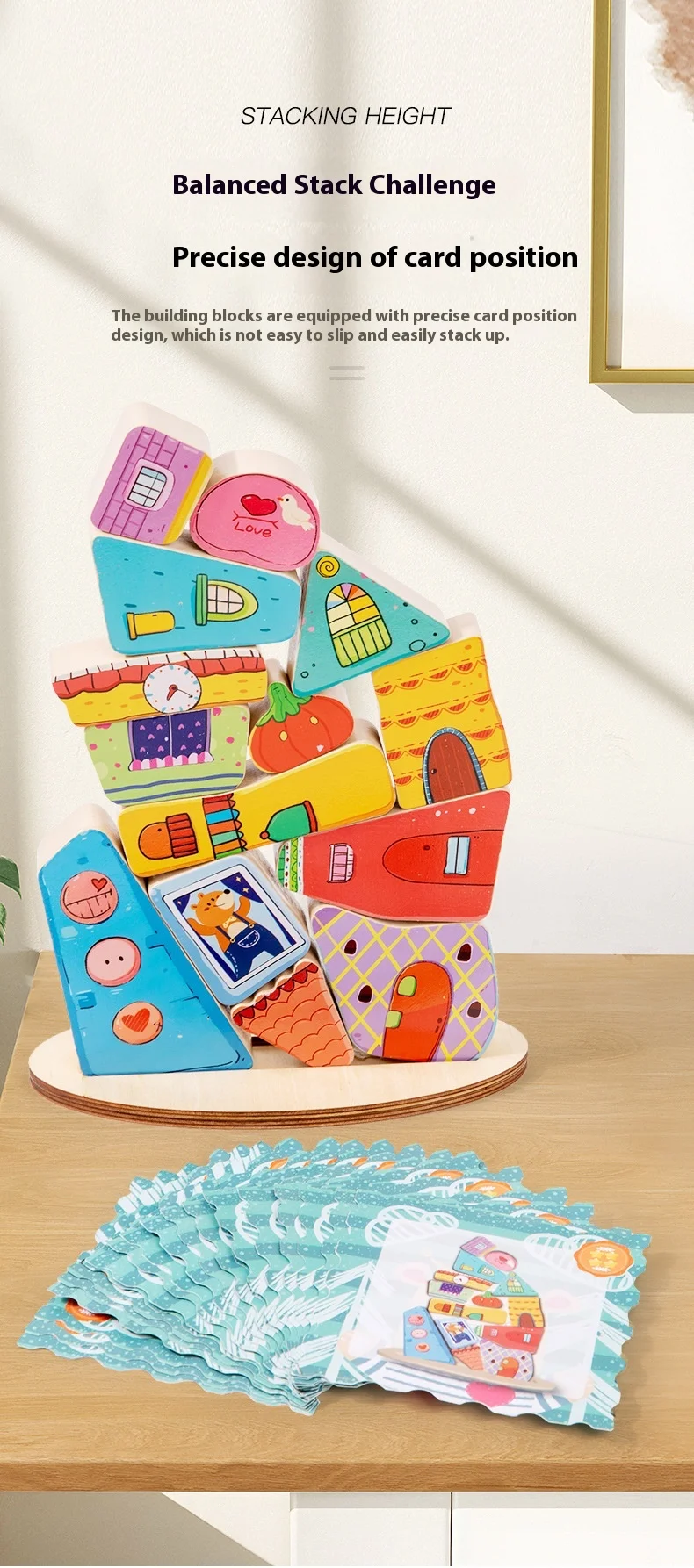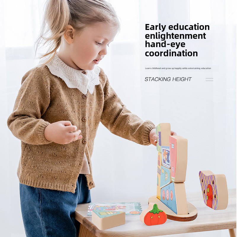 Colorful Wooden Stacking Blocks Kids Early Educational Interactive Exercise Family Eye-Hand Coordination Building Stacking Toys