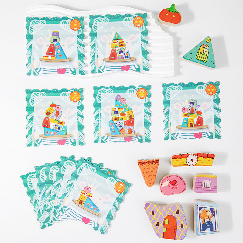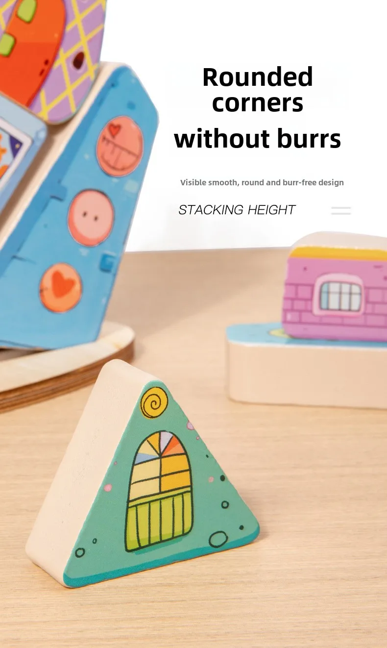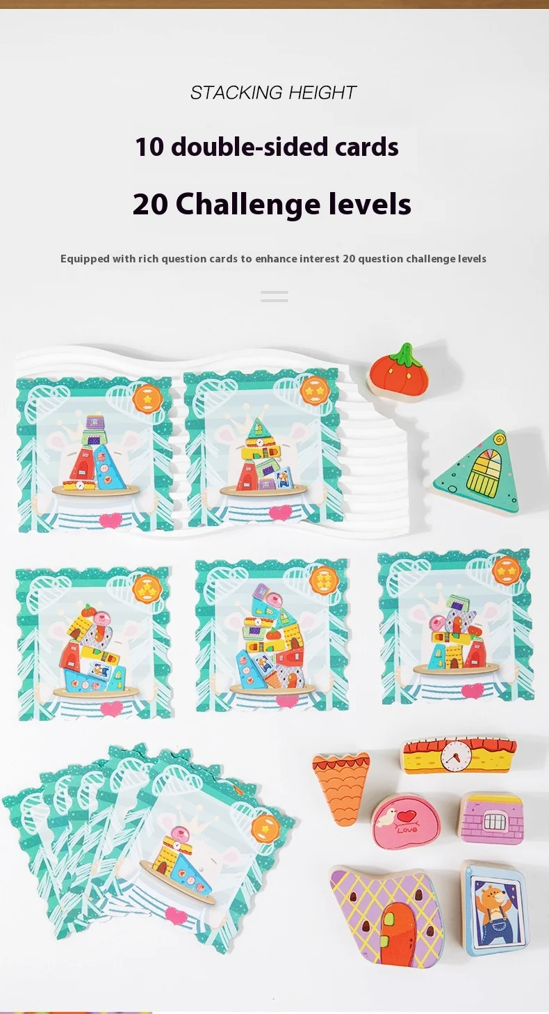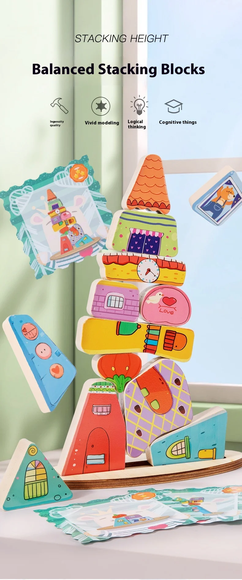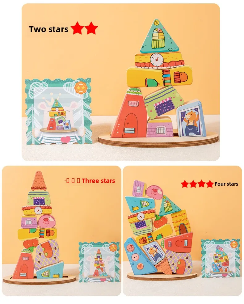 Colorful Wooden Stacking Blocks Kids Early Educational Interactive Exercise Family Eye-Hand Coordination Building Stacking Toys