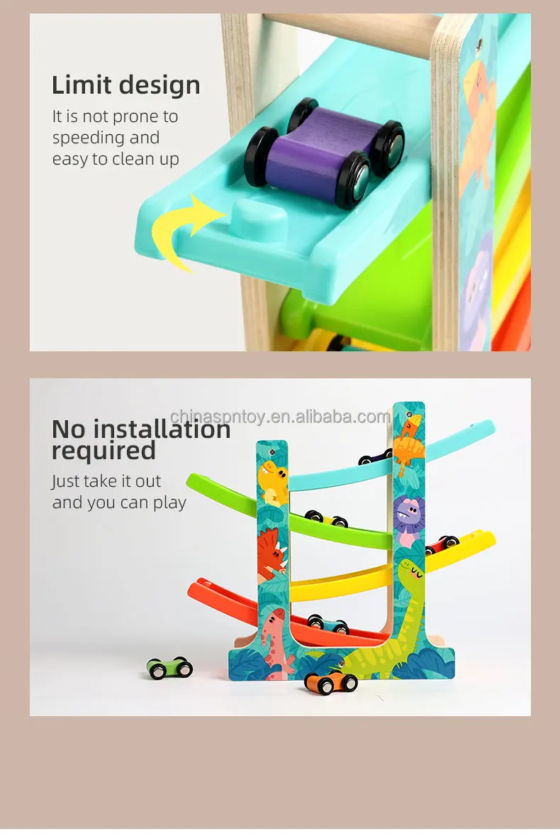 CPC CE EN71 DOC UL Certified Wooden Animal Gliding Rail Car Fun Slide Toy with Slot Feature Early Education Toy for Kids