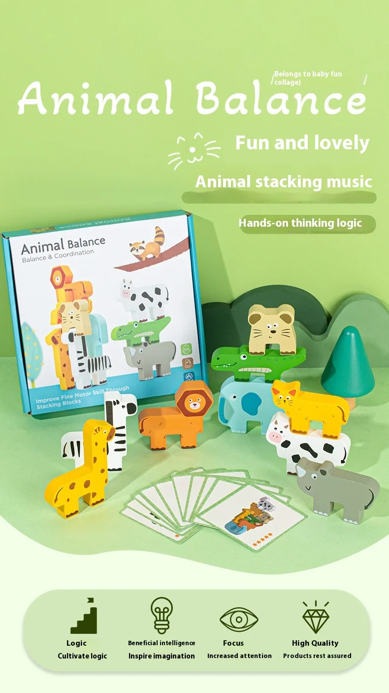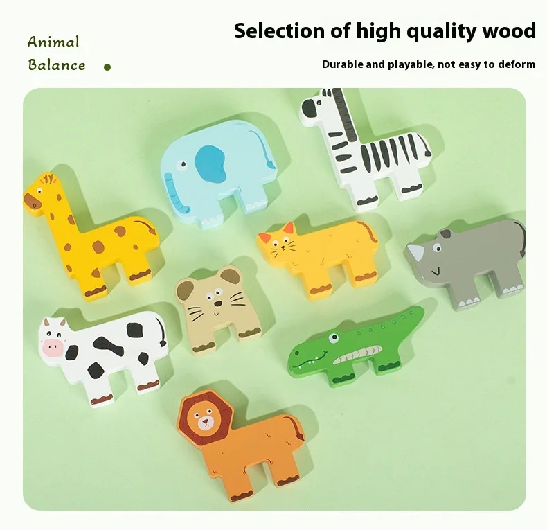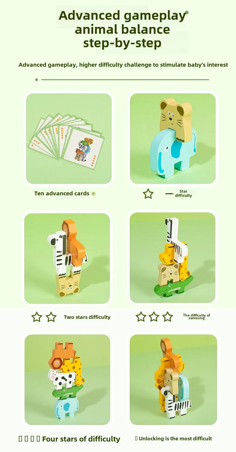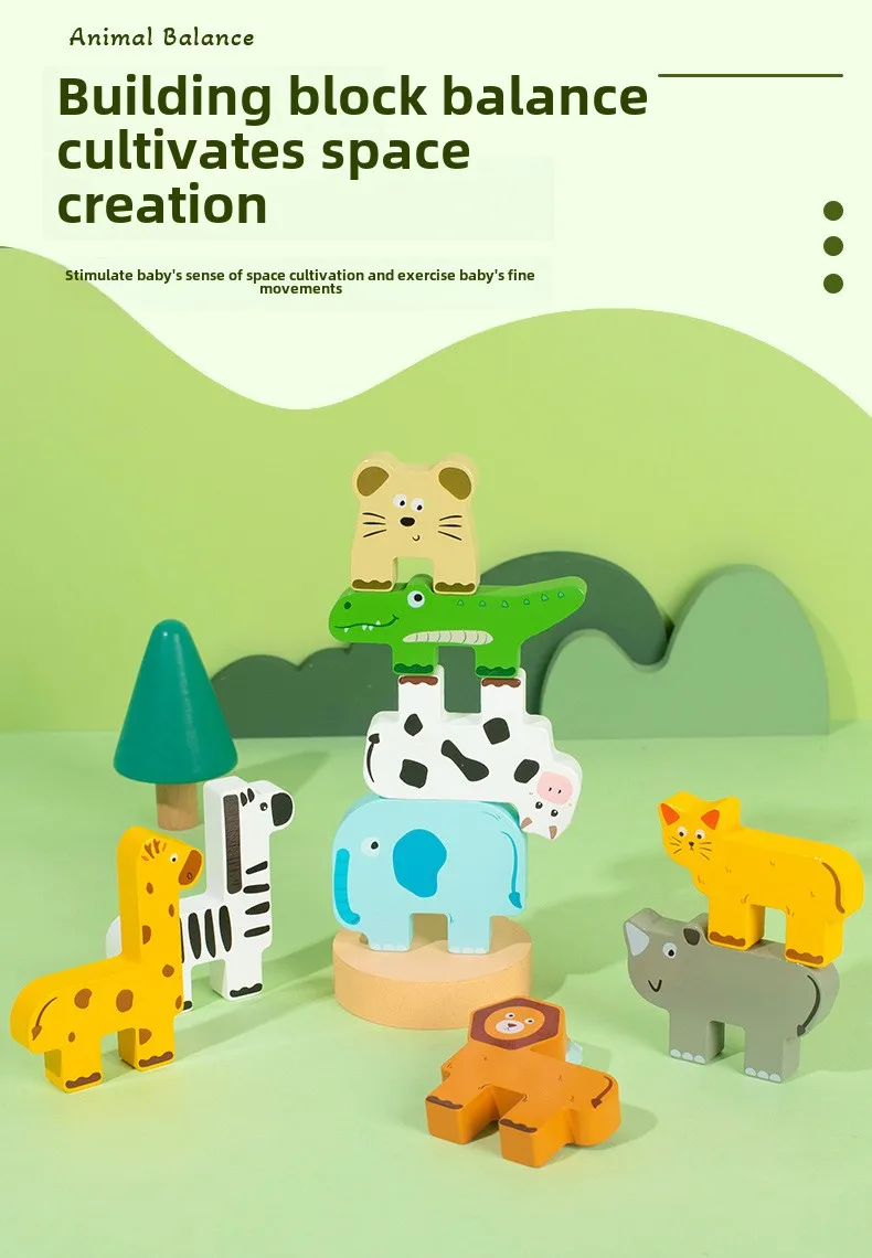 Cute Animal Balance Beam Stacking Building Blocks Set DIY Early Educational Fun Wooden Toys for Kids