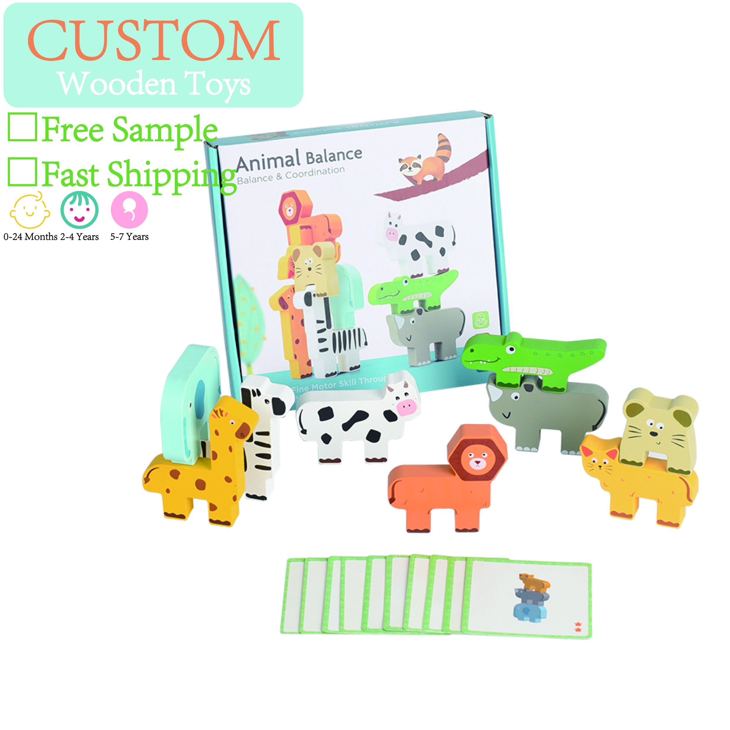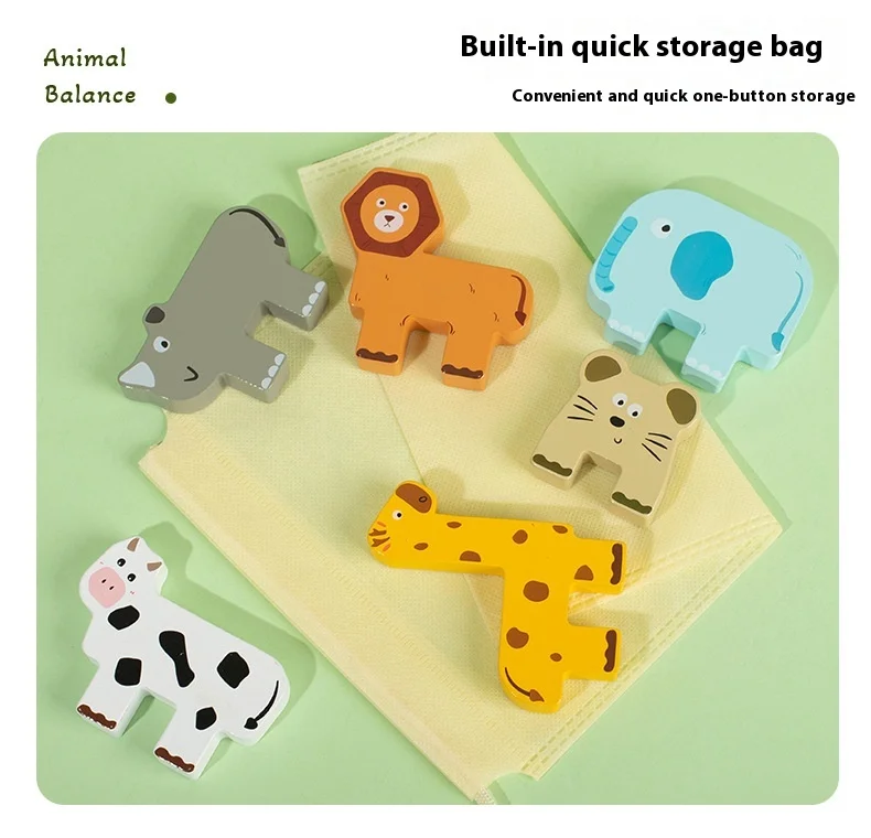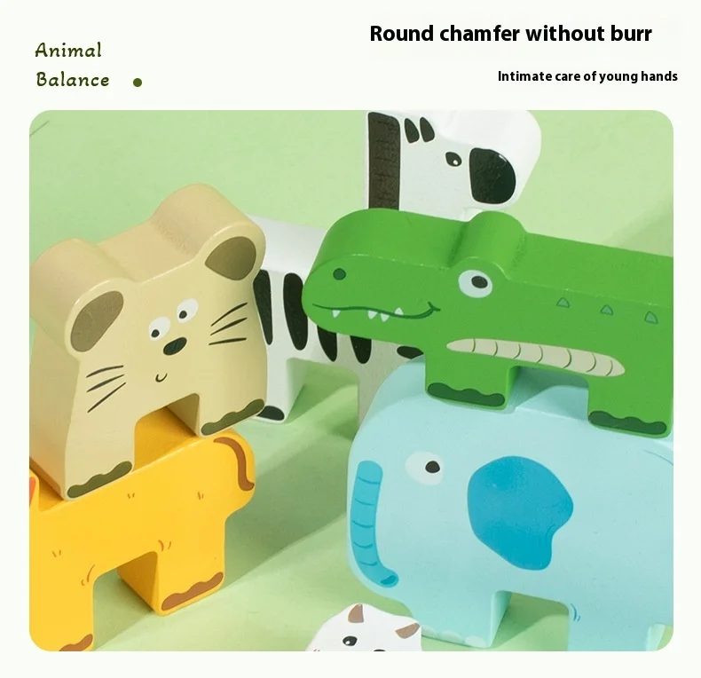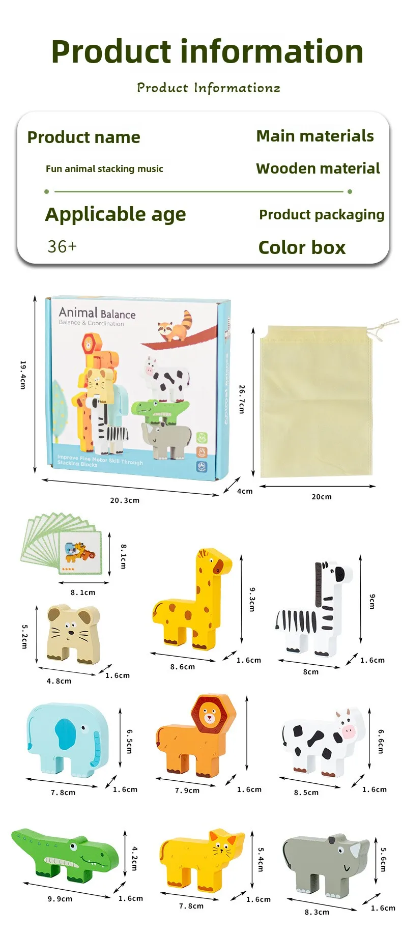 Cute Animal Balance Beam Stacking Building Blocks Set DIY Early Educational Fun Wooden Toys for Kids