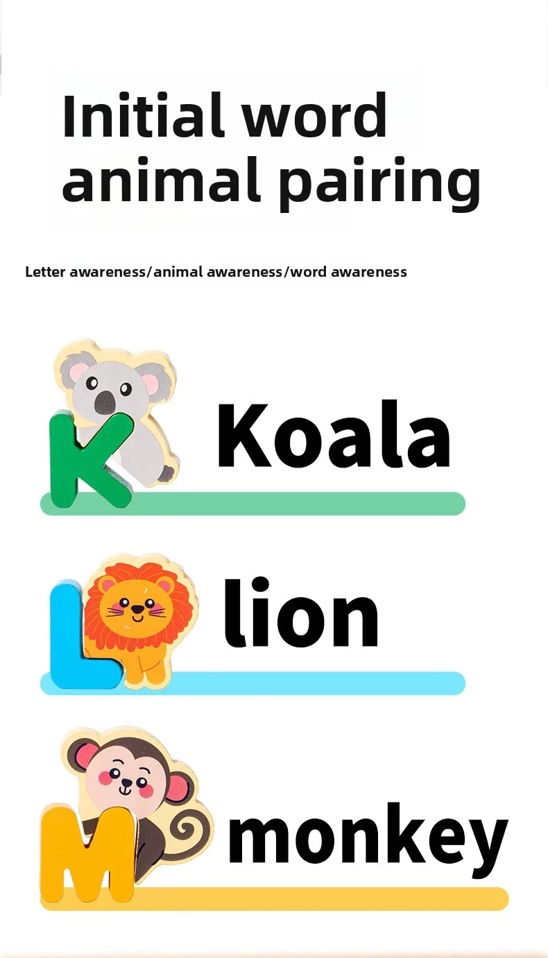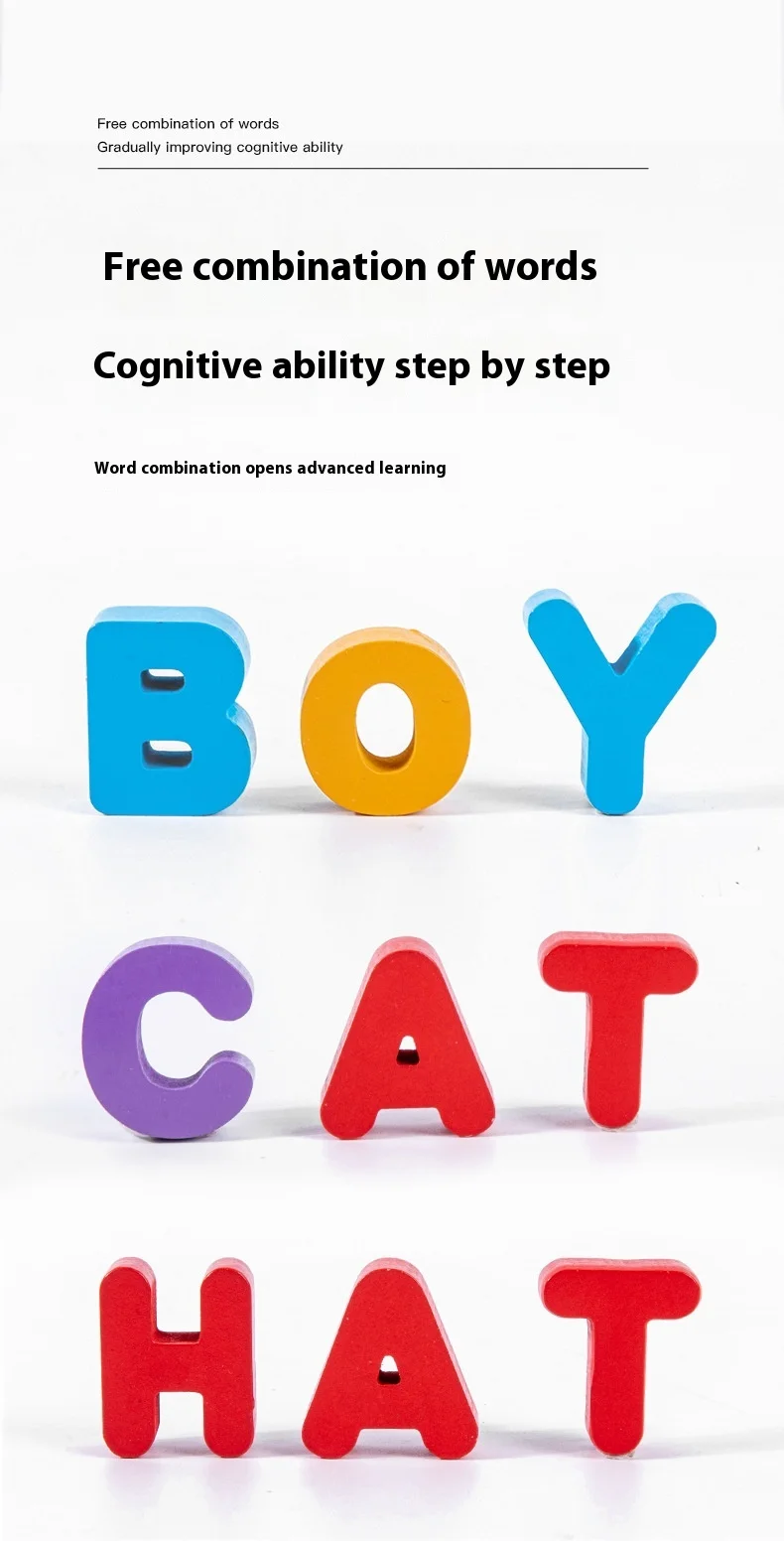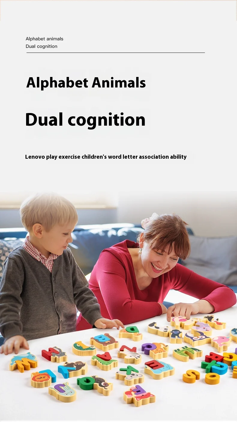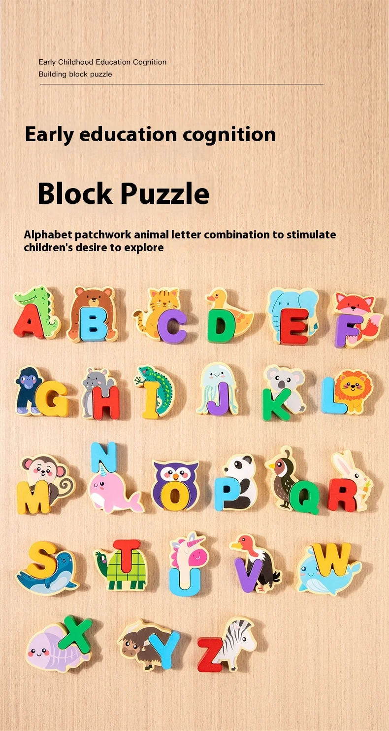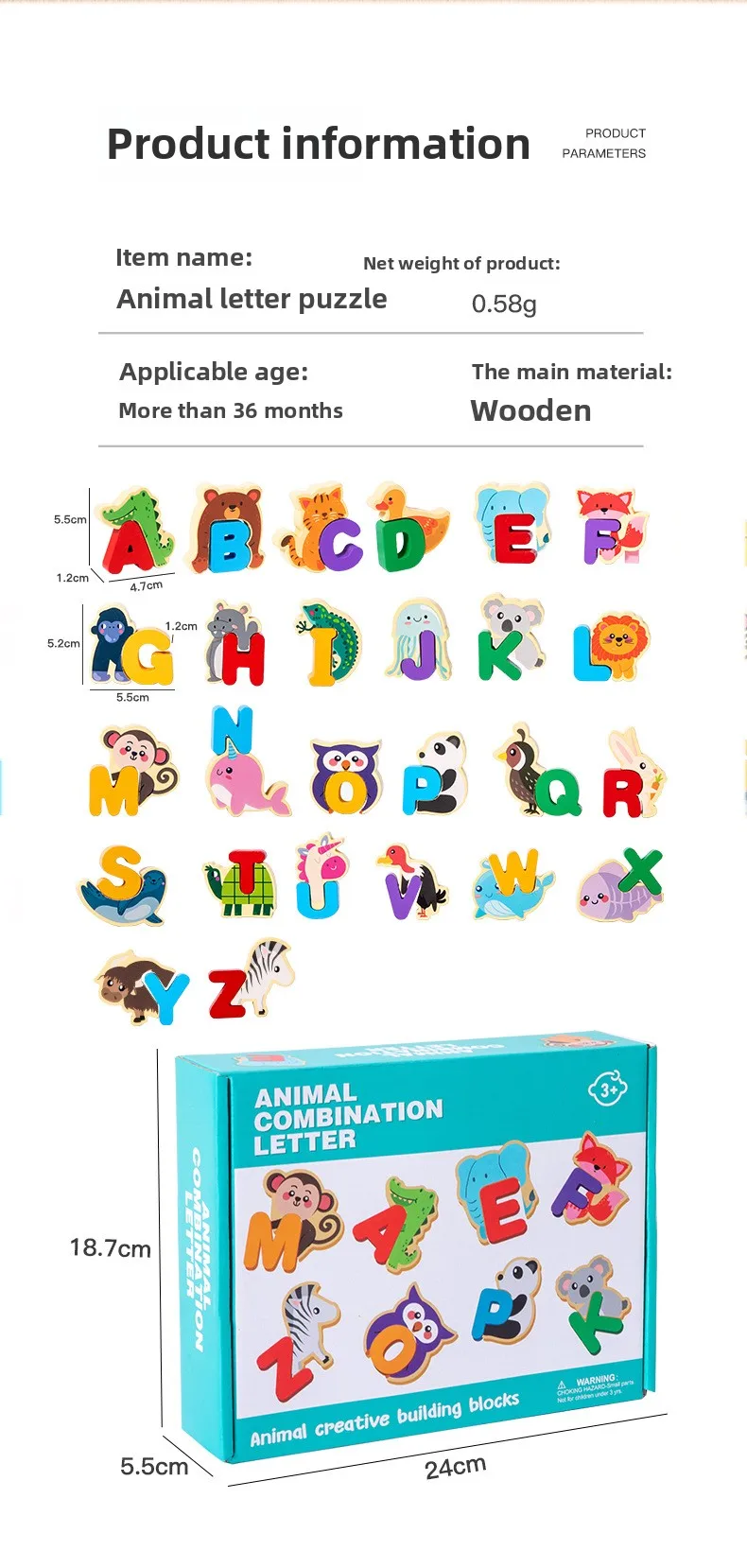 Double-Sided 3D Wooden English Animal Blocks New Early Education Number Letter Matching Puzzle Children’s Educational Toy