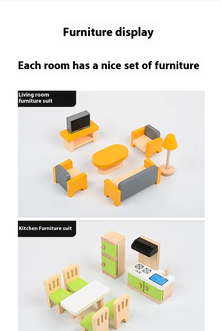 Double-sided Wooden Pretend Play Dollhouse Children’s Mini Simulation Furniture Princess House