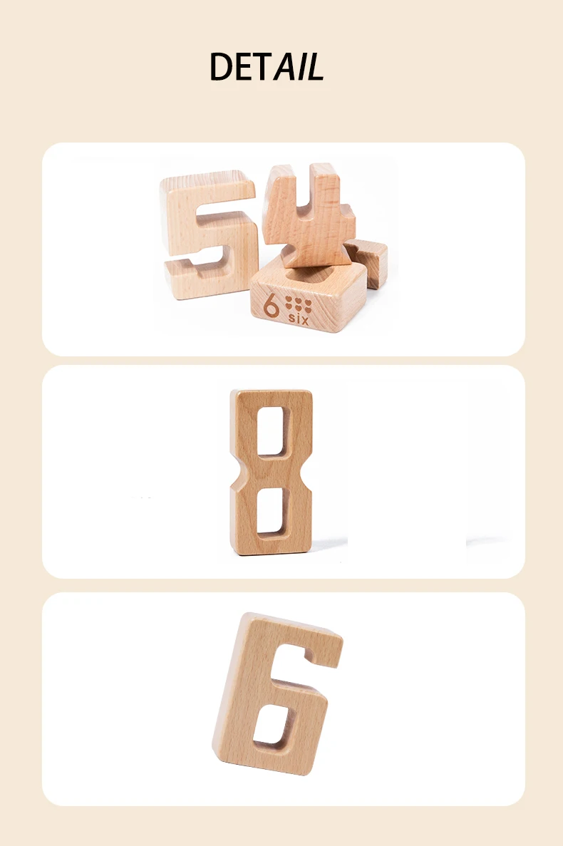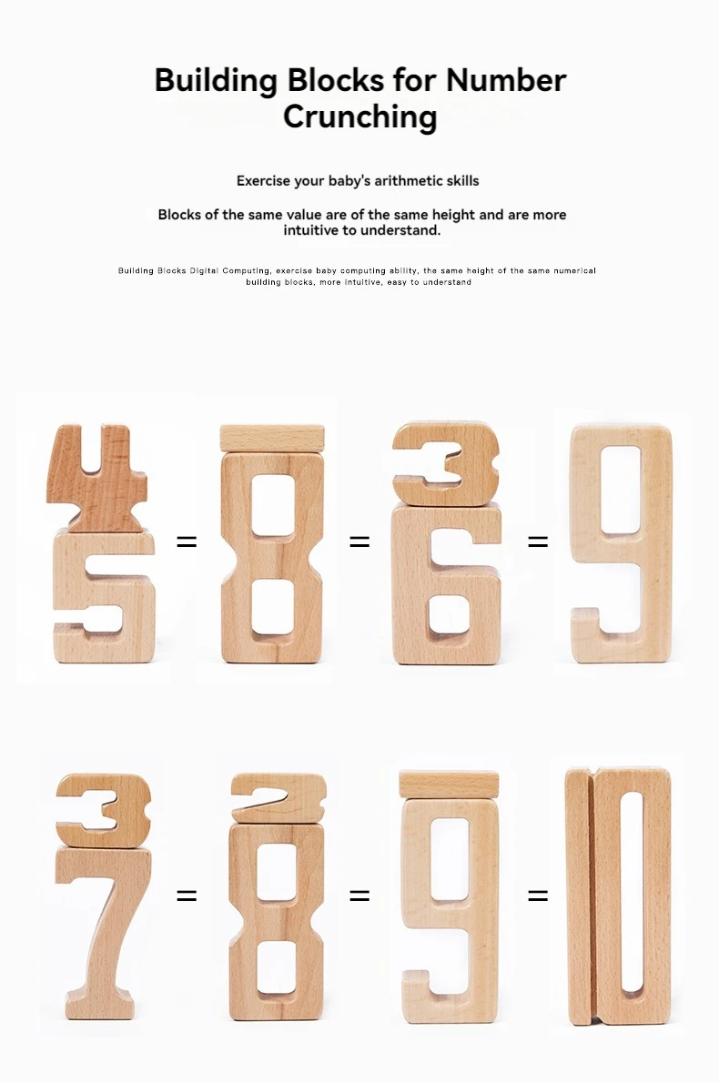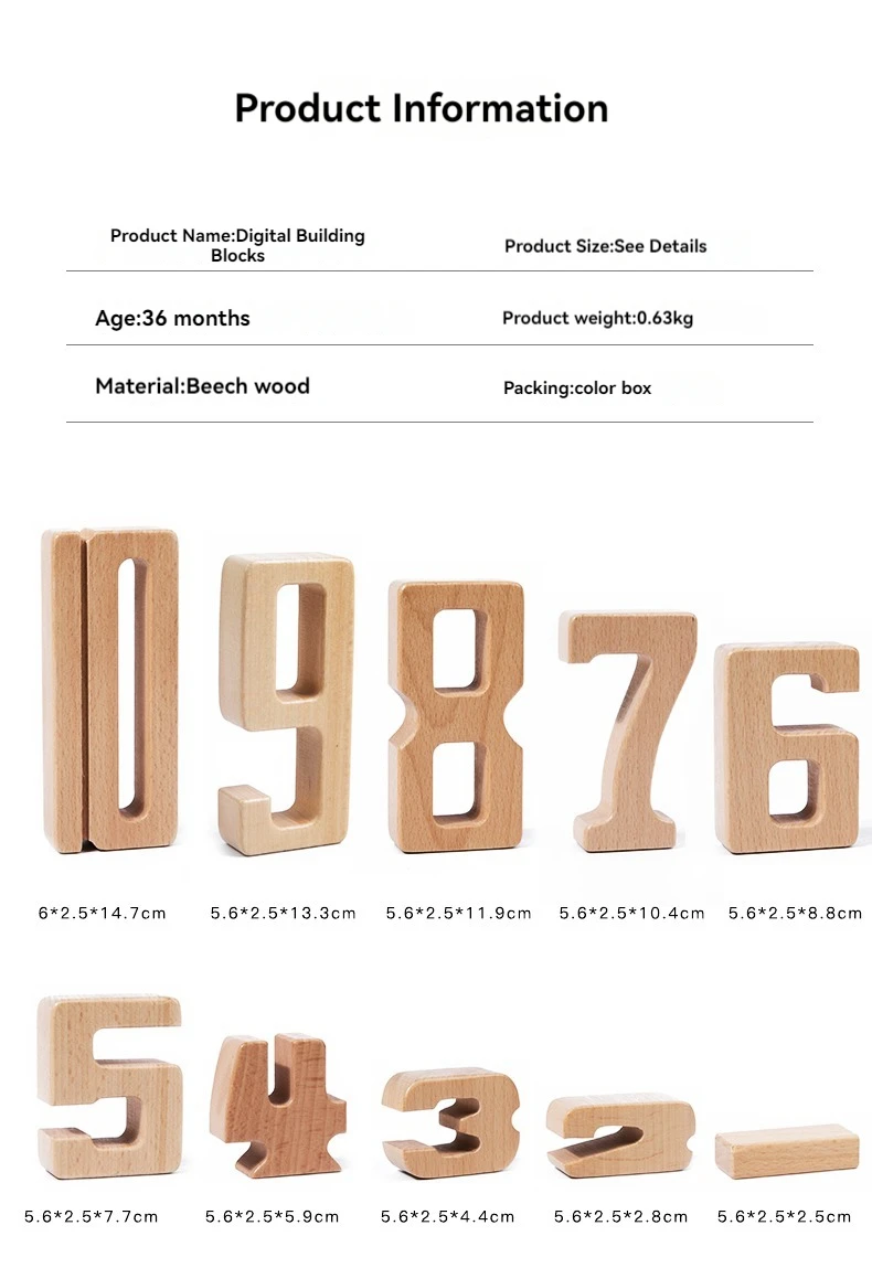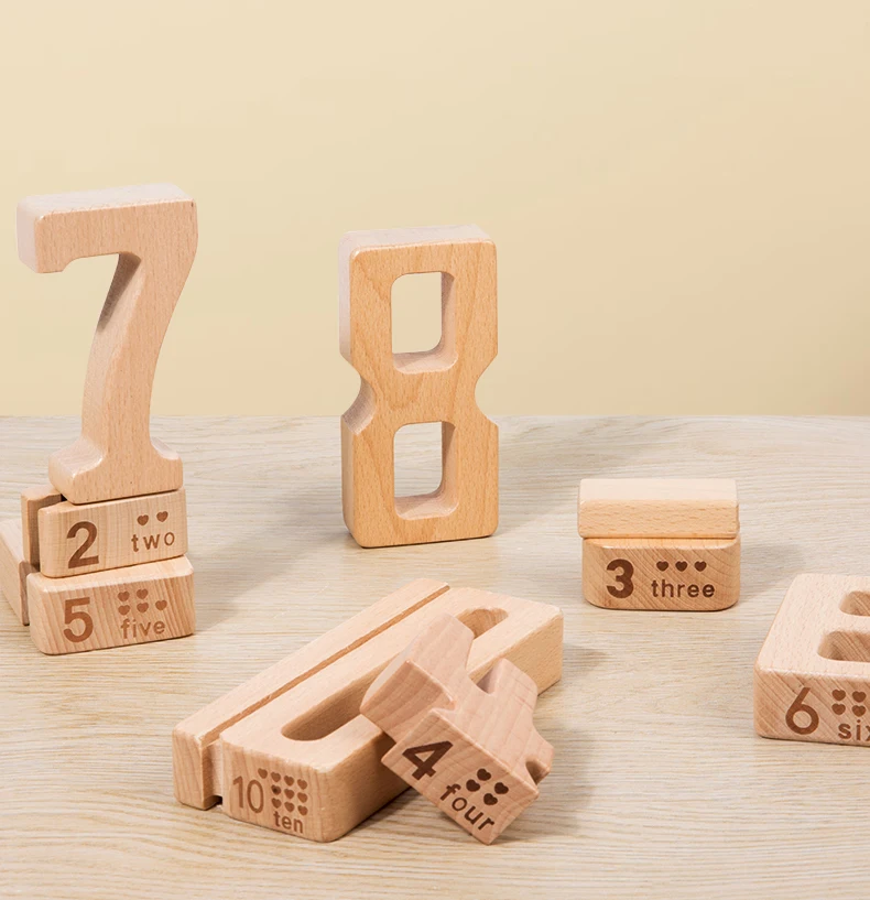 Early Education Montessori Beech Wood Digital Building Blocks Kindergarten Mathematics Teaching Tools