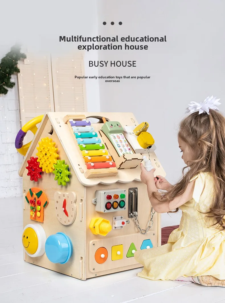 Early Education Multifunctional Concentration Training New Creative Wooden Montessori Busy House Children’s Educational Toys