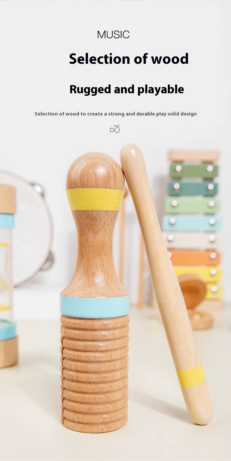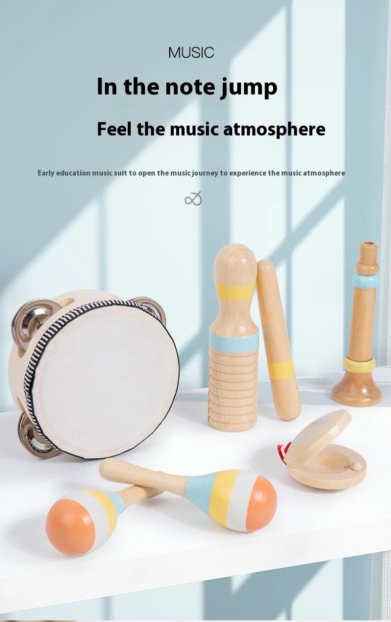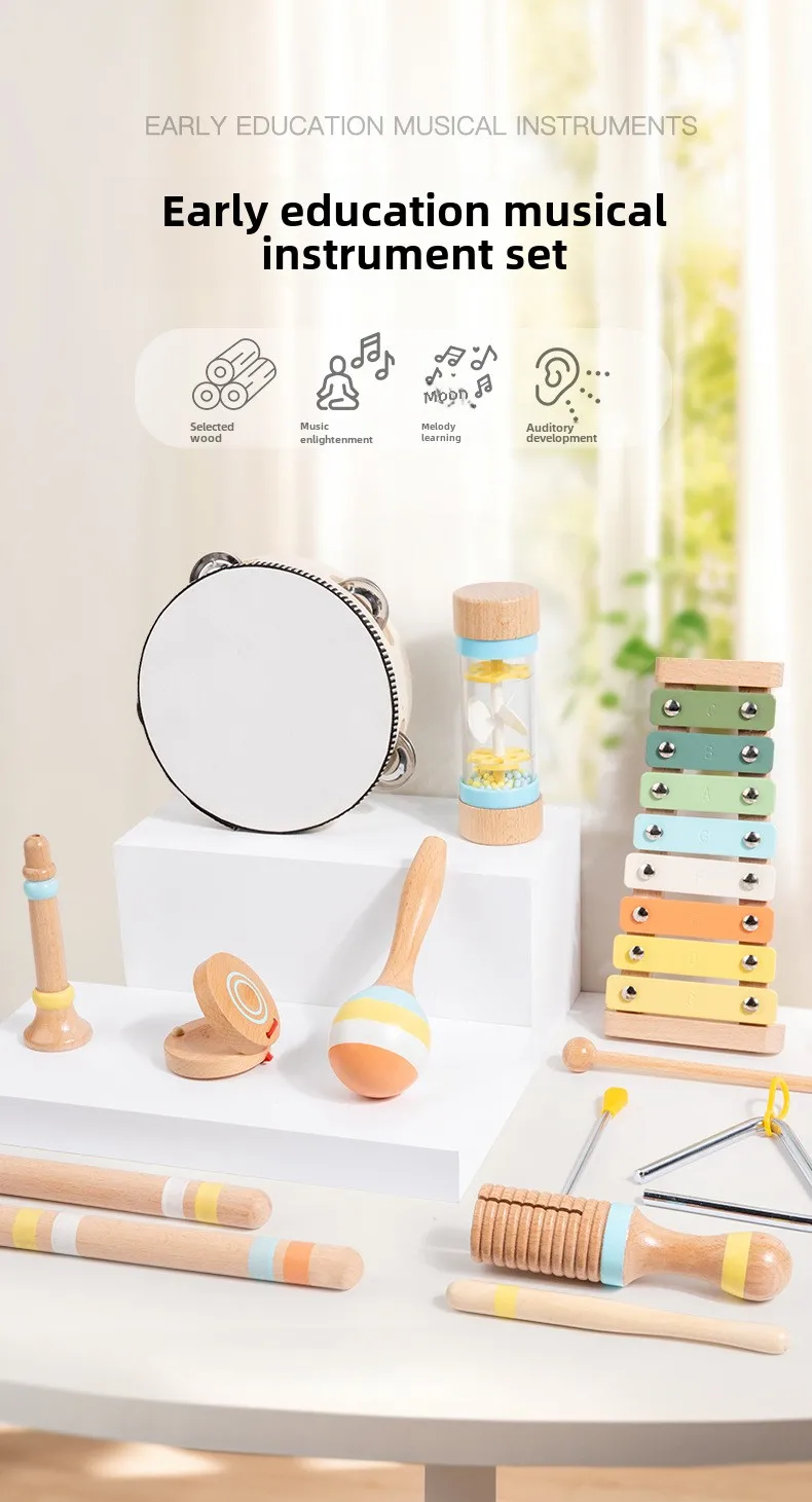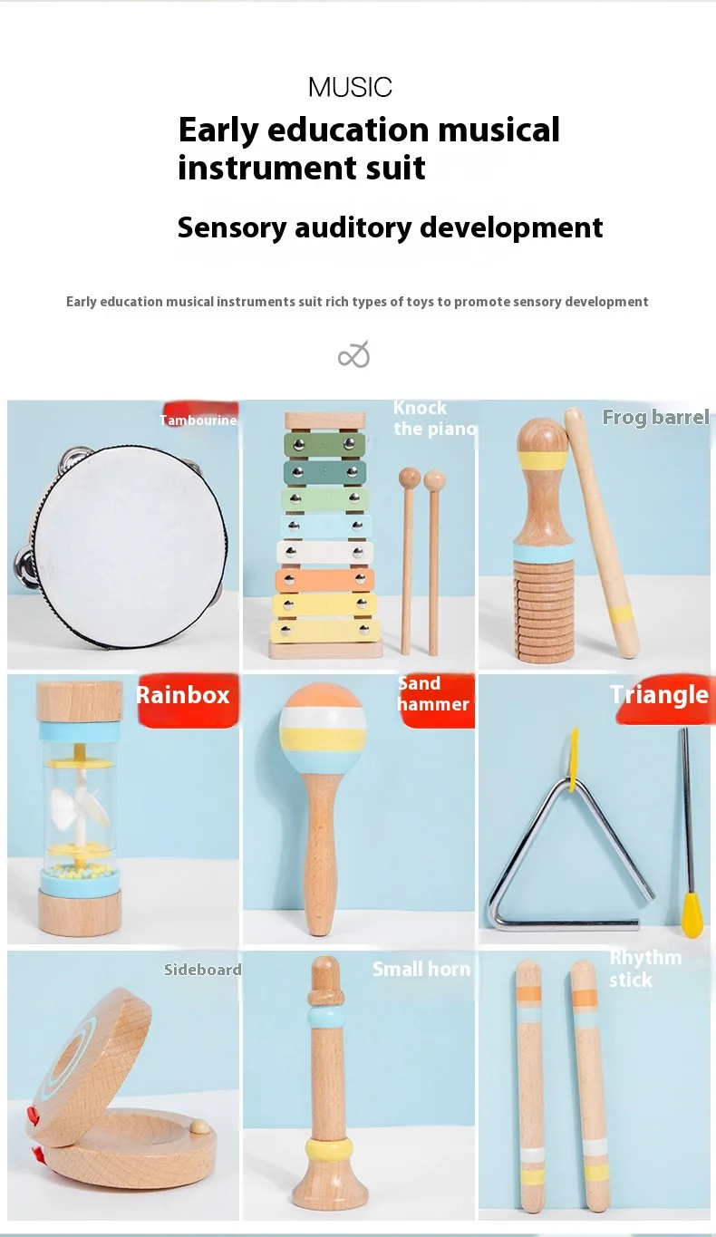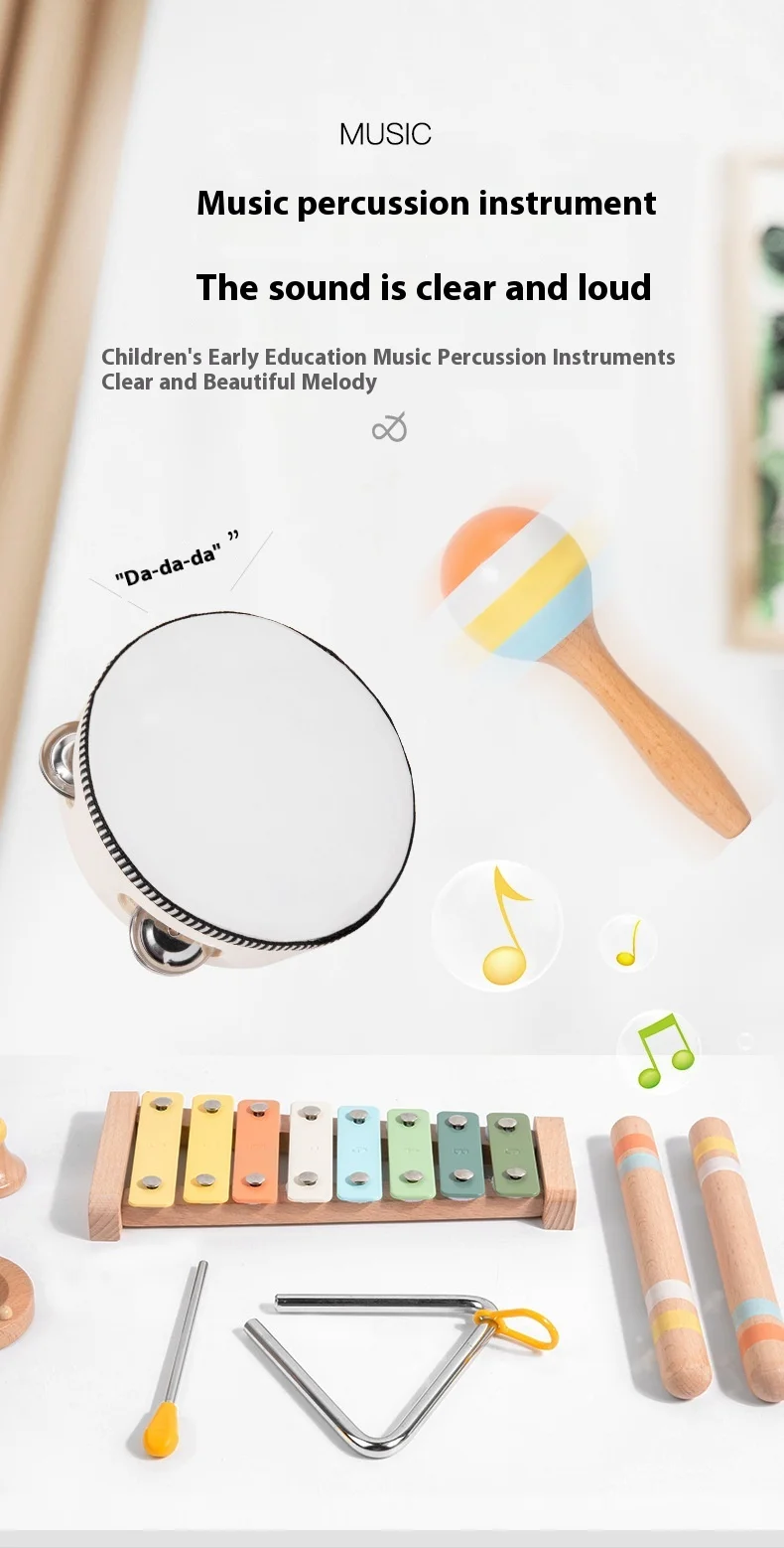 Early Education Musical Instrument Set Kids Sand Hammer Striking Tambourine Wooden Toys for Music Educational Development