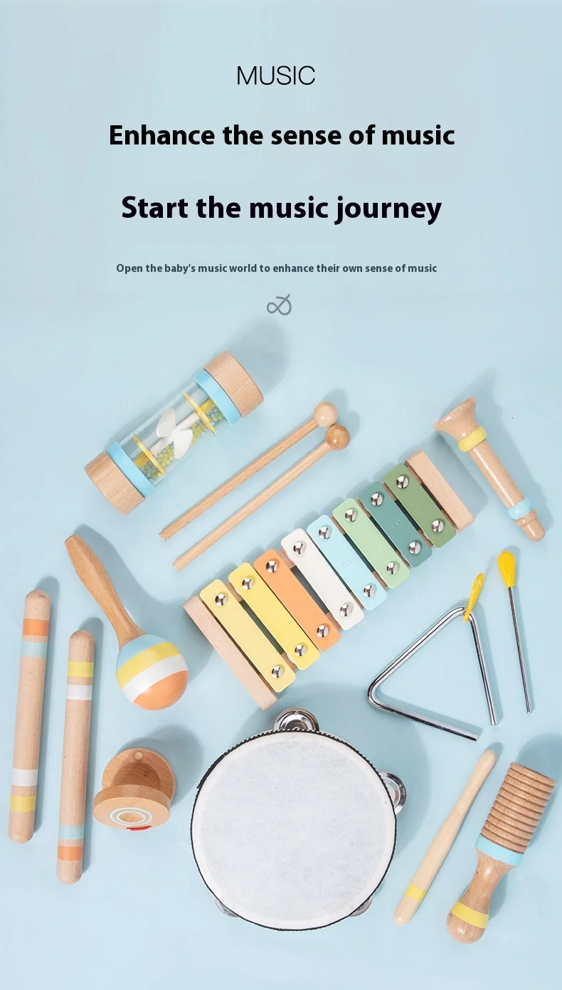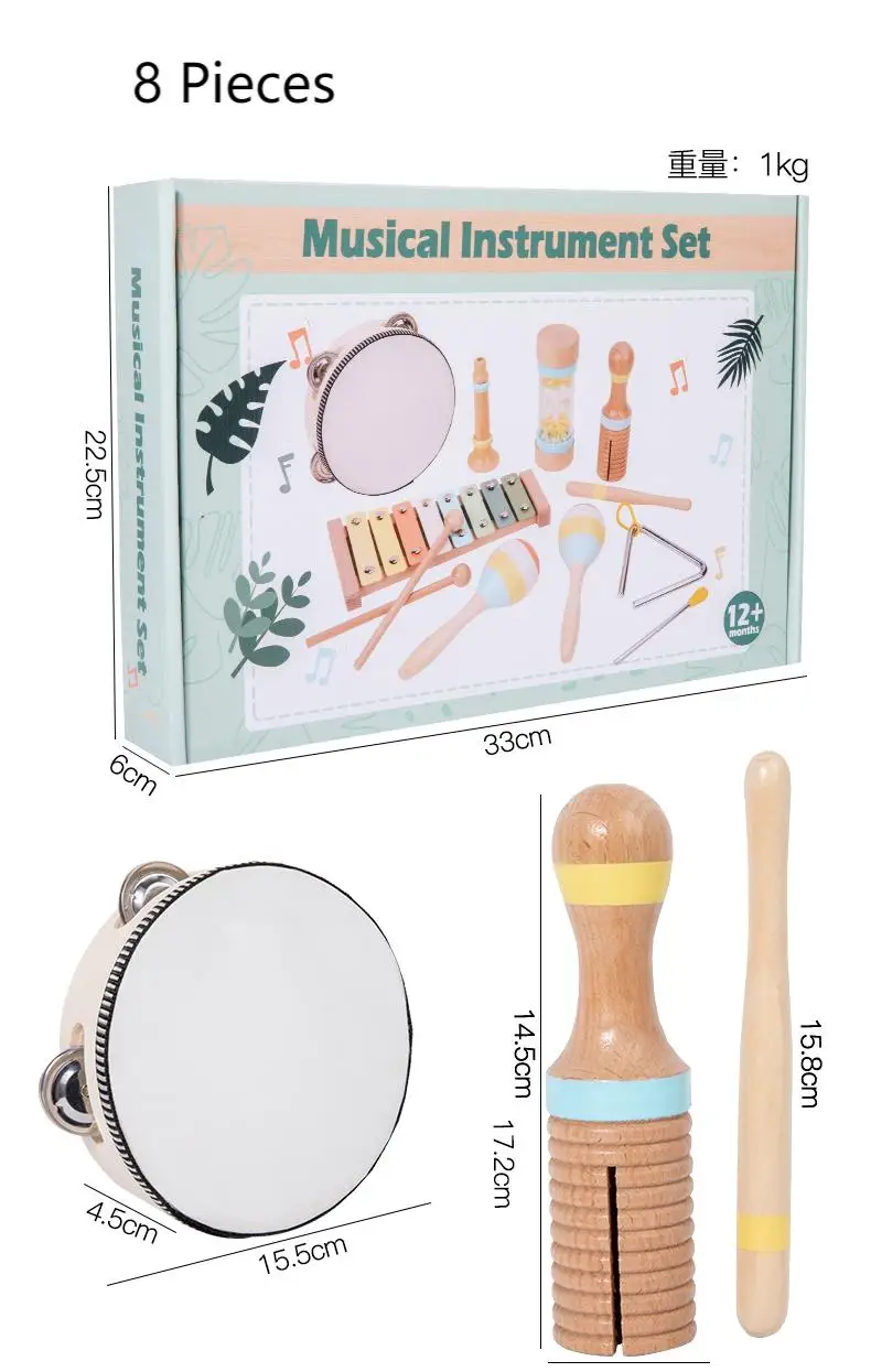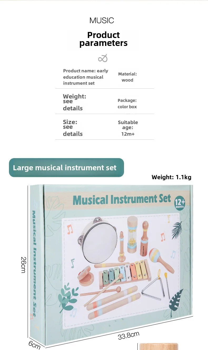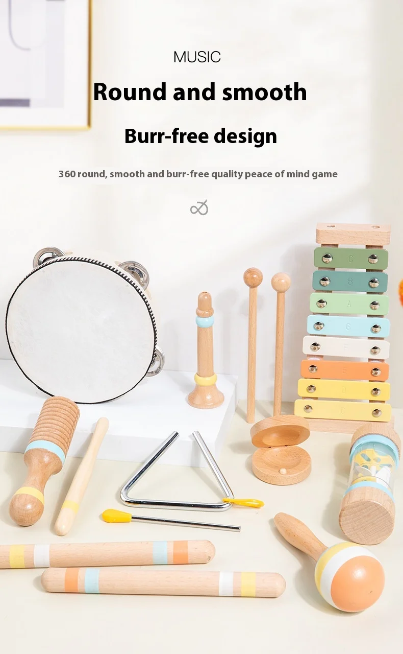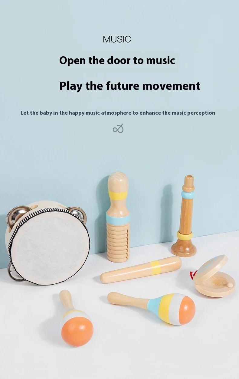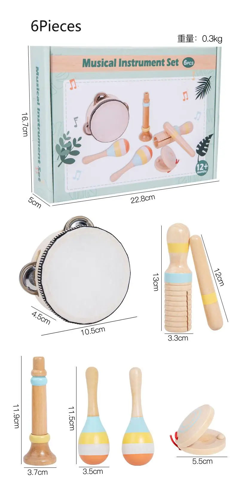 Early Education Musical Instrument Set Kids Sand Hammer Striking Tambourine Wooden Toys for Music Educational Development