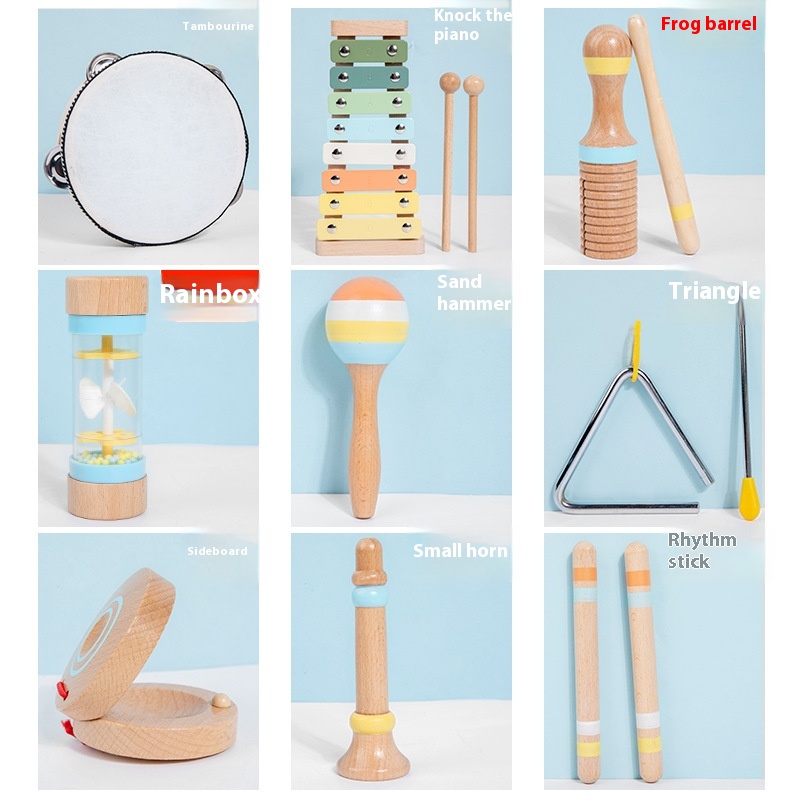 Early Education Musical Instrument Set Kids Sand Hammer Striking Tambourine Wooden Toys for Music Educational Development