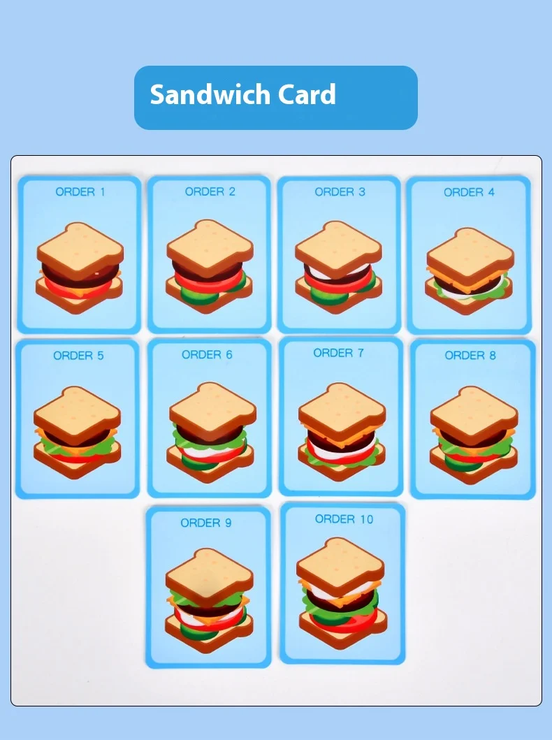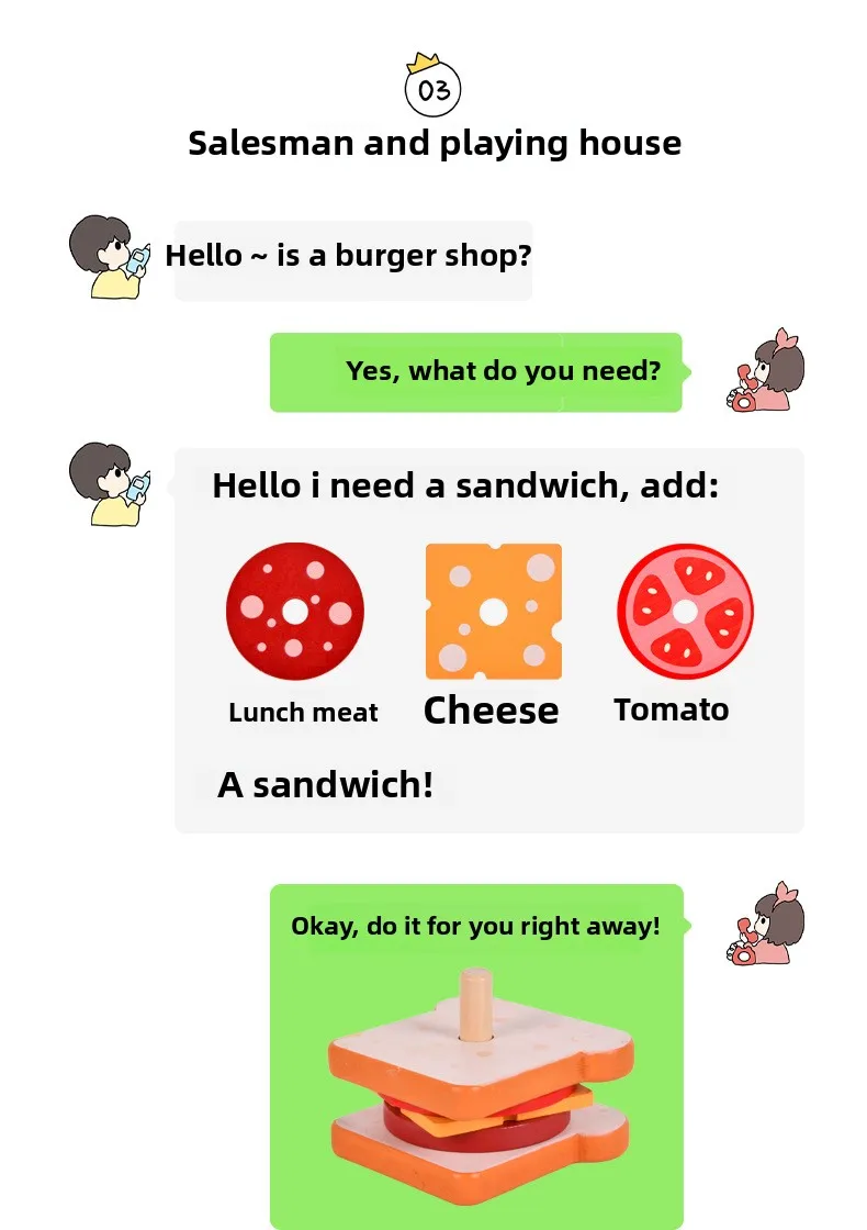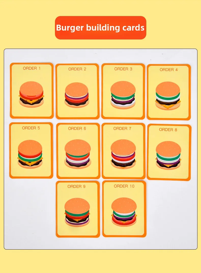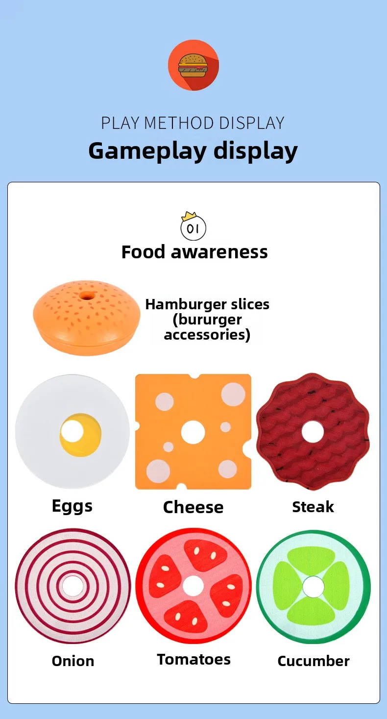 Early Education Unisex Wooden Simulation Hamburger Sandwich Stacking Blocks Kids’ Kitchen Play House with Educational Toys