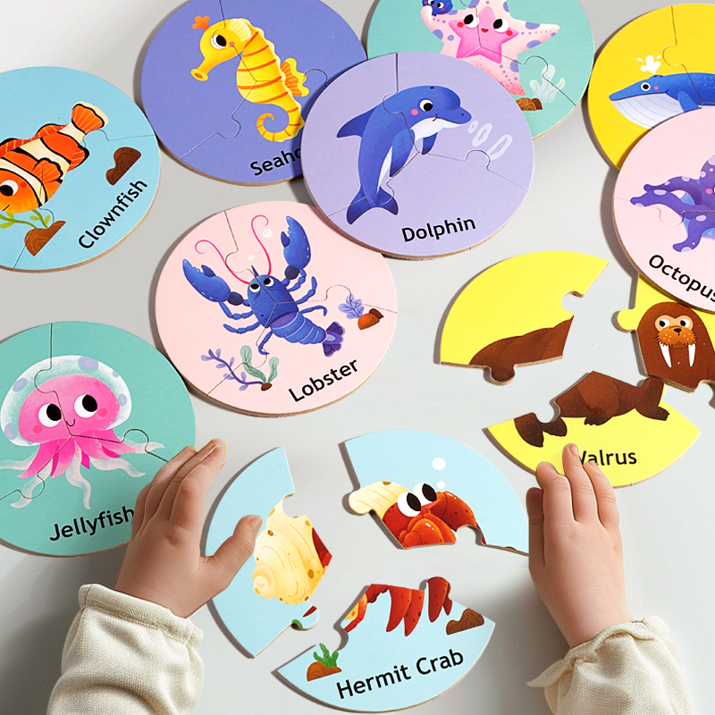 Early Education Wooden Ocean Forest Animal Matching Puzzle Children’s English Circular Puzzle Interactive Logic Training Toy