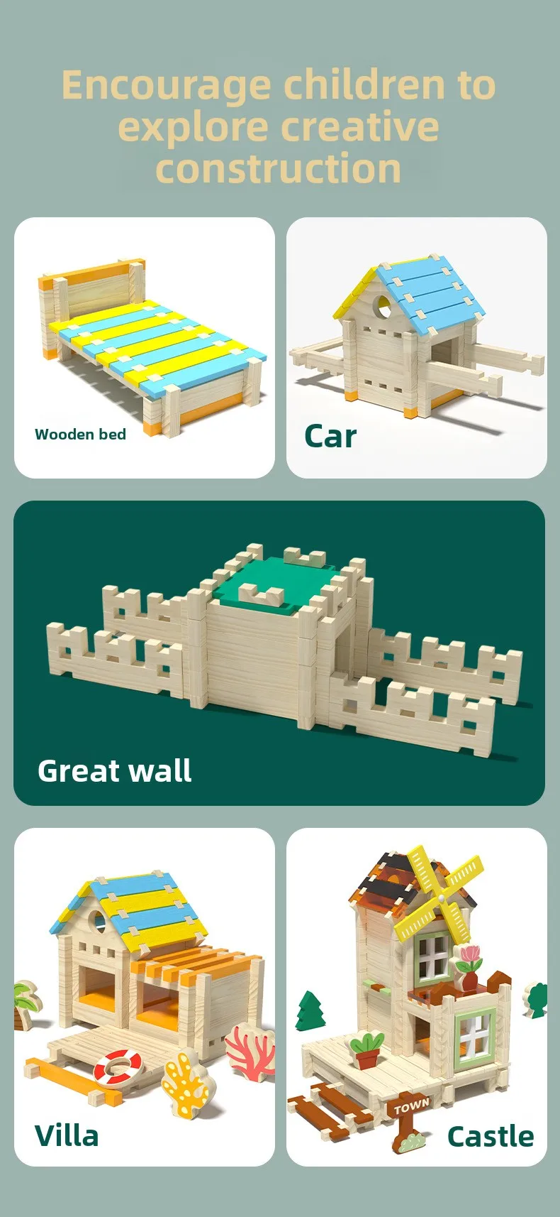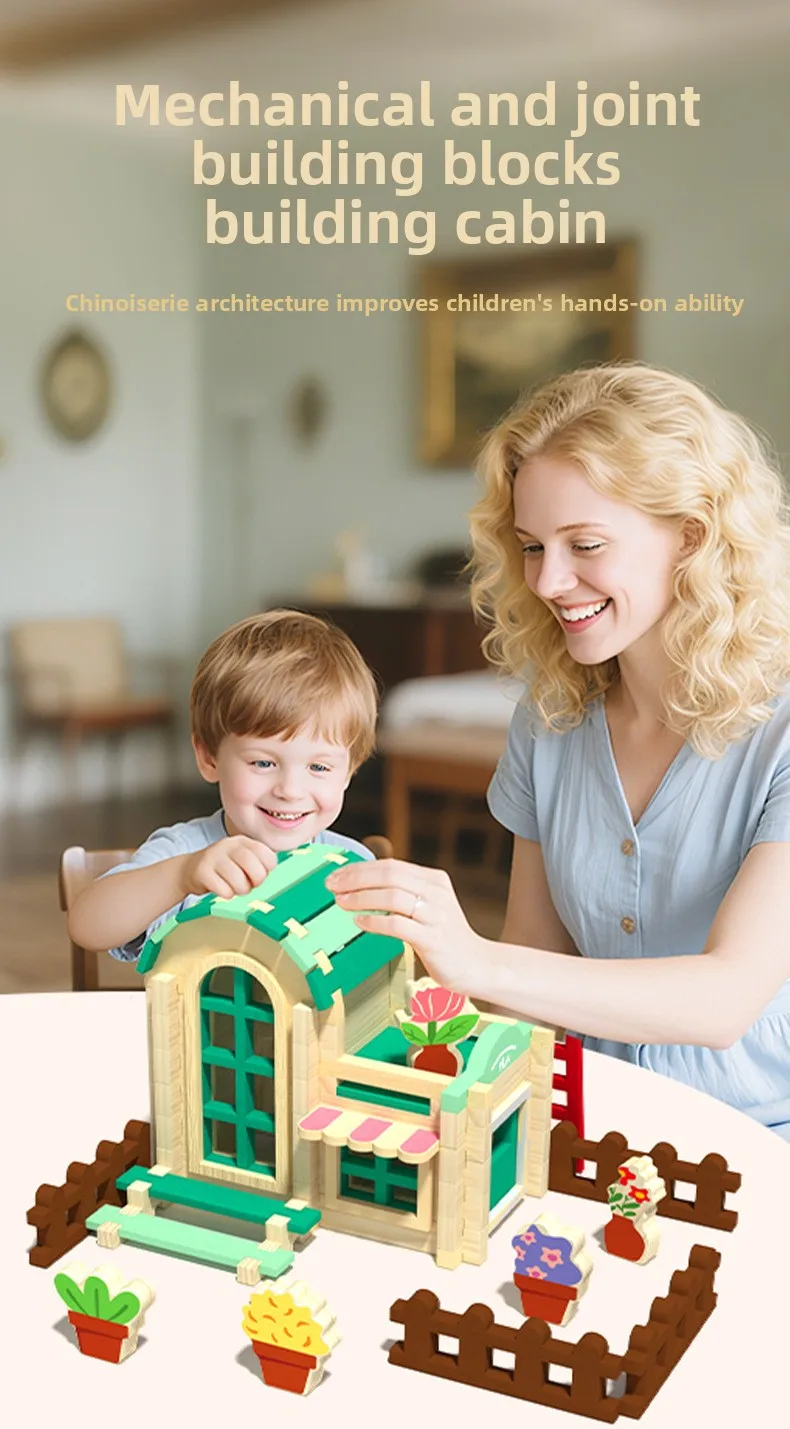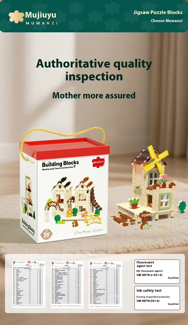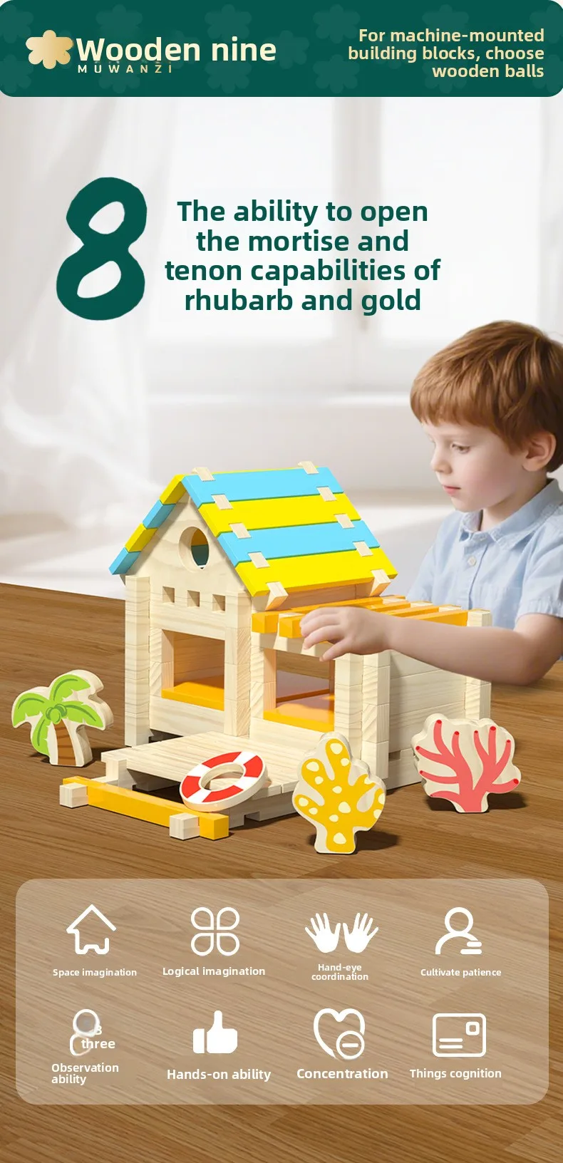 Early Education Wooden Toys for Children Five Types Mortise Tenon Construction Building Block Scene Puzzle House Educational