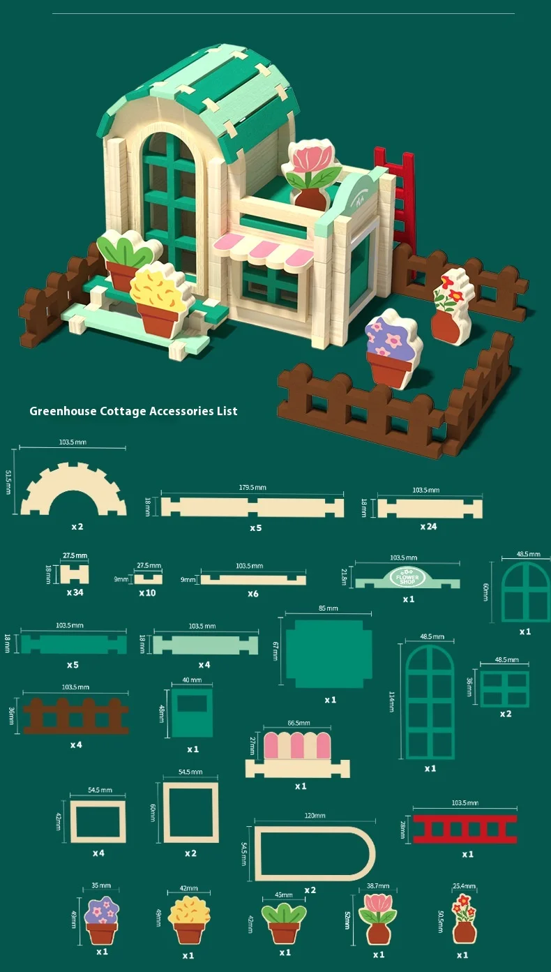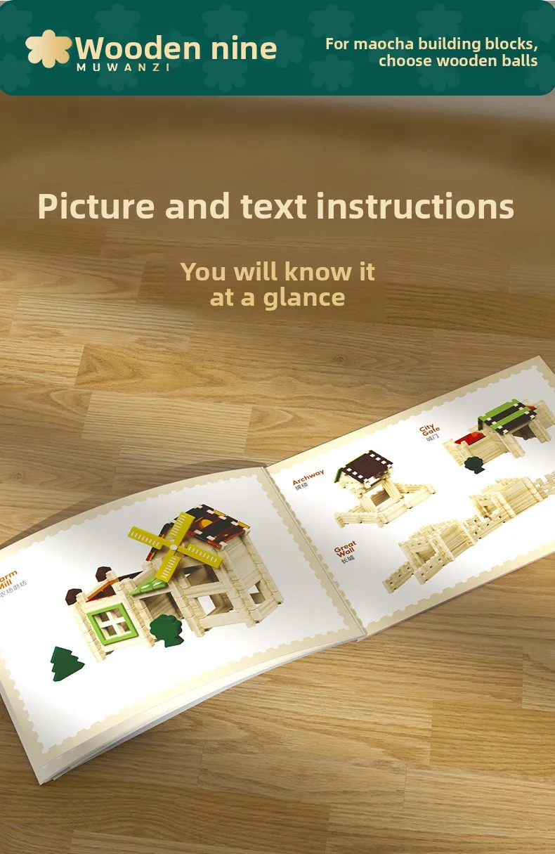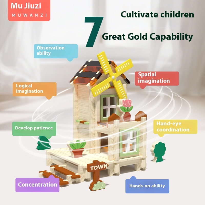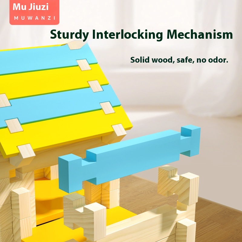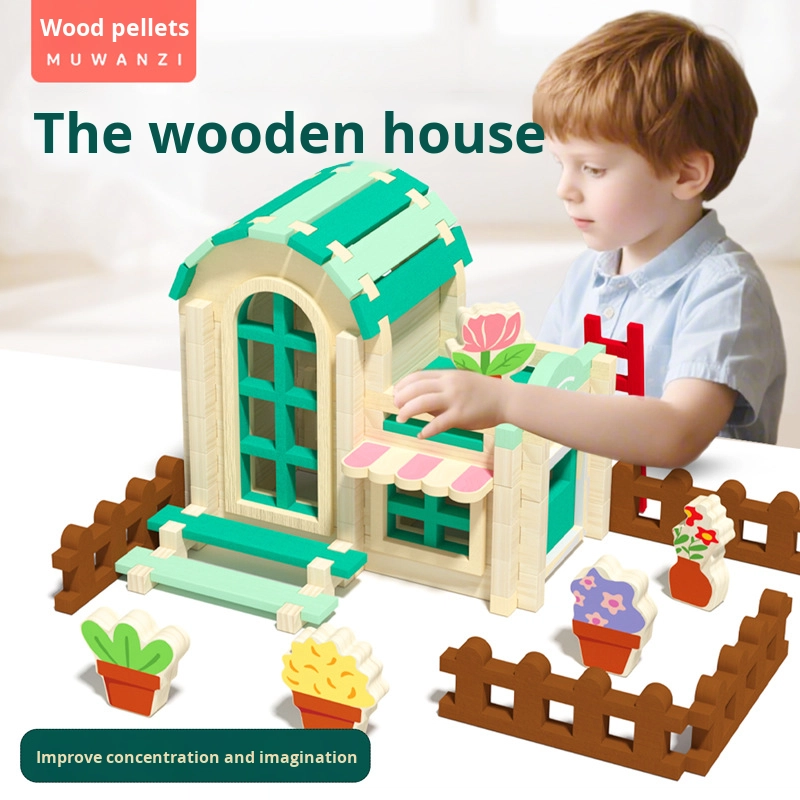 Early Education Wooden Toys for Children Five Types Mortise Tenon Construction Building Block Scene Puzzle House Educational