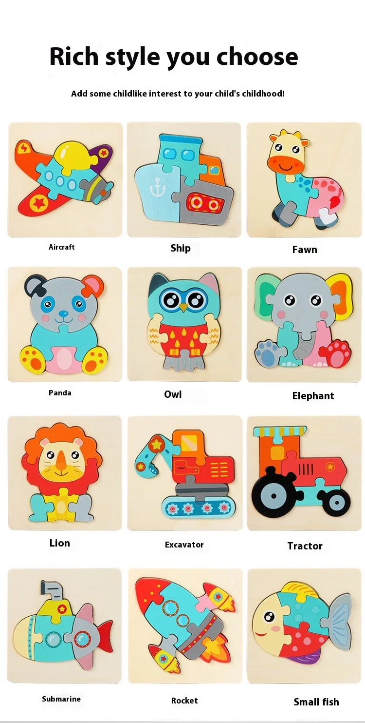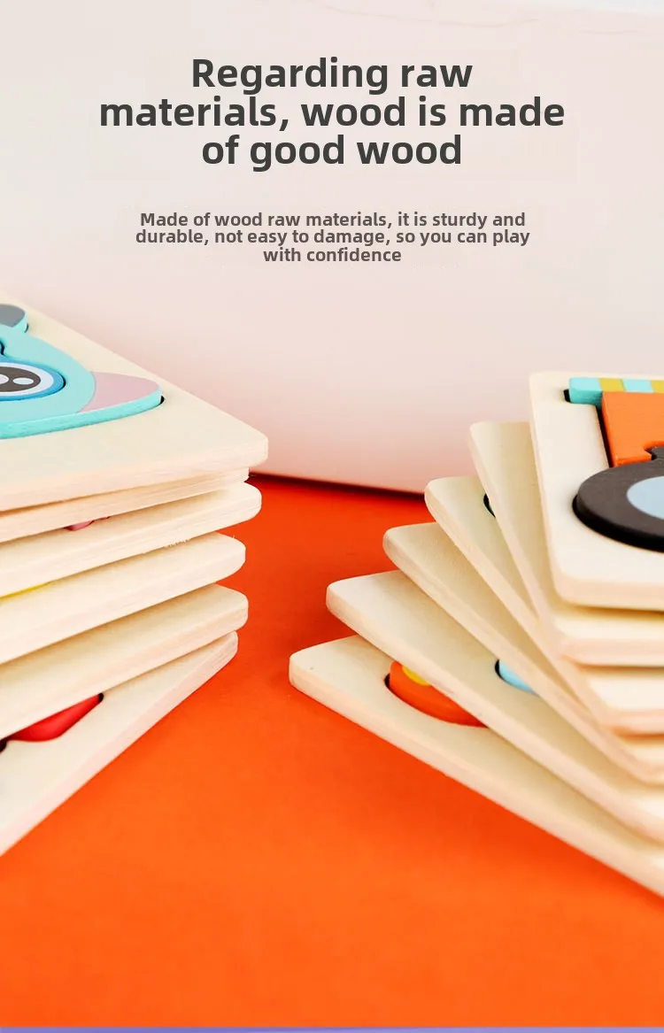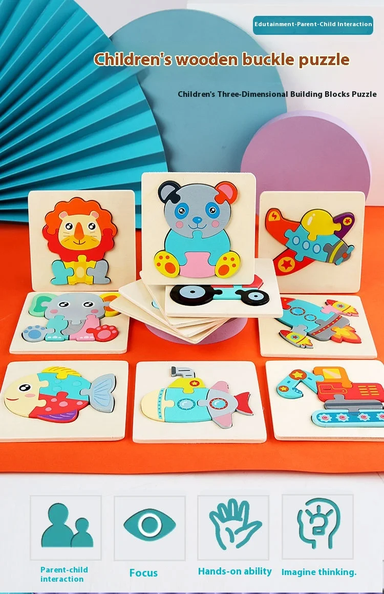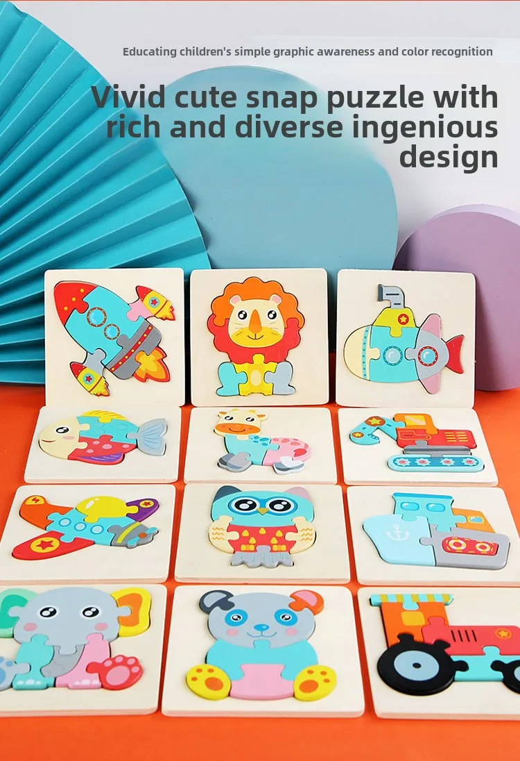 Early Educational 3D Animal Snap Puzzle Unisex Children’s Early Learning Wooden Toys Jigsaw Puzzle Board Toys