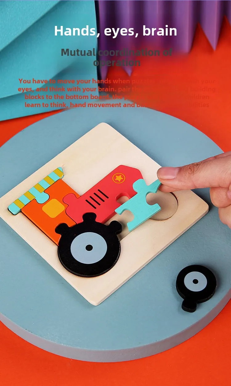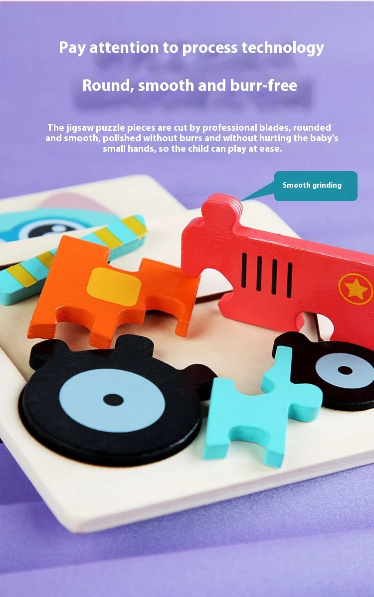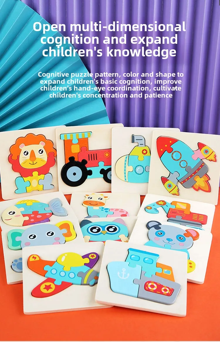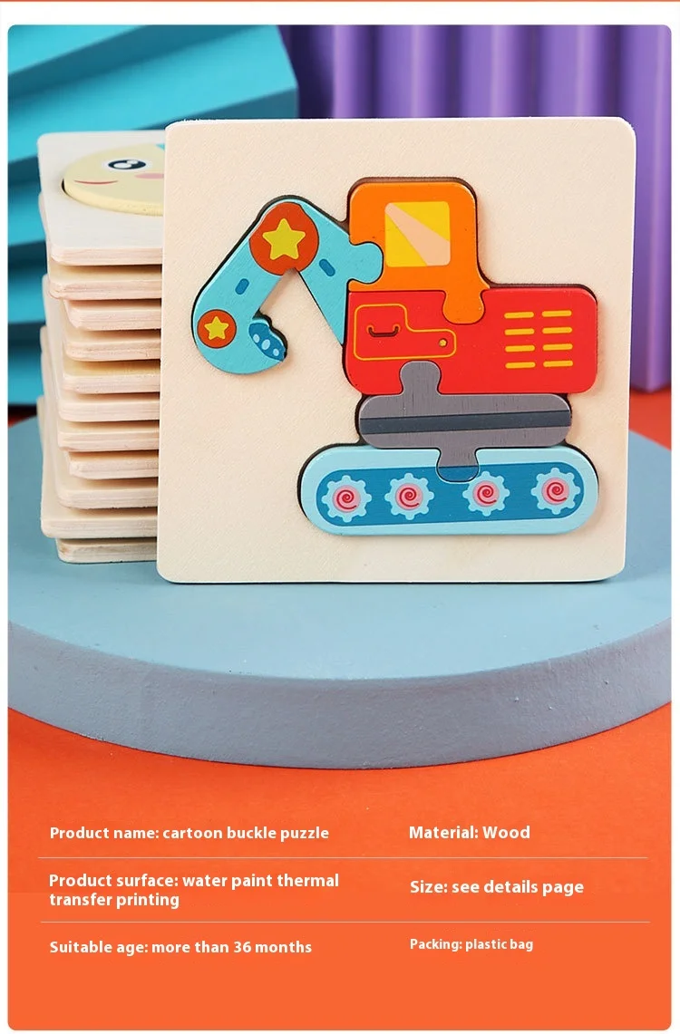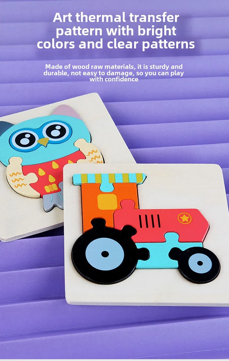 Early Educational 3D Animal Snap Puzzle Unisex Children’s Early Learning Wooden Toys Jigsaw Puzzle Board Toys