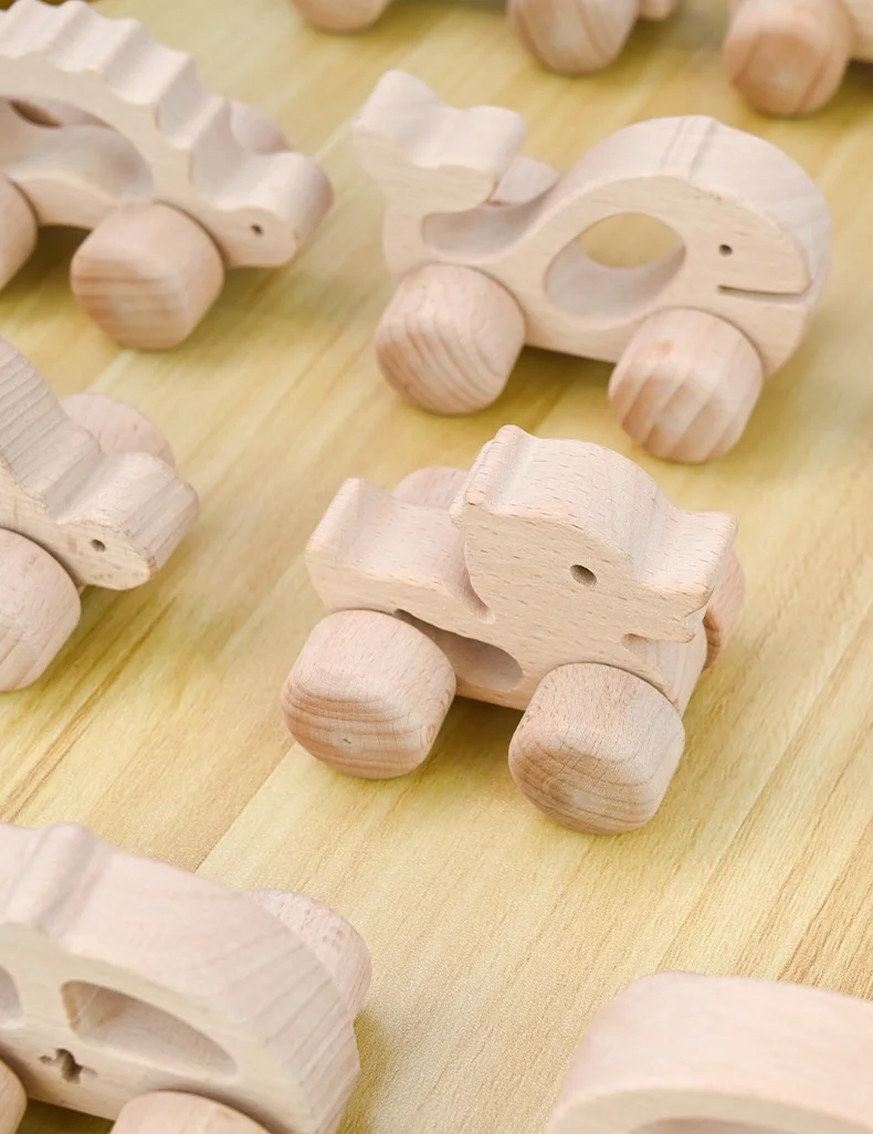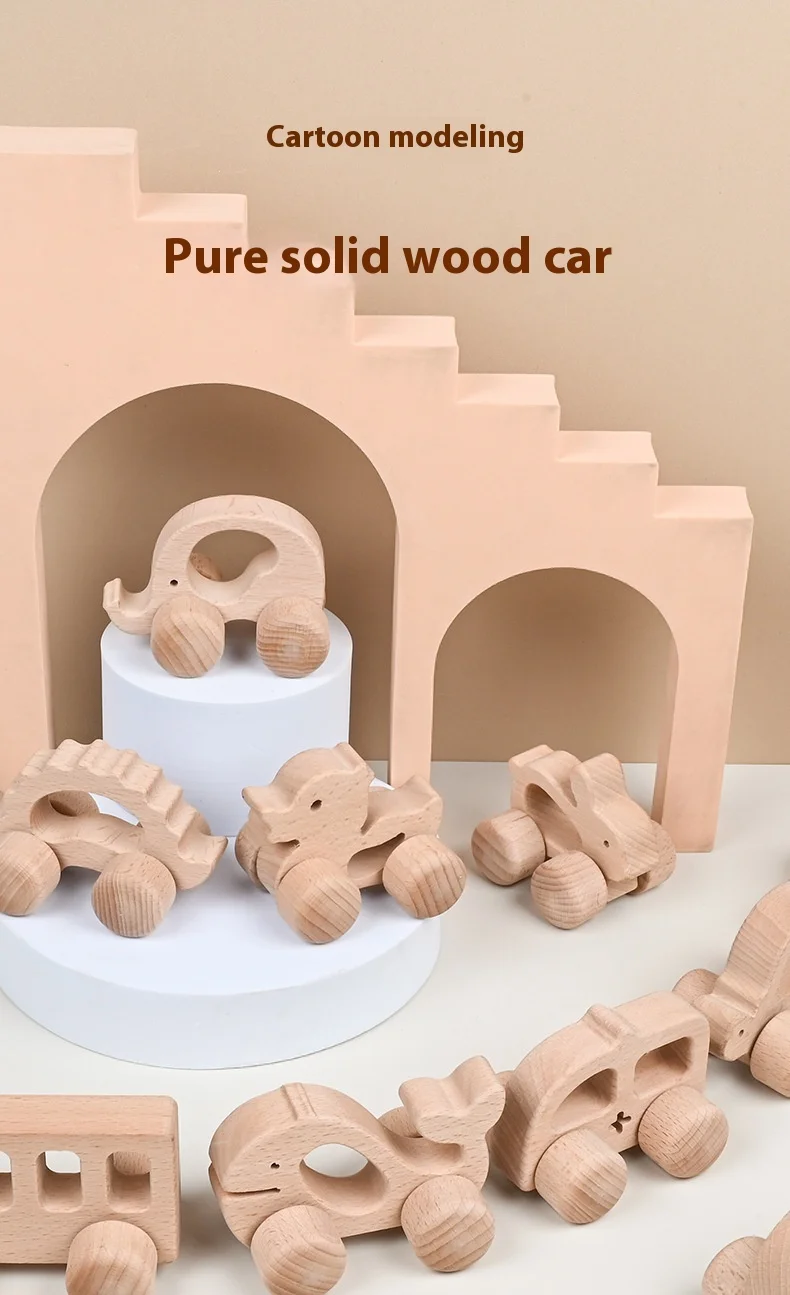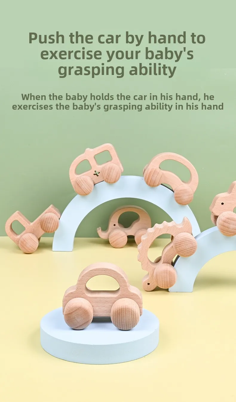 Early Educational Grasping Practice 16Type Wooden Car Toy Montessori Small Baby Multiple Beech Wood Push Train