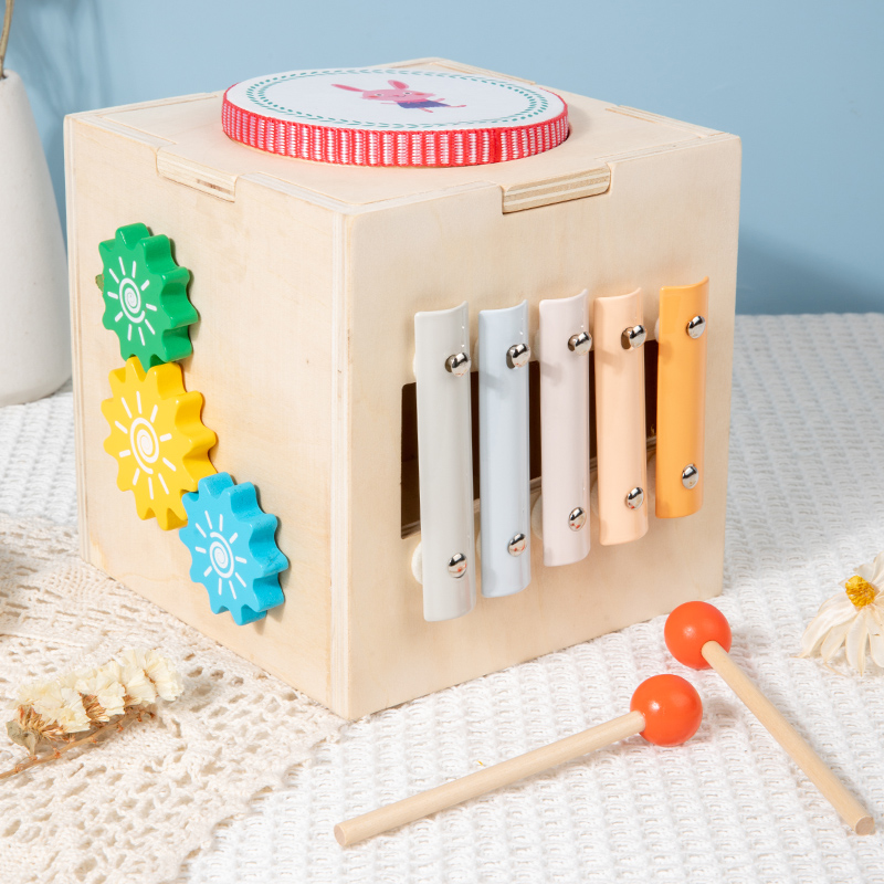 Early Educational Montessori Five-in-One Kids Wood Set Multi-Function Music Box Drumming Building Blocks Training Toys