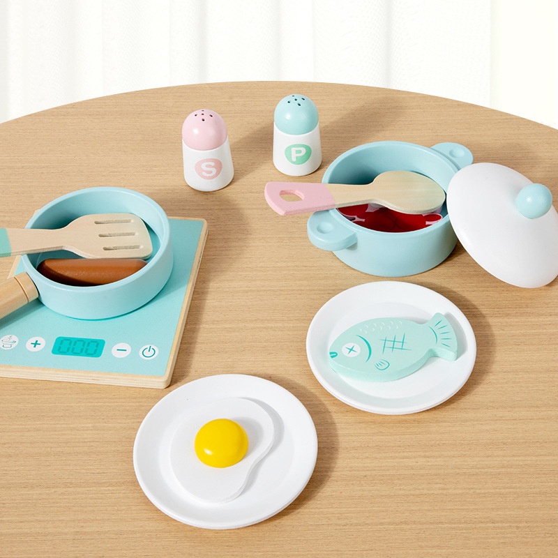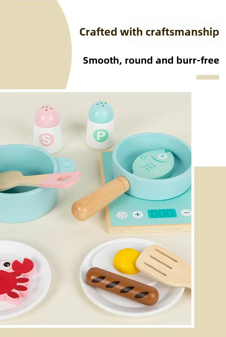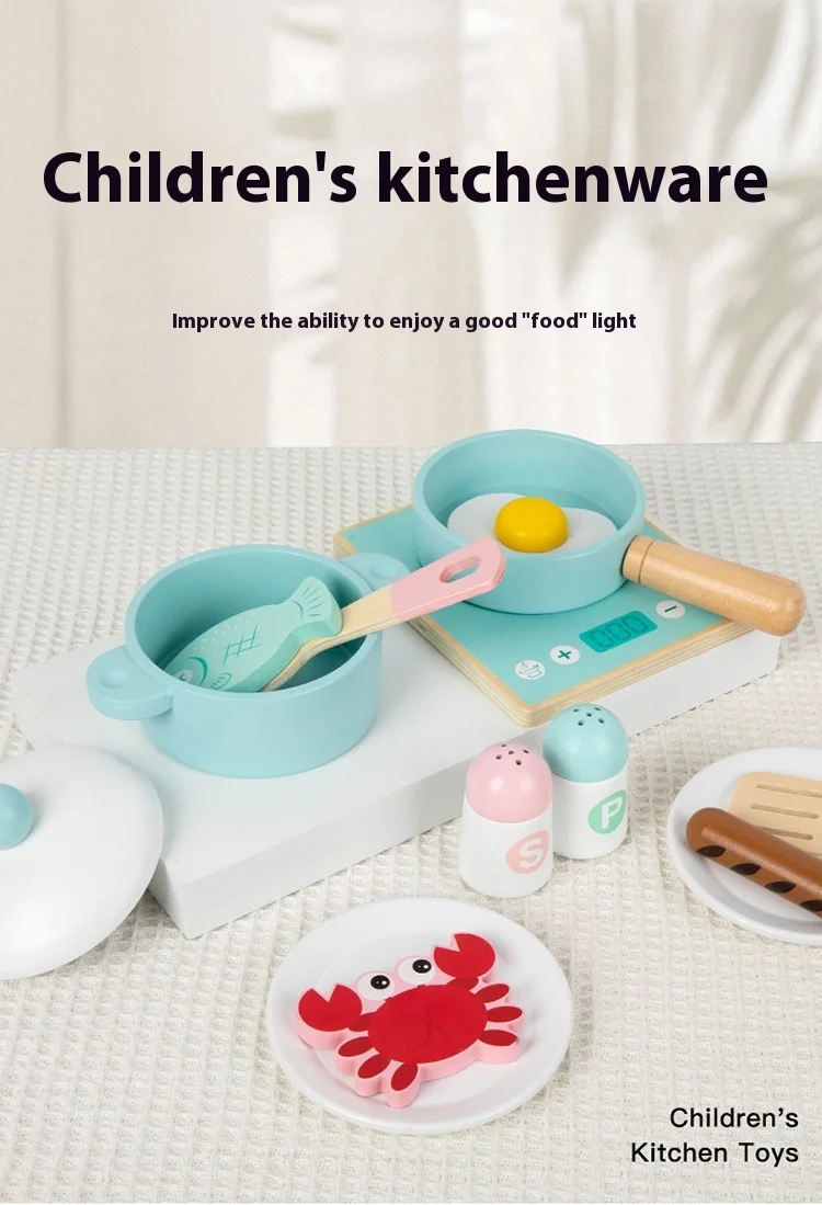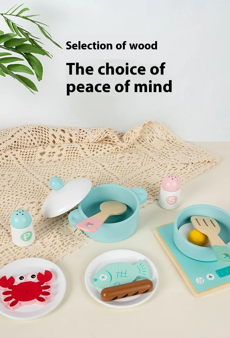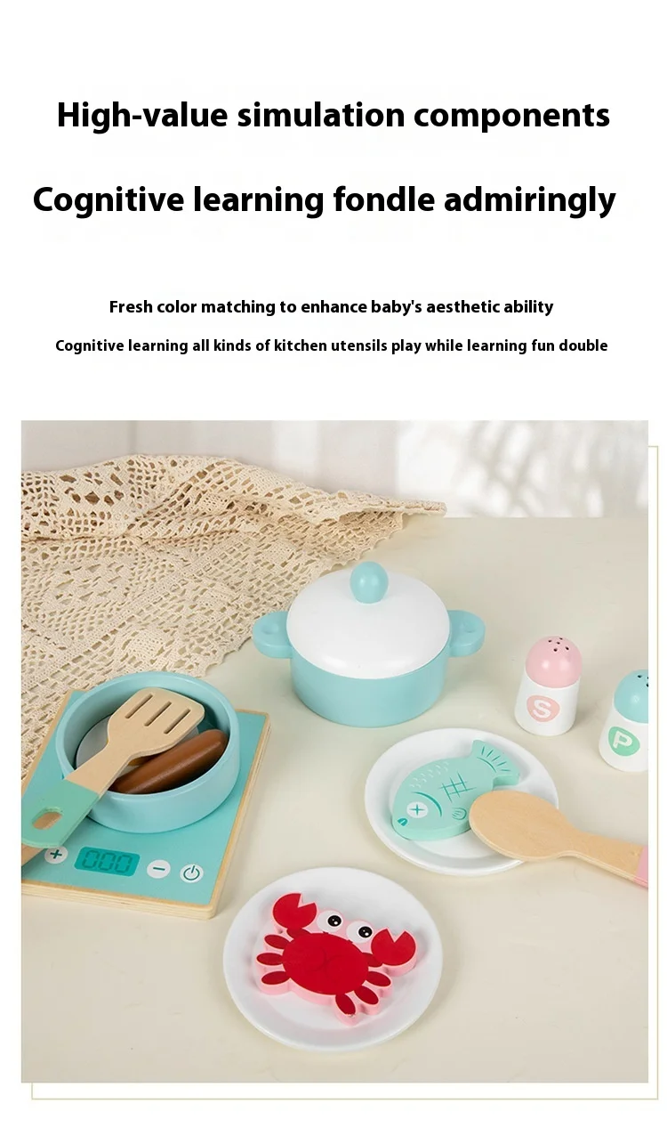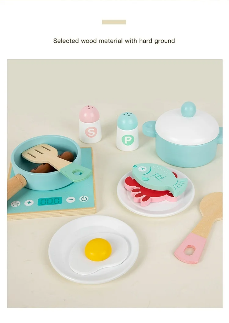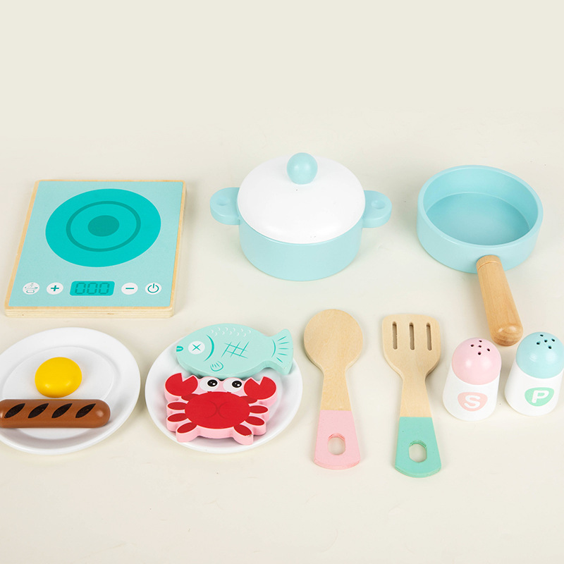 Early Educational Play House Toys for Children Unisex Blue Wooden Kitchenware Pot Set Fun Kitchen Toys