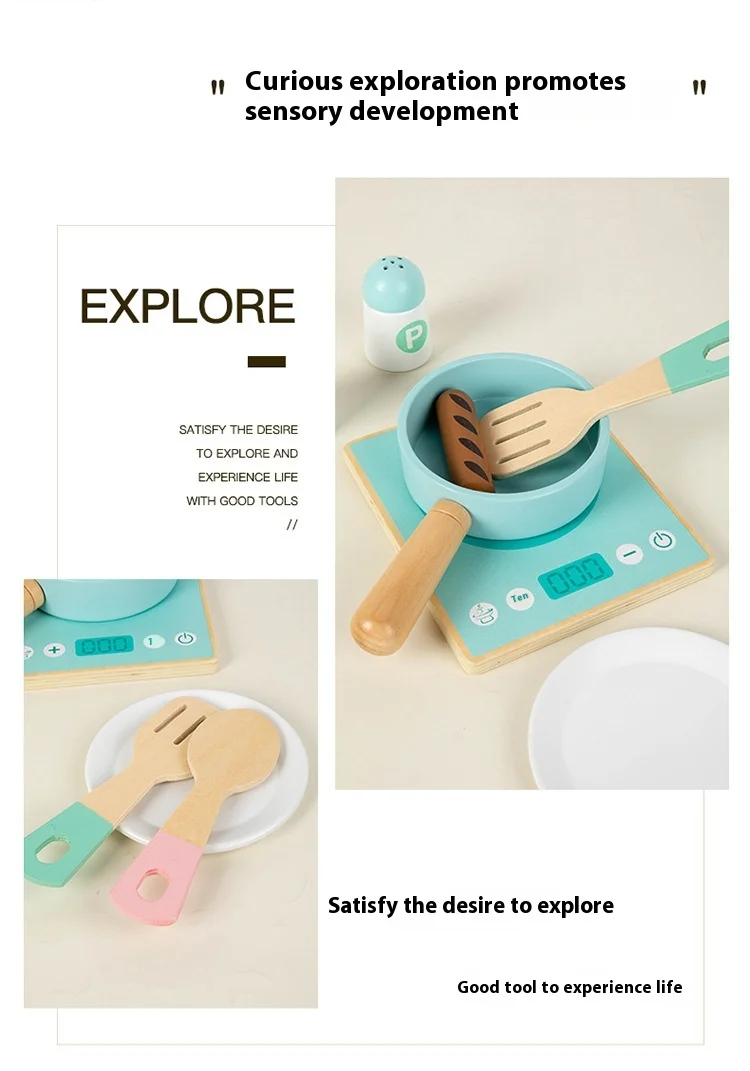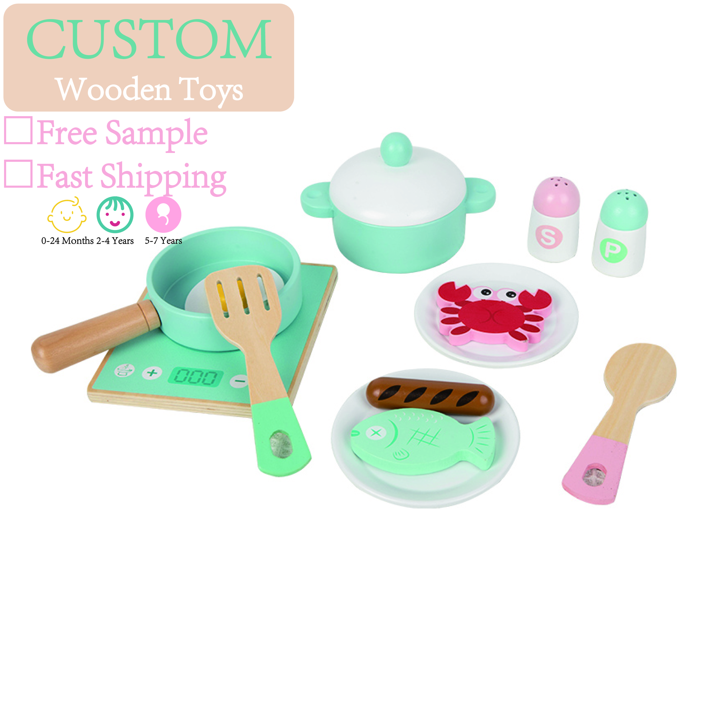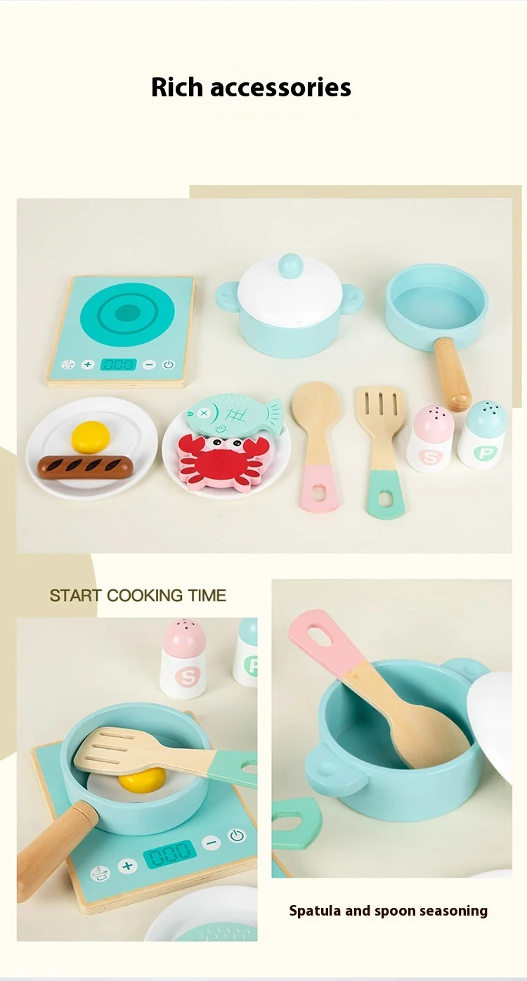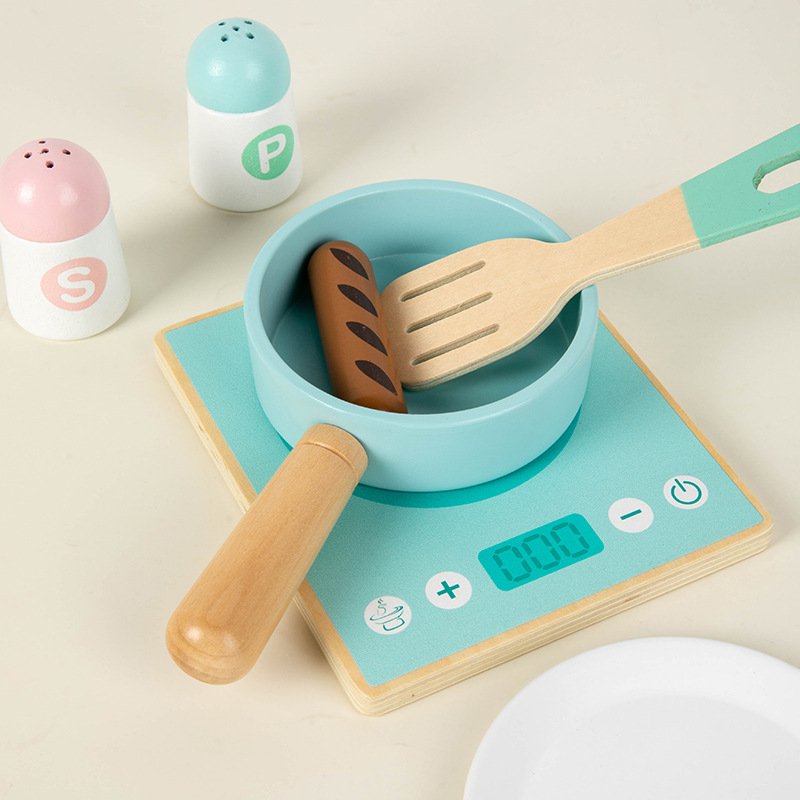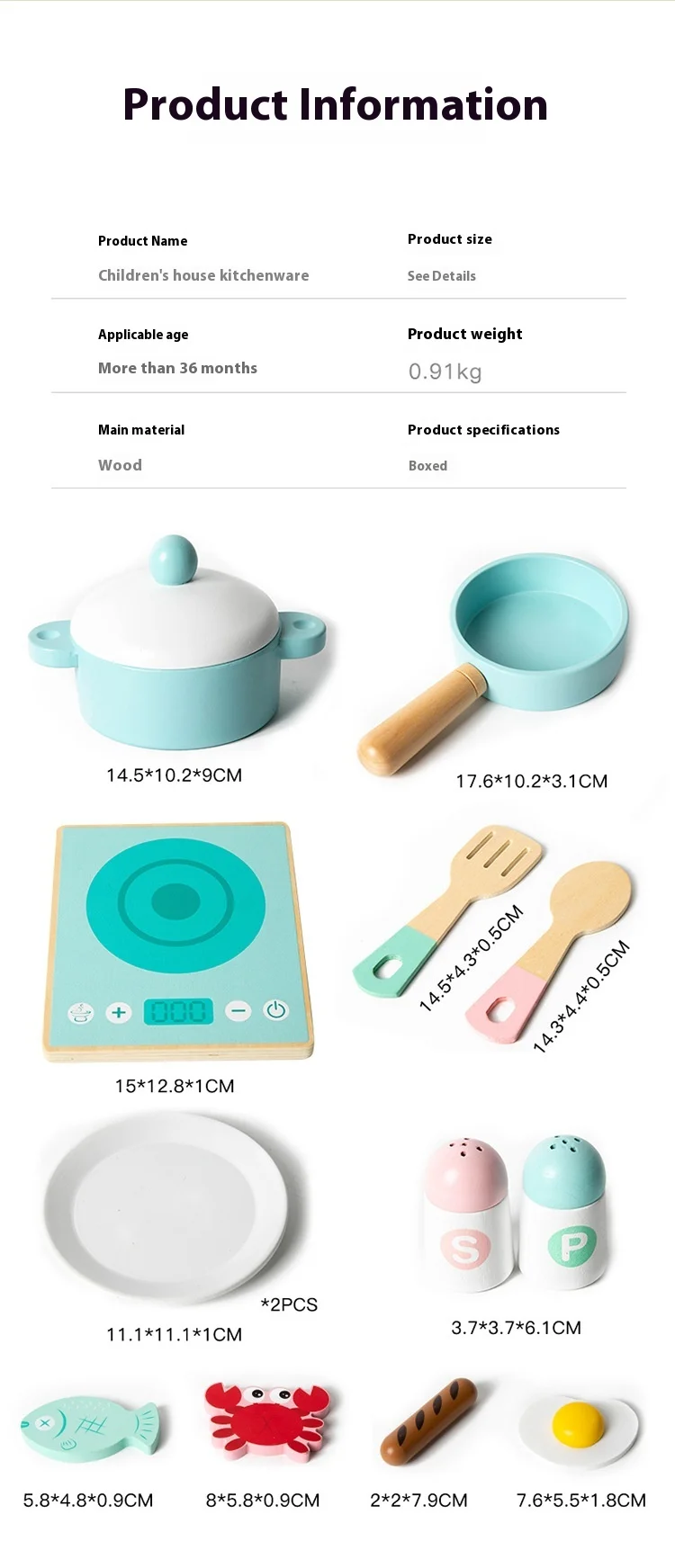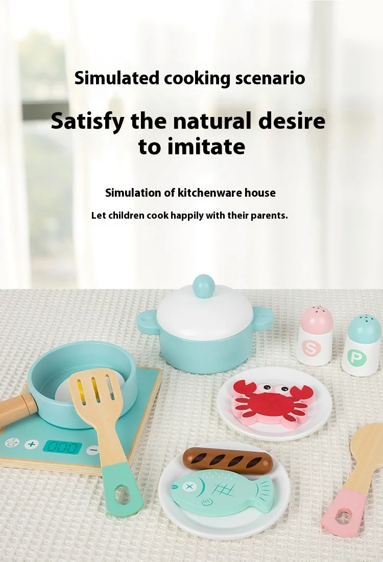 Early Educational Play House Toys for Children Unisex Blue Wooden Kitchenware Pot Set Fun Kitchen Toys
