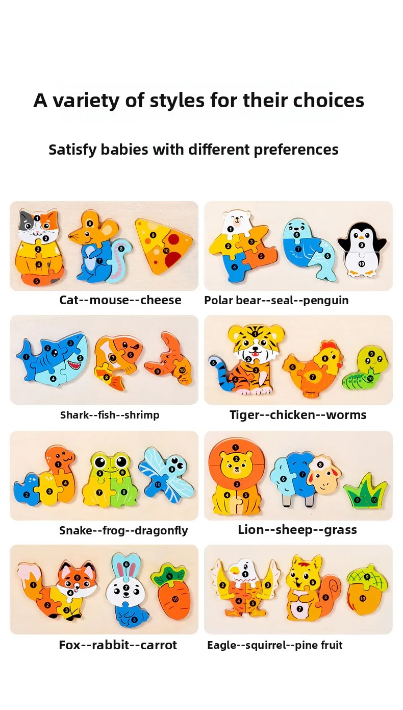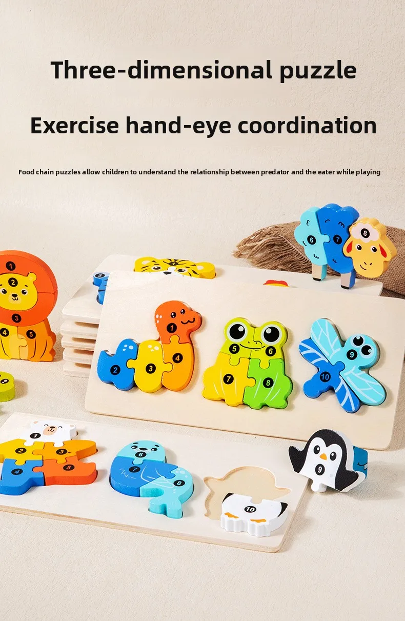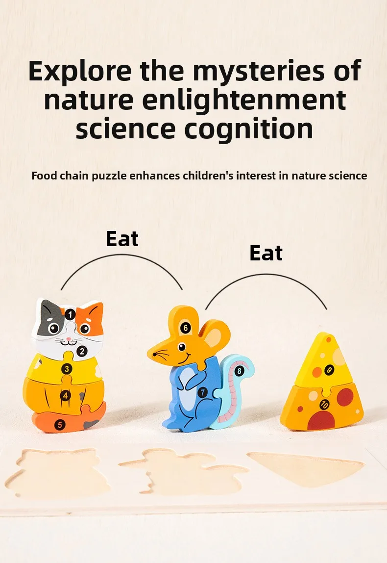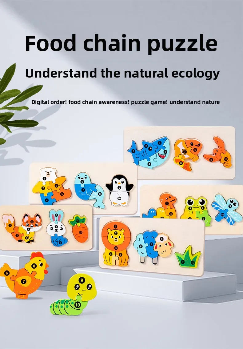 Early Educational Wood Animal Building Blocks Puzzle Baby Toy DIY Food Chain Animal Color Matching Toys for Kids