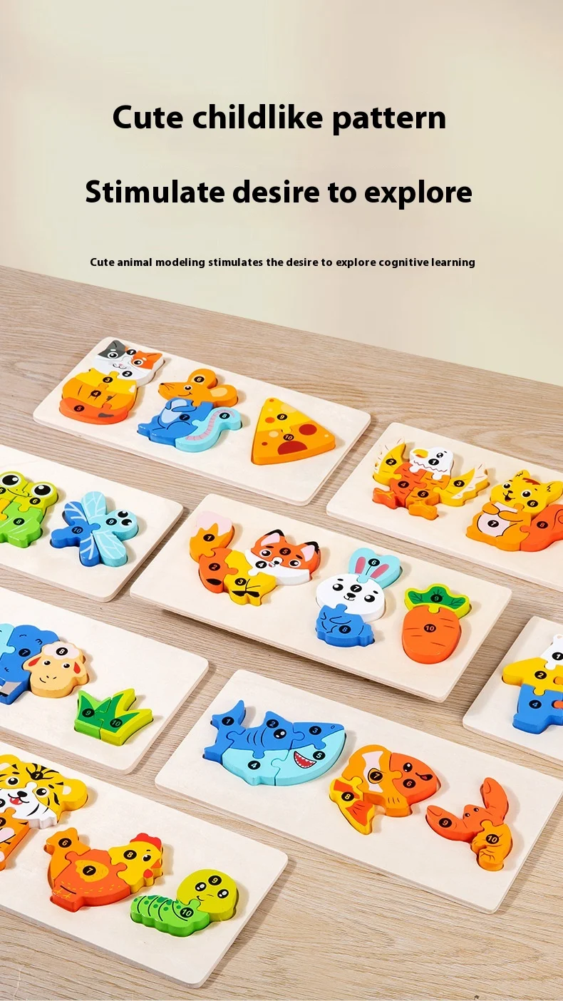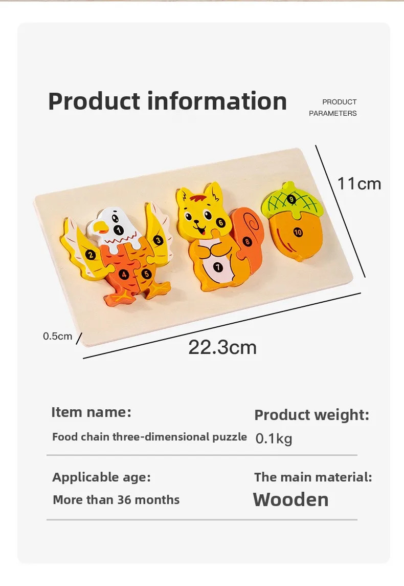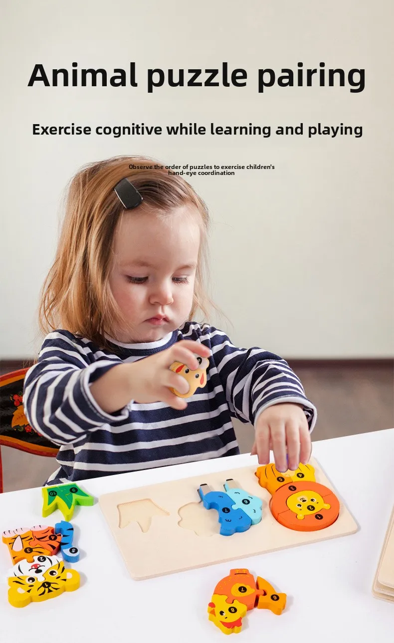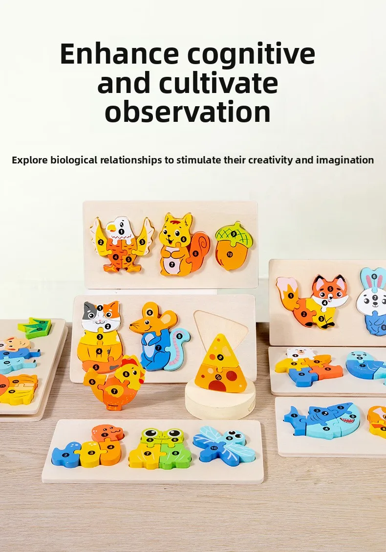 Early Educational Wood Animal Building Blocks Puzzle Baby Toy DIY Food Chain Animal Color Matching Toys for Kids