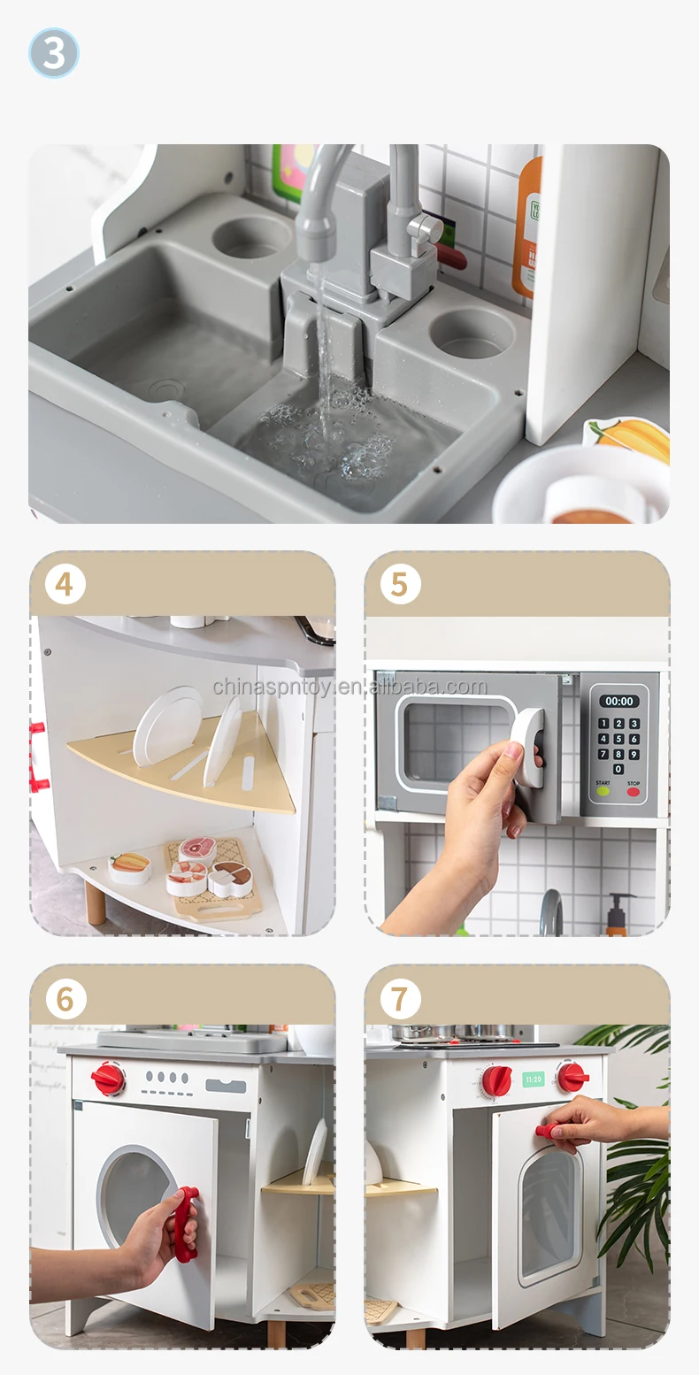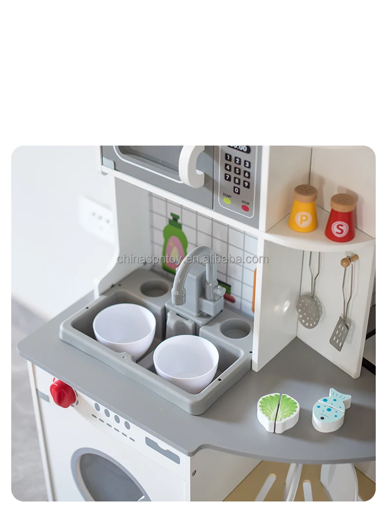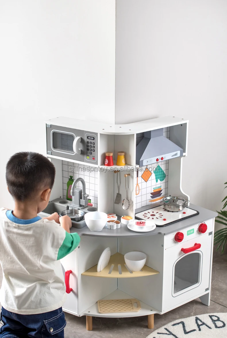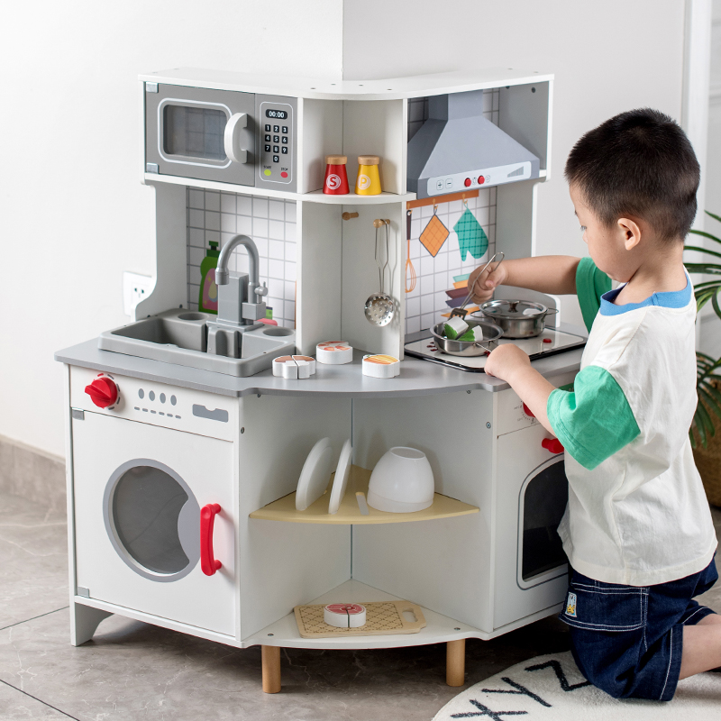 Early Educational Wooden Children Montessori Juguetes Para Los Ninos Play Grey Corner Kitchen Set Games Toys for Kids Boys Glrls