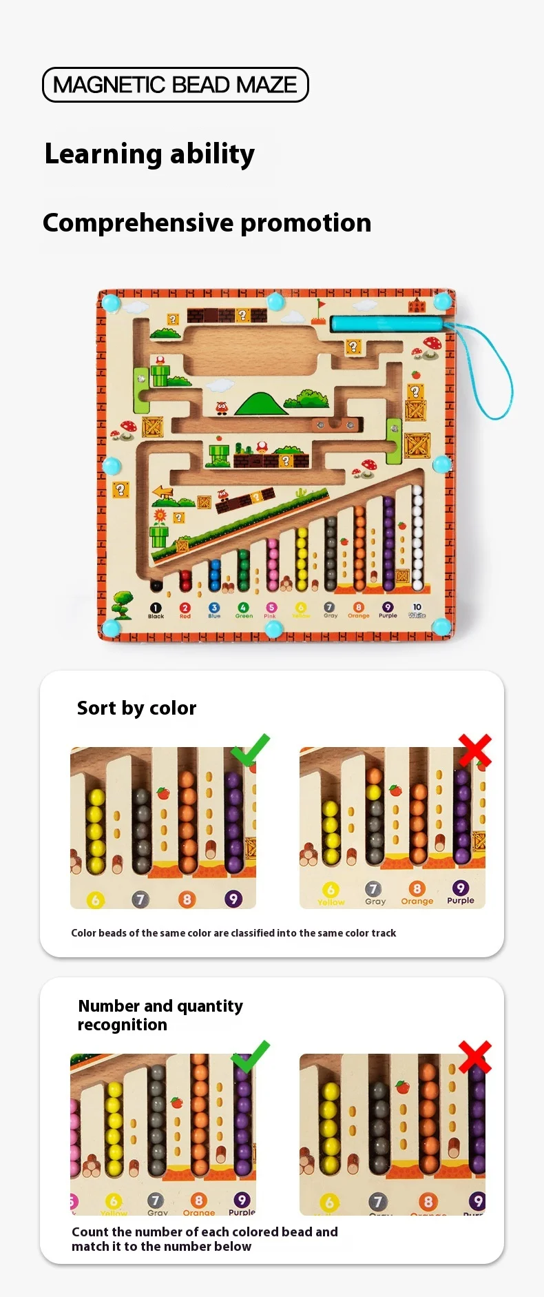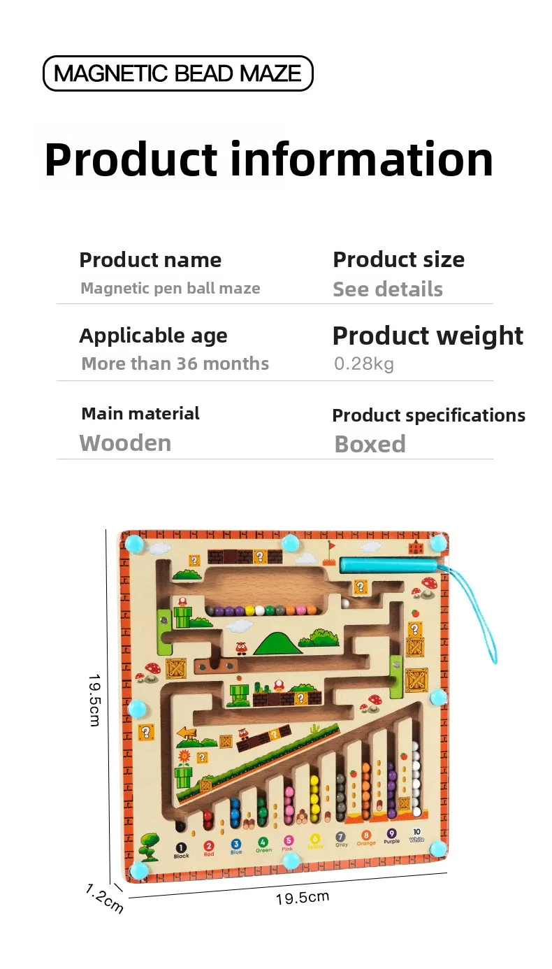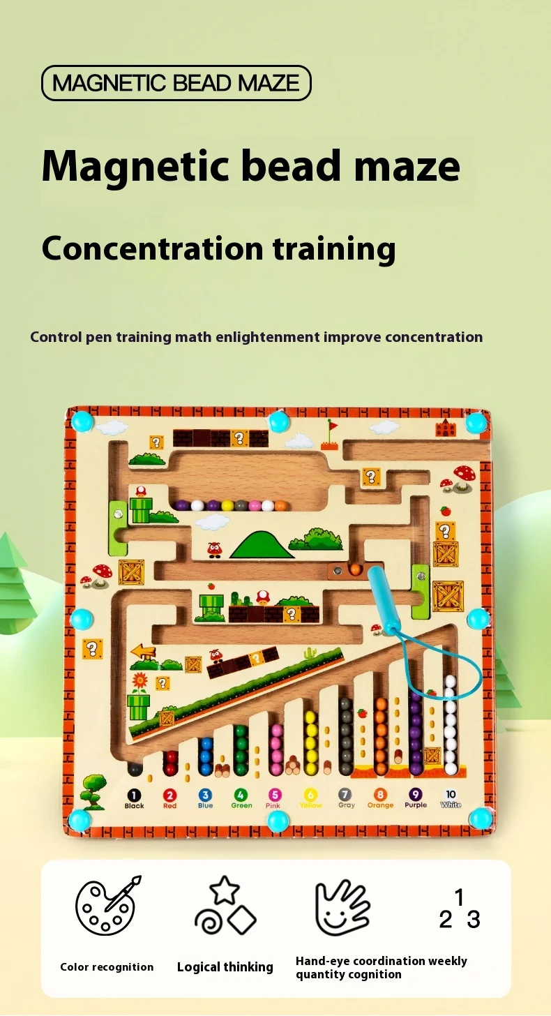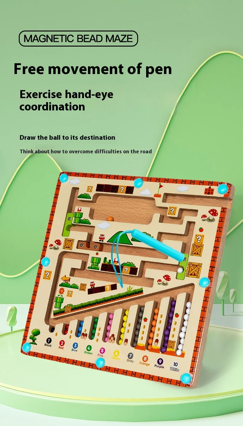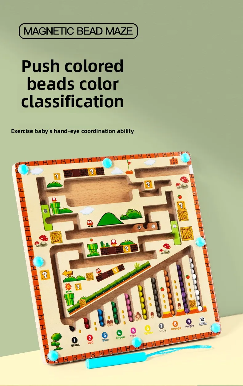 Early Educational Wooden Cognitive Unisex Bead Sorting Maze Toy for Children’s Number Logic Thinking Toy