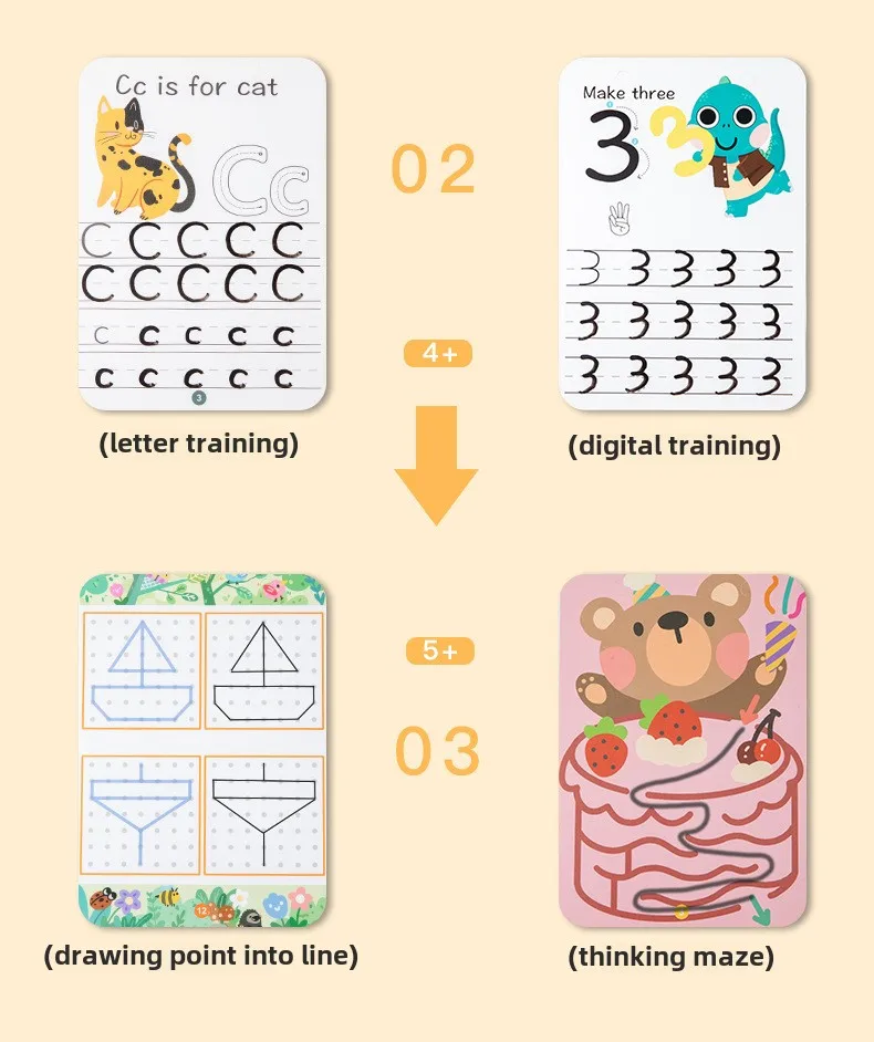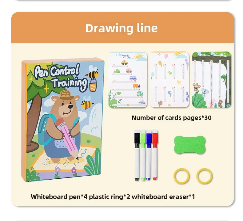 Early Educational Workbook Reusable Handwriting Practice Copybooks Wood Pen Control Tracing Children’s Learning