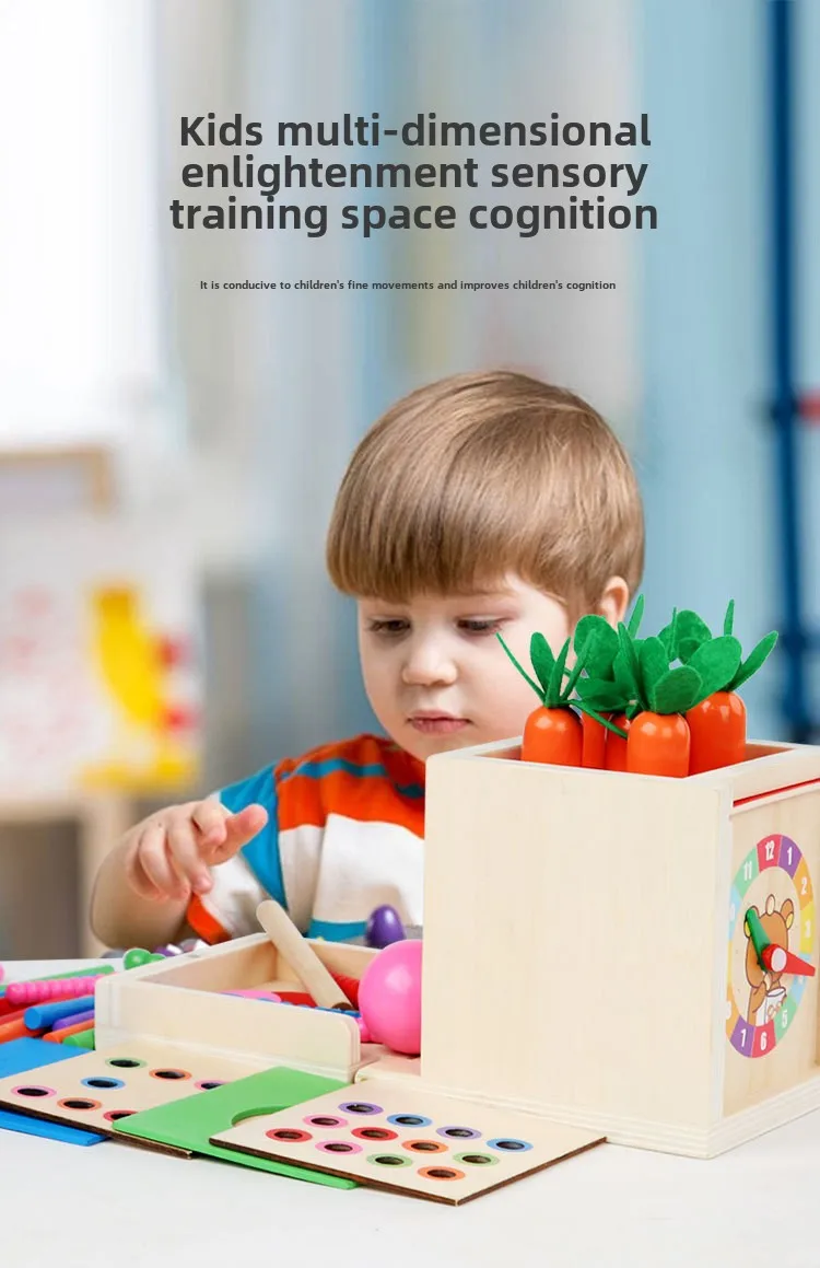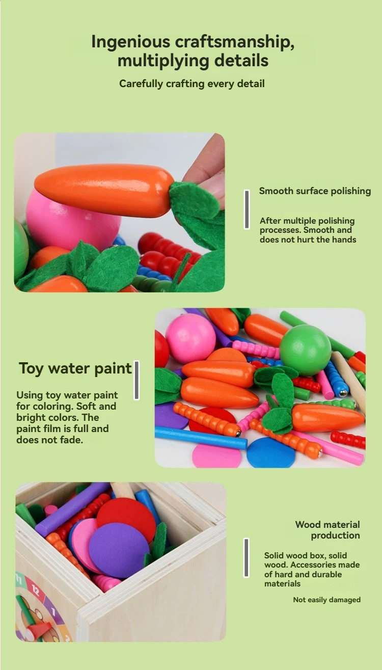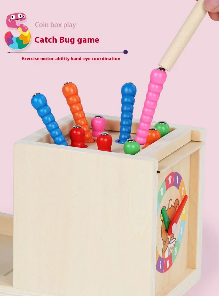 Early Learning Intelligence Box Multifunctional Montessori Pulling Carrot Catching Bugs Color Matching Children’s Wooden Toys
