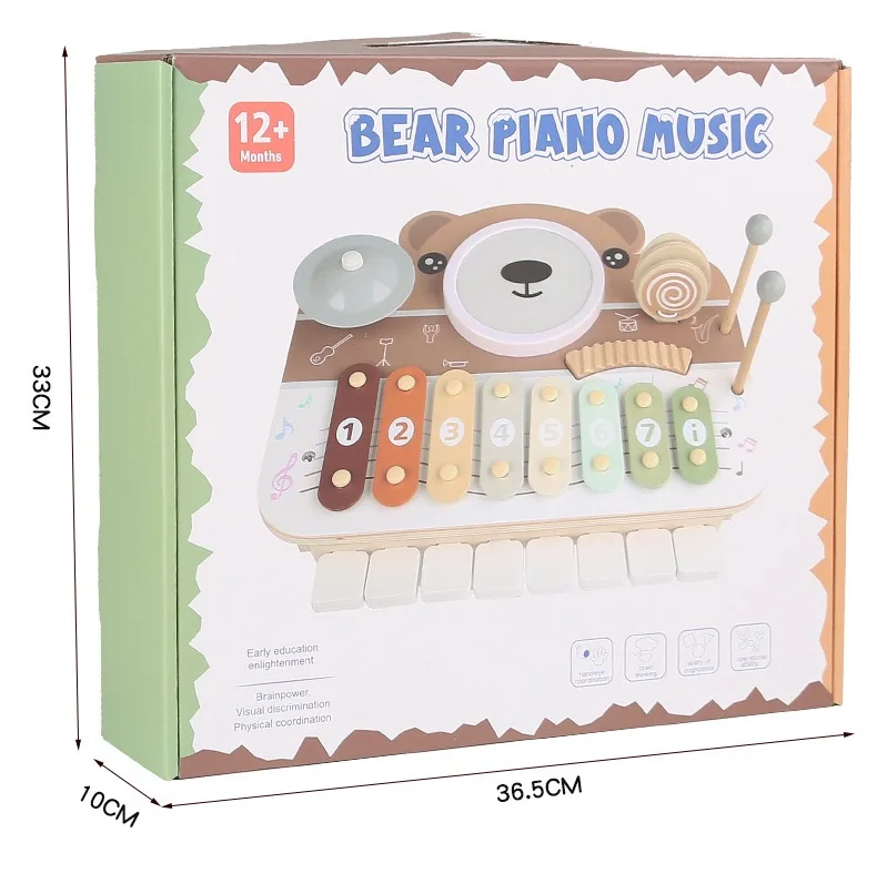 Educational Early Education Children’s Wood Percussion Drum Set Orff Bear Instrument Music Board Toy