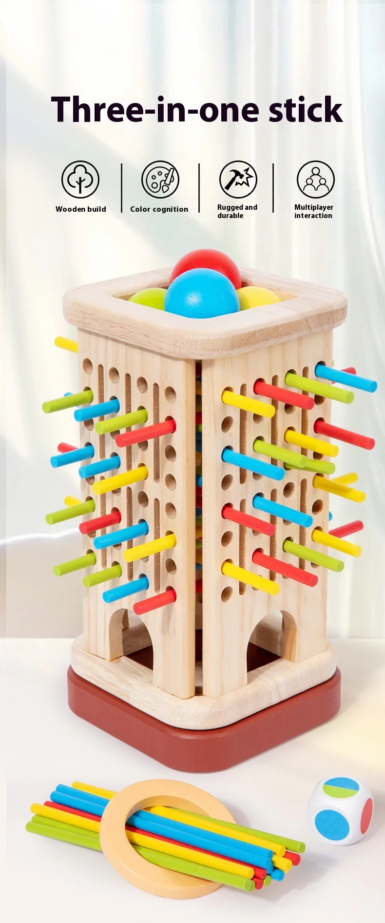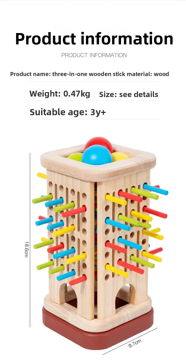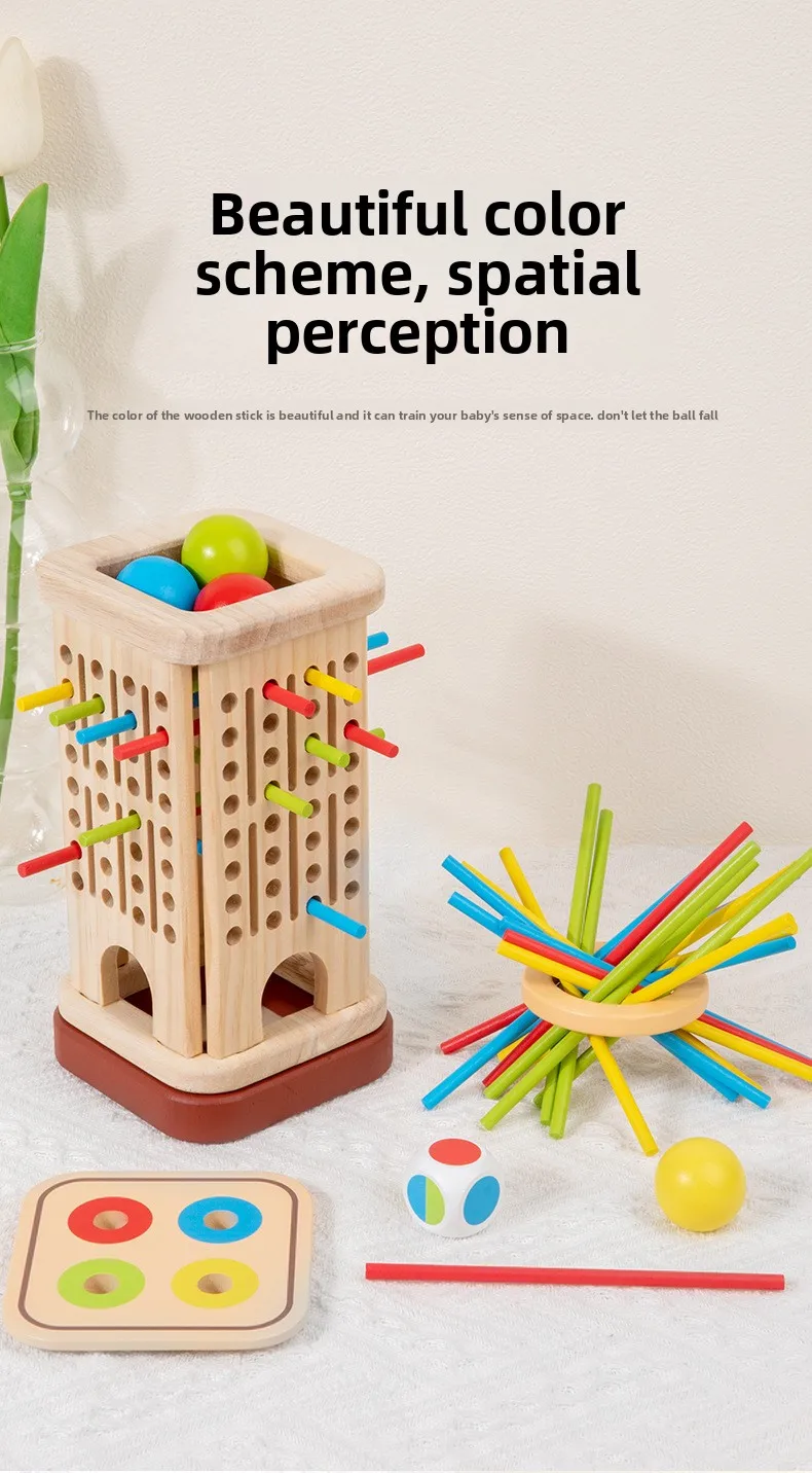 Educational Small 3-in-1 Wooden Stick Toy for Parent-Child Interaction Space Brain Thinking Games for Children
