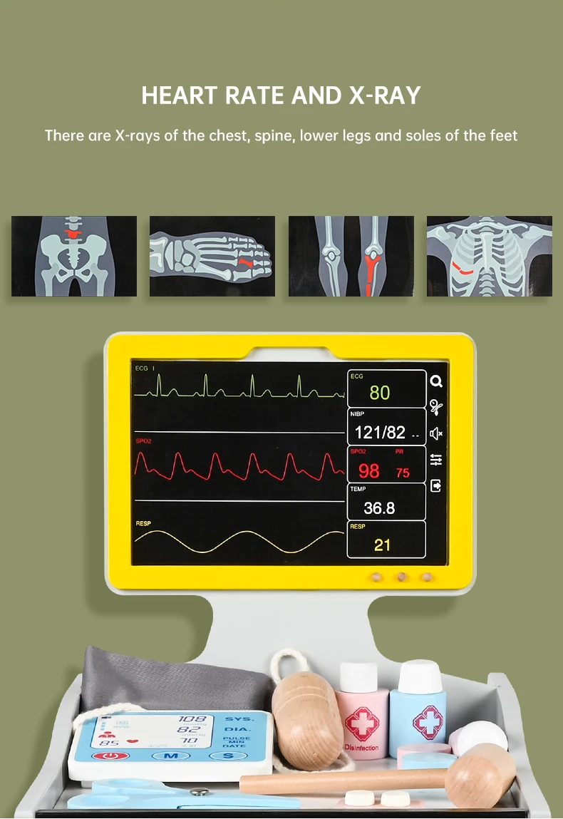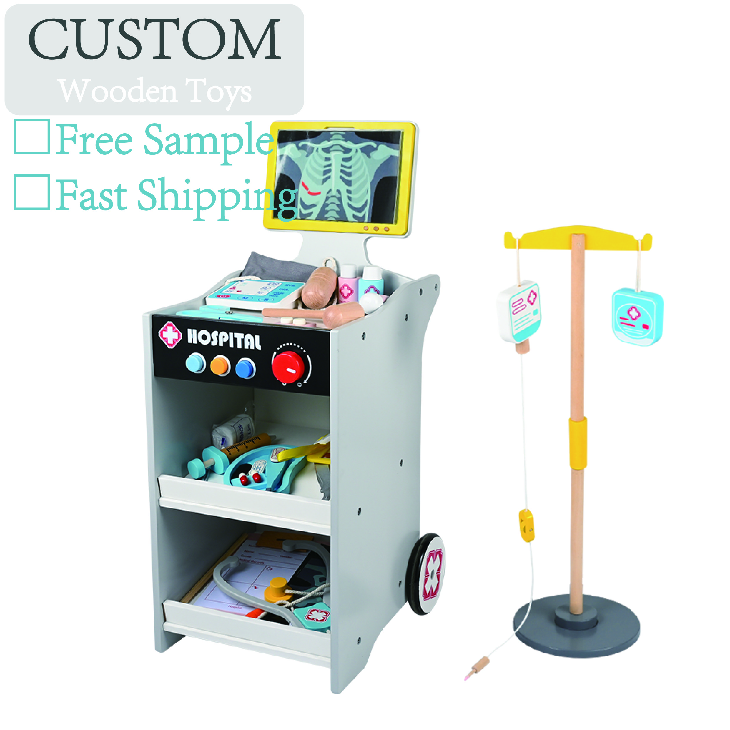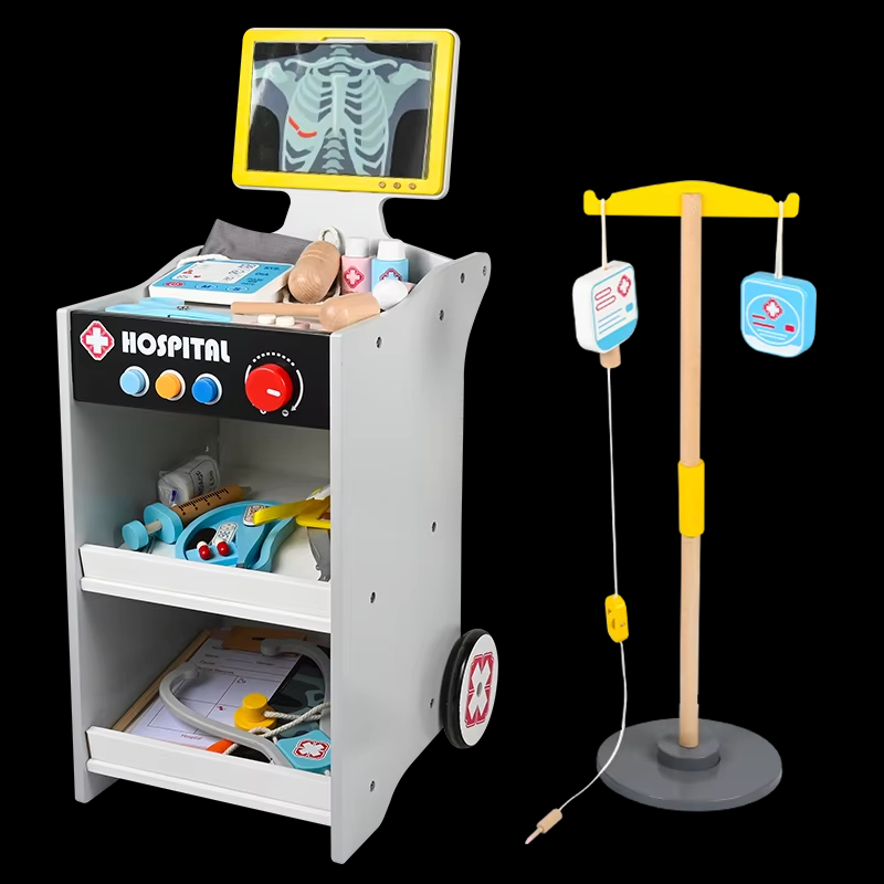 Factory Manufacture Doctor Medical Trolly Toy Kids Educational Use Wooden Pretend Play Doctor Cart