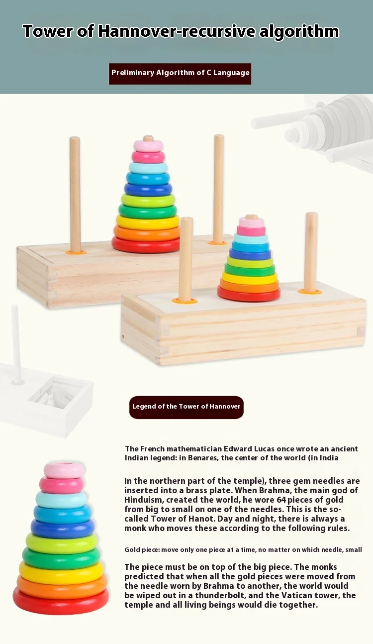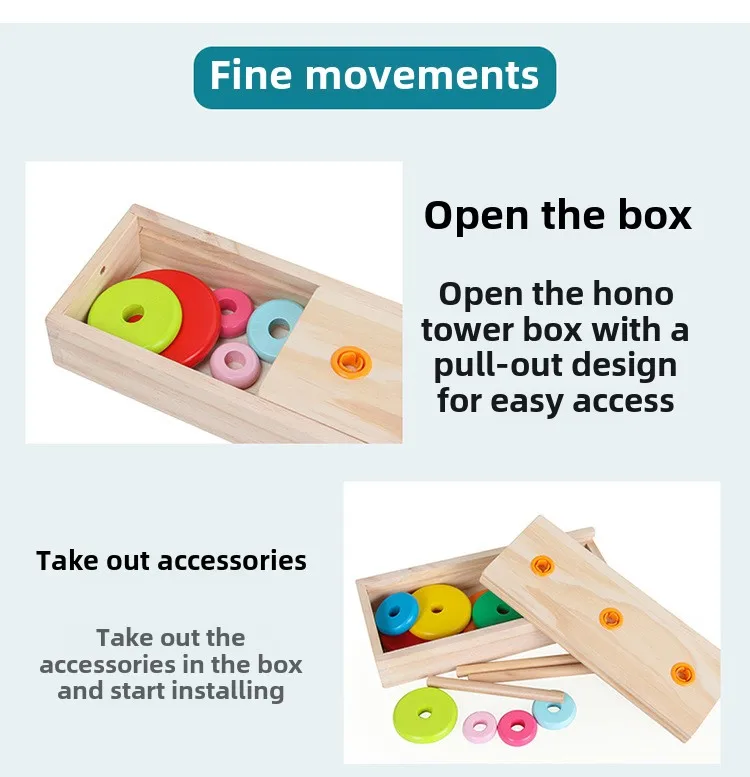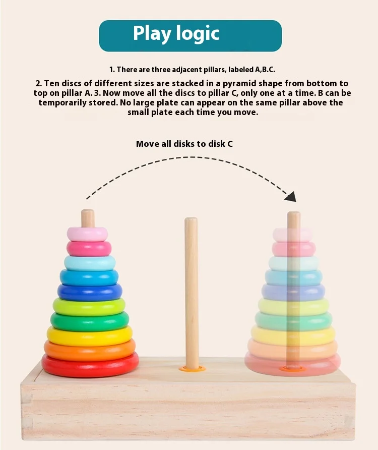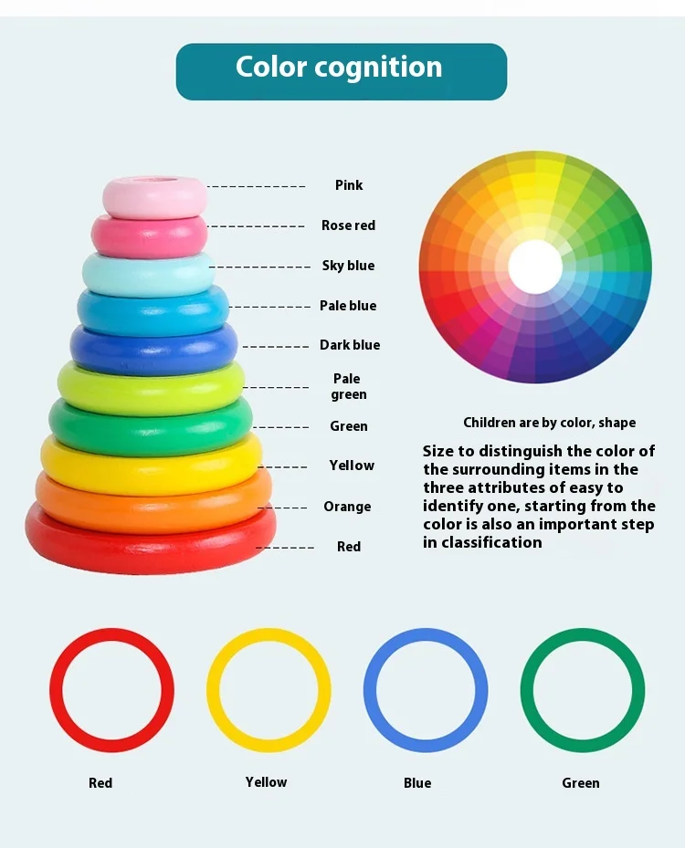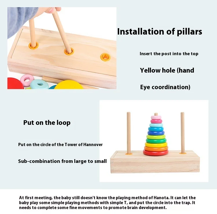 Free Sample Wooden Rainbow Tower Hanoi Tower Rainbow Stacked Circle Building Blocks Early Childhood Primary School Learning Aids
