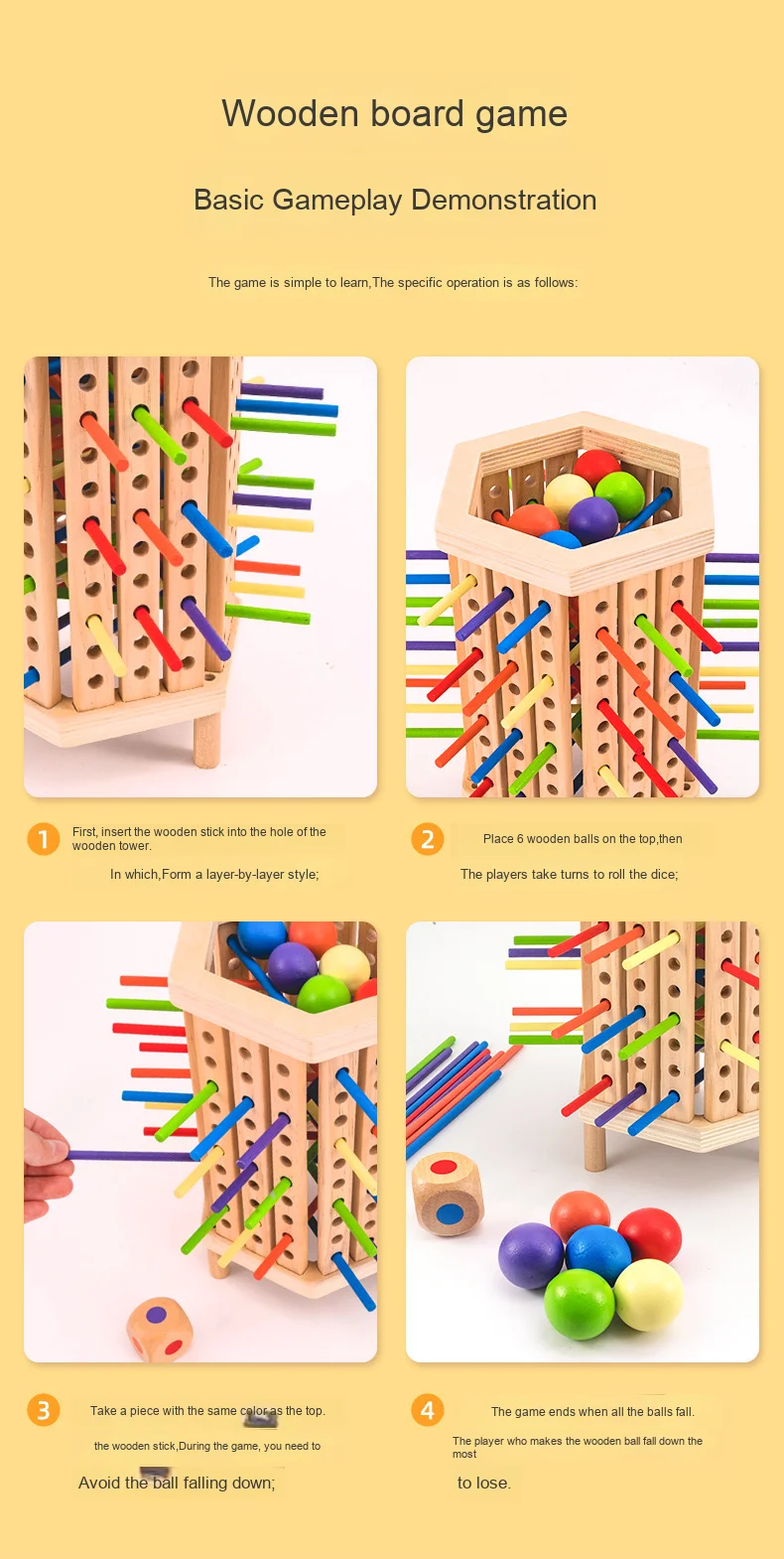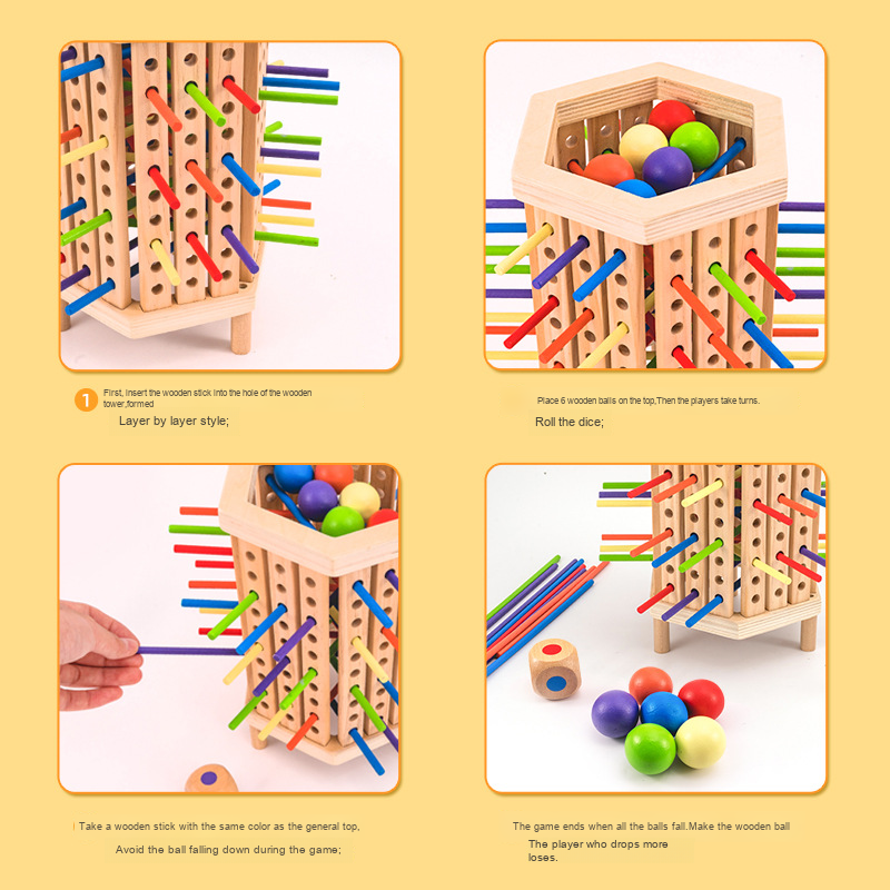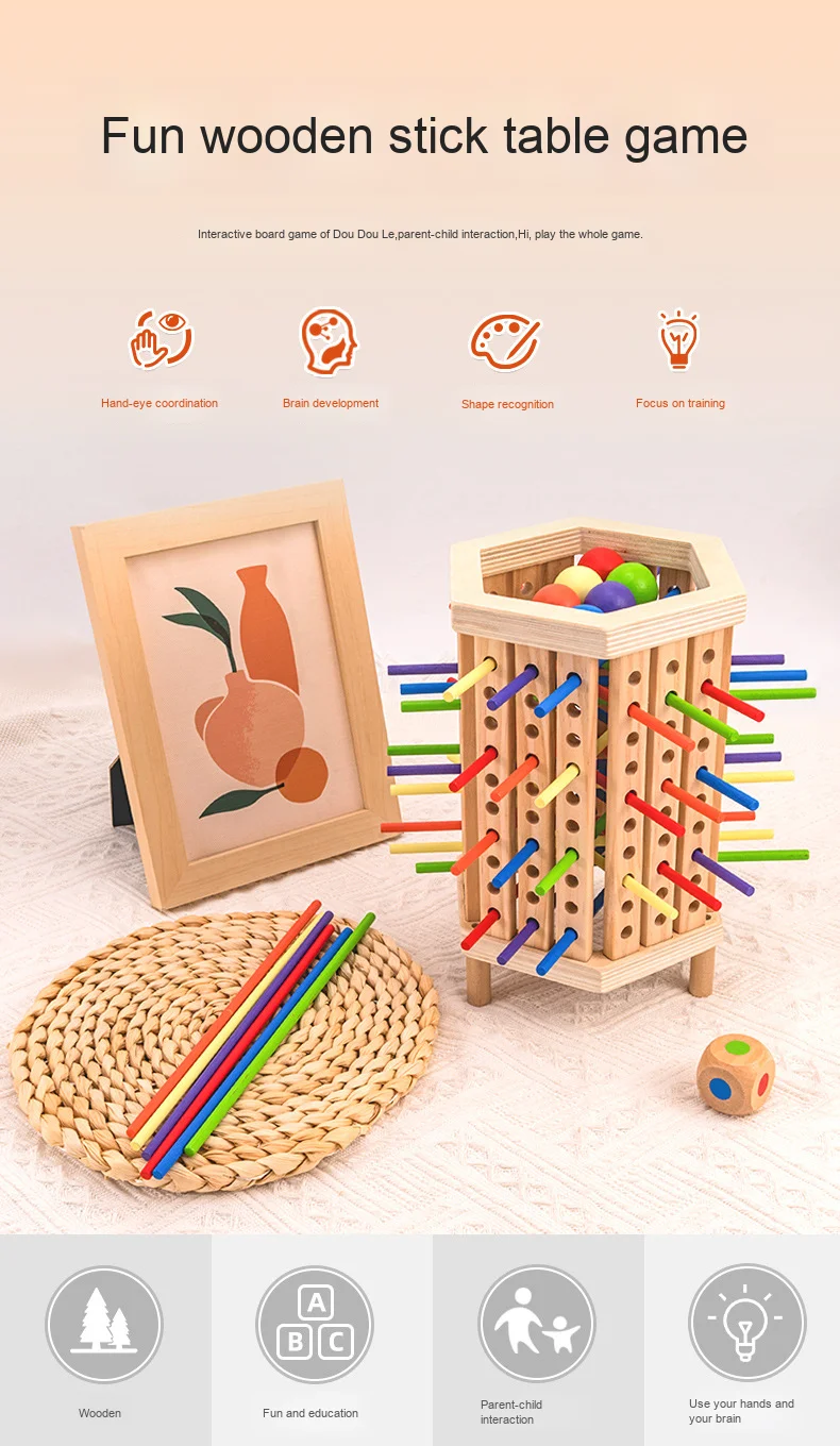 Hexagonal Wooden Stick Desktop Game for Parent-Child Interactive Space Brain Training Children’s Educational Toy