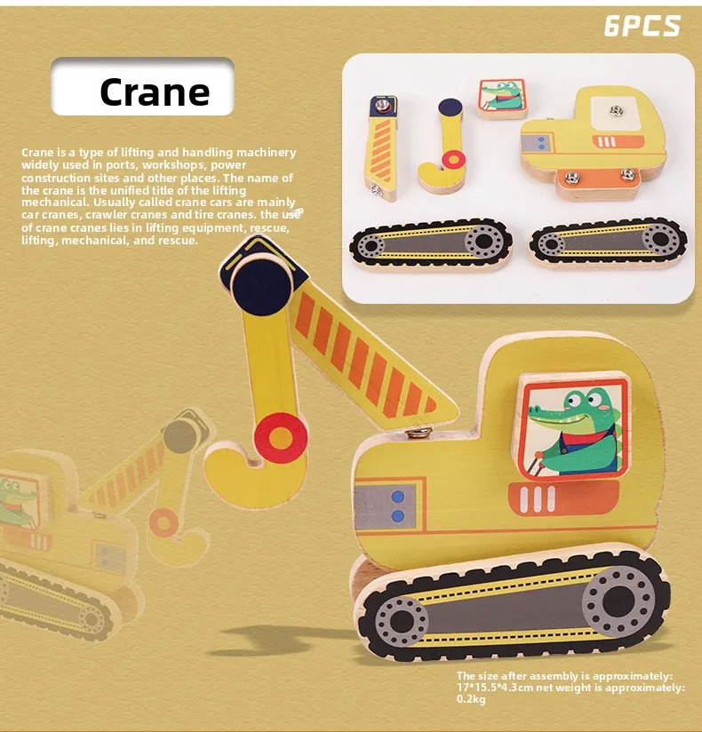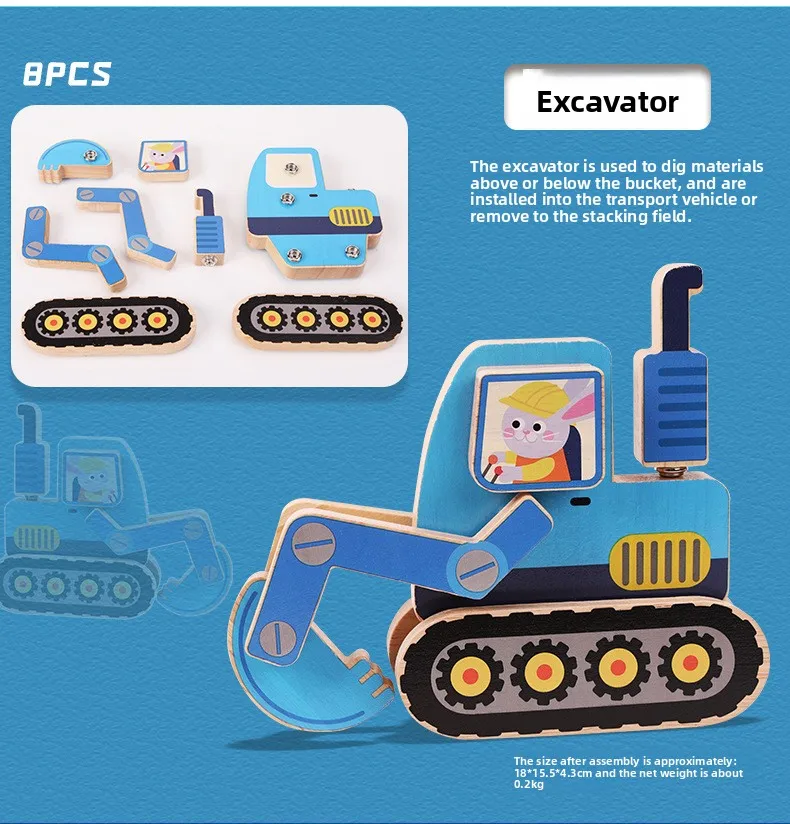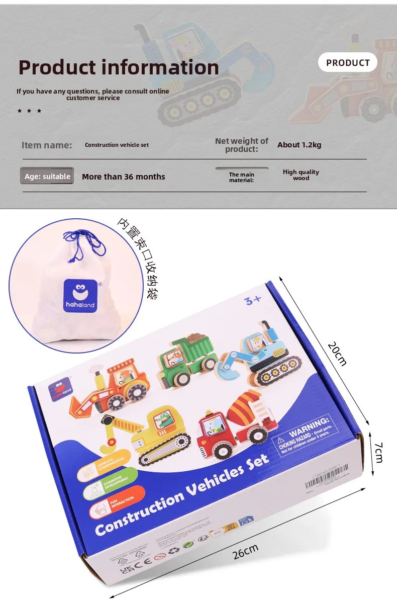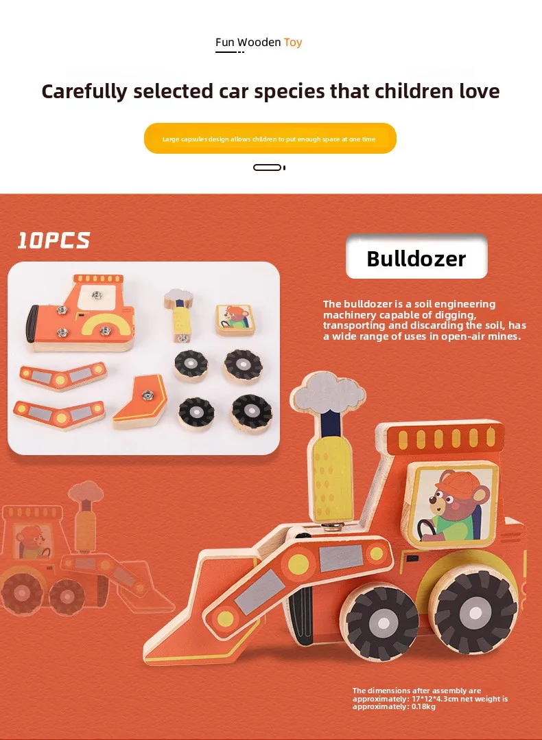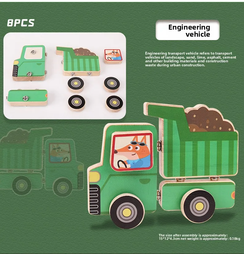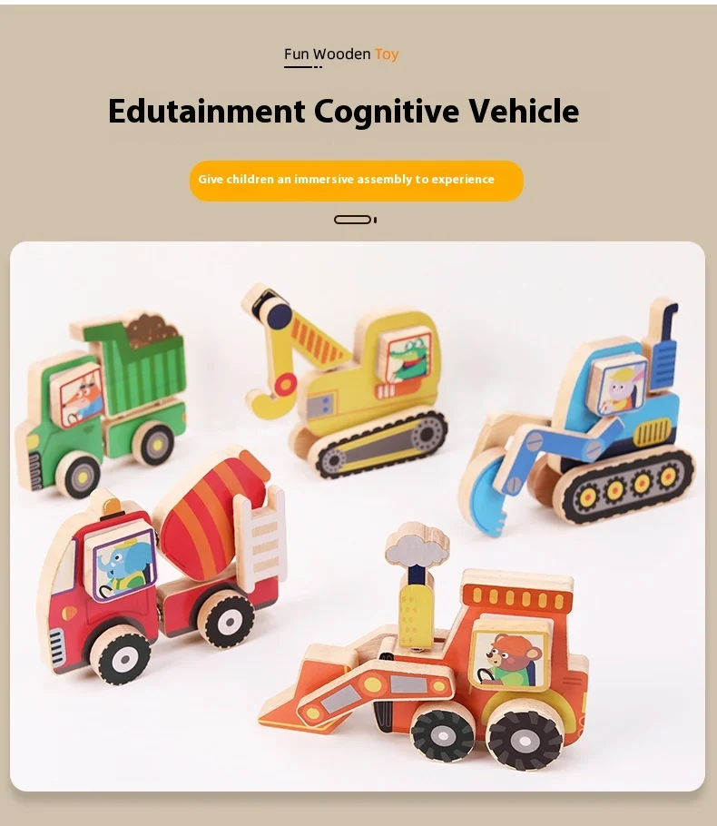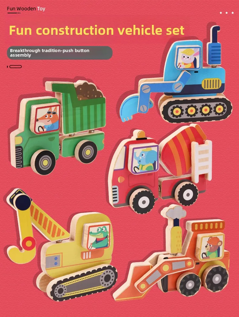 High Wooden Button DIY Construction Vehicle Set Children’s Early Educational Fun Cognitive Interactive Wooden Toy