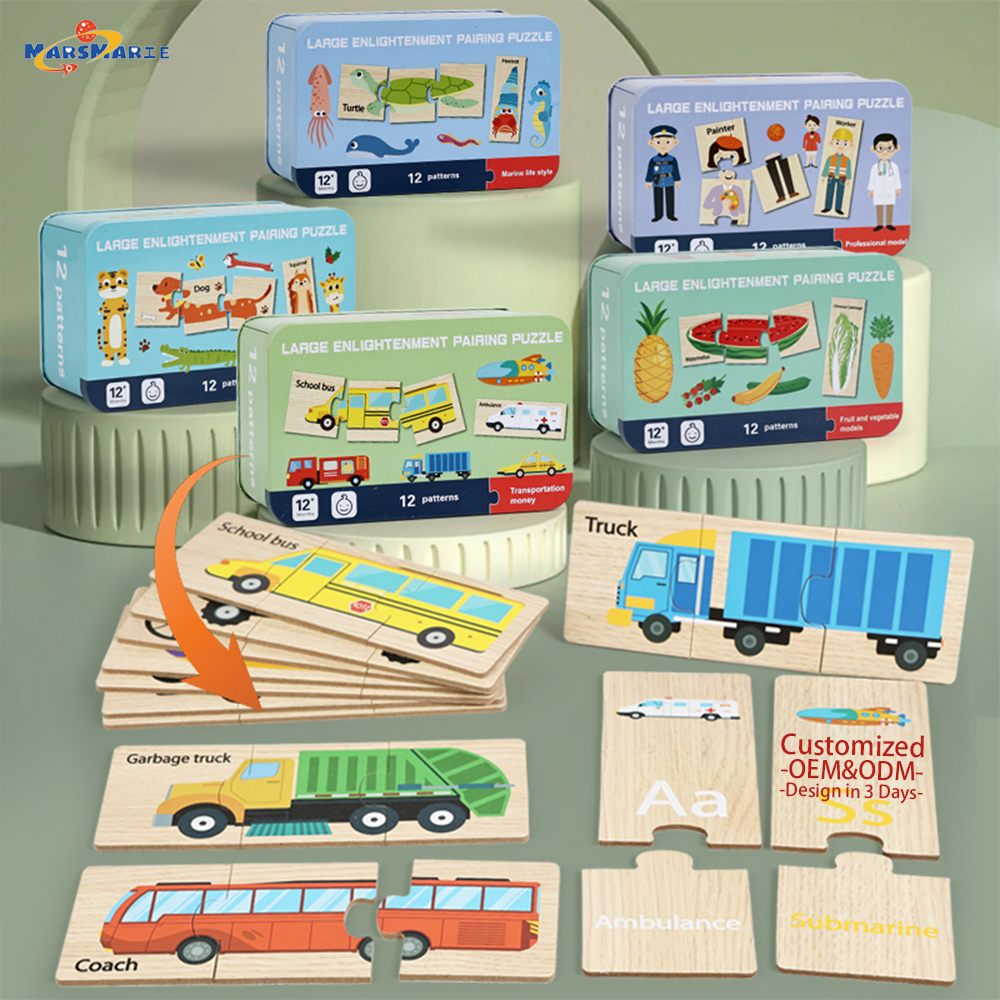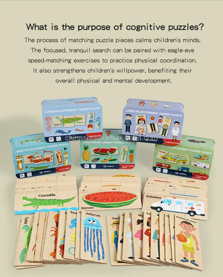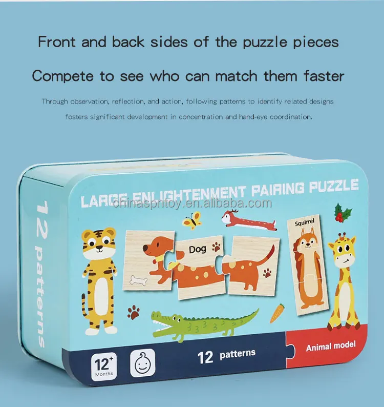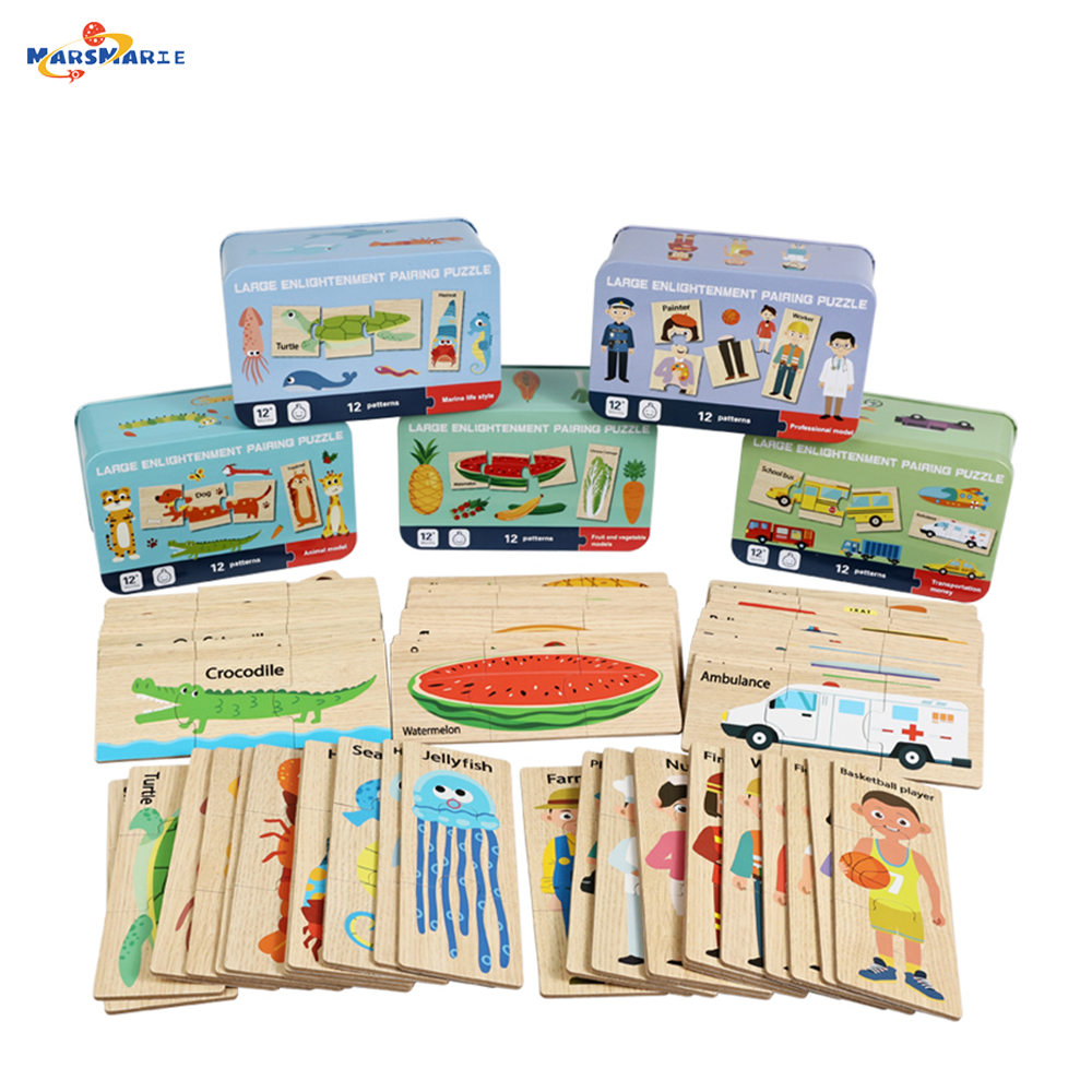 Hot Sale Children’s Wooden Animal Food Puzzle Board Enlightenment Pairing Puzzle Educational Math Toys for 2 to 4 Years Kids
