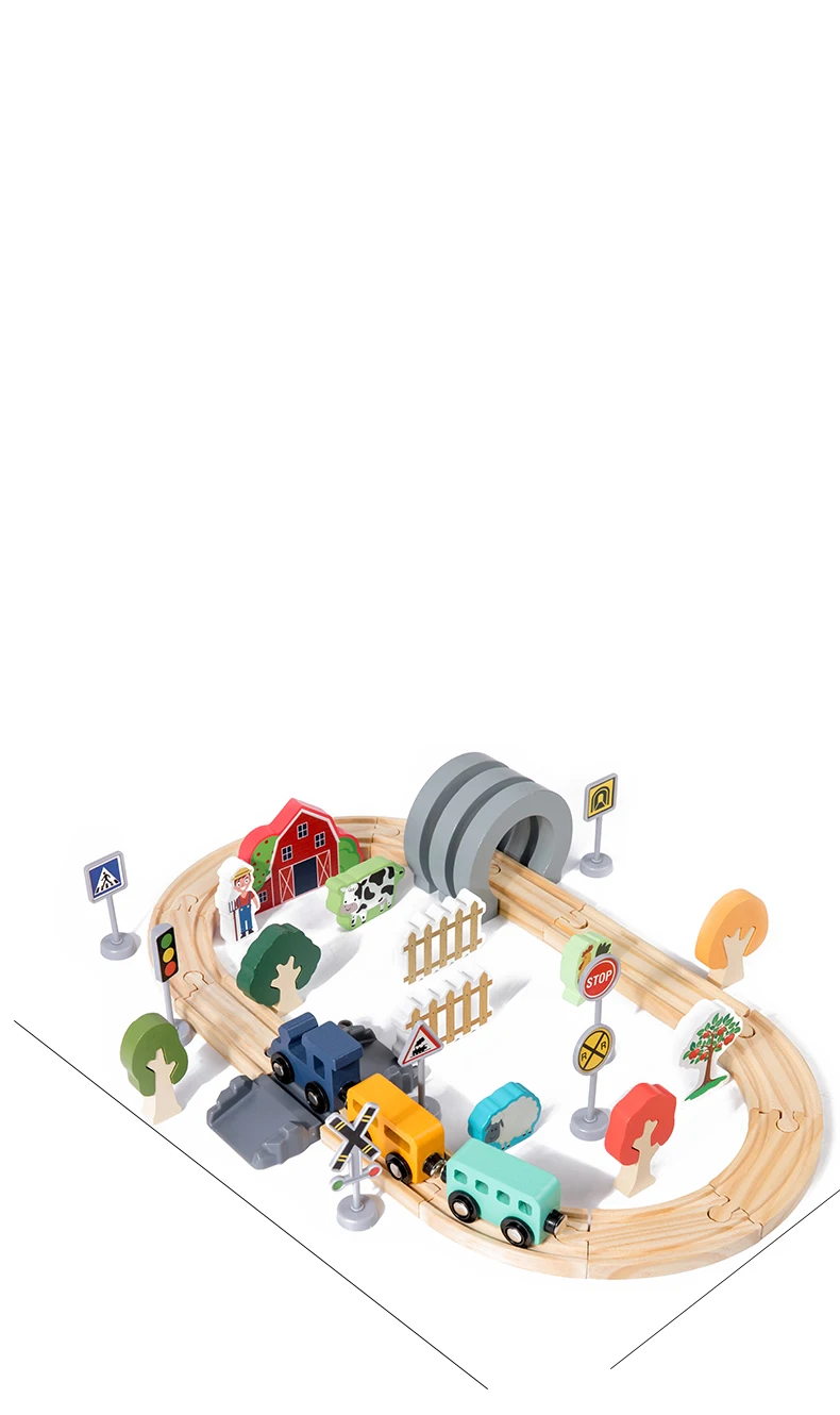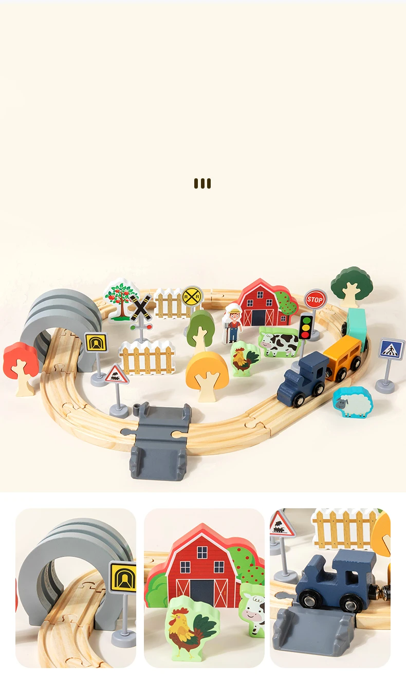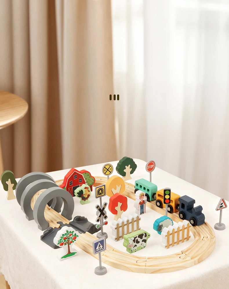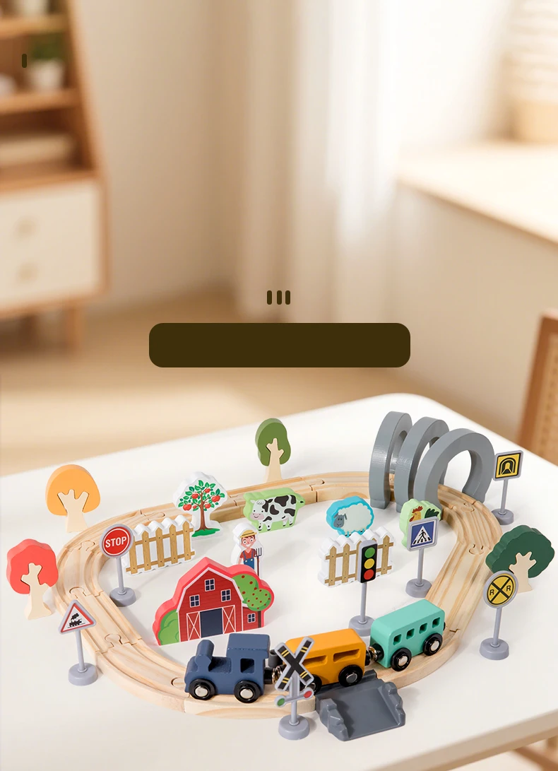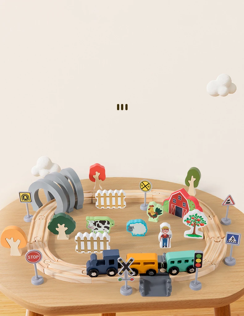 Hot Sale Children’s Wooden Track Toy Train for Farm-themed Assembly with Track for Puzzle Building and Traffic Scene Toy